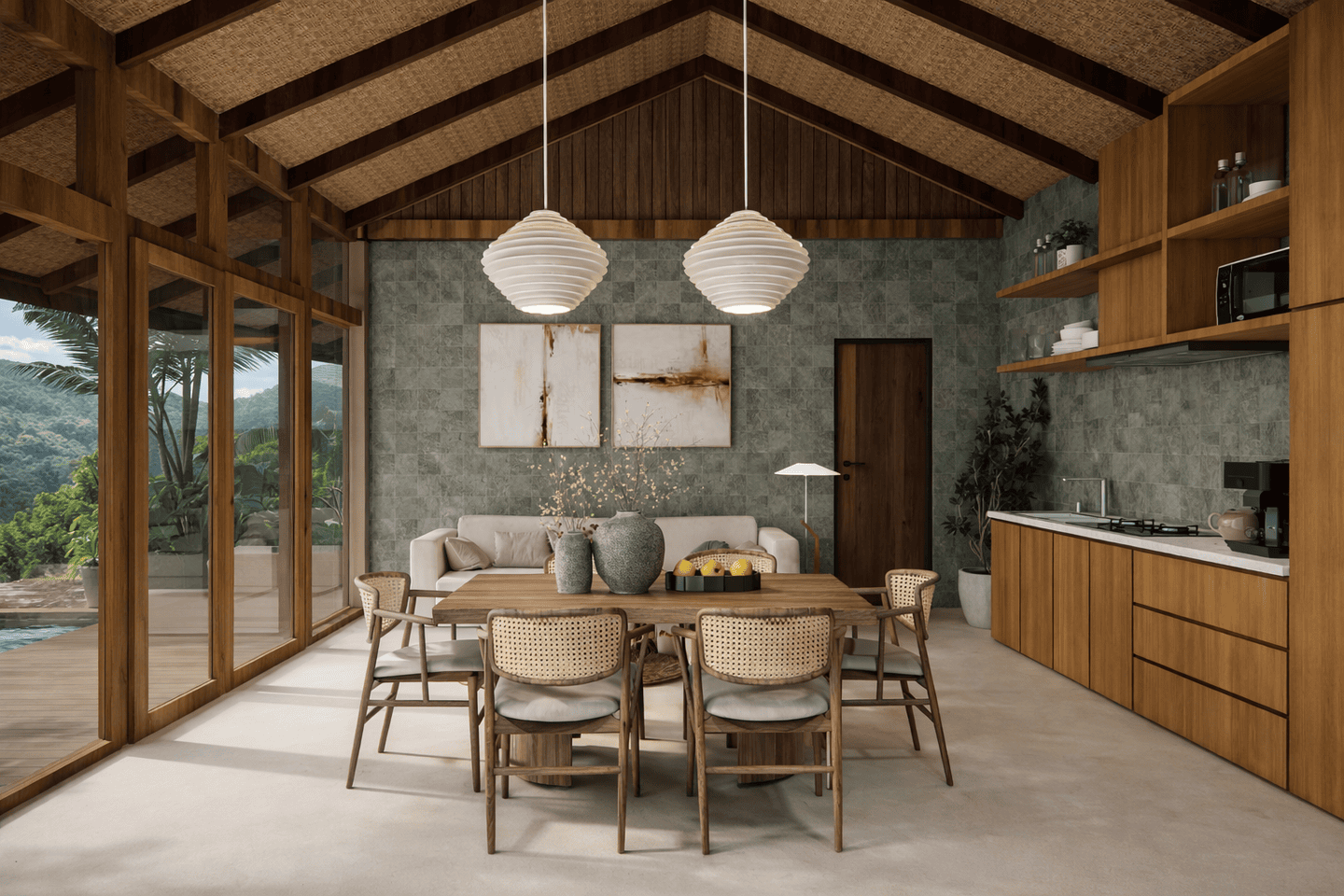 Le design tropical moderne avec des éléments naturels