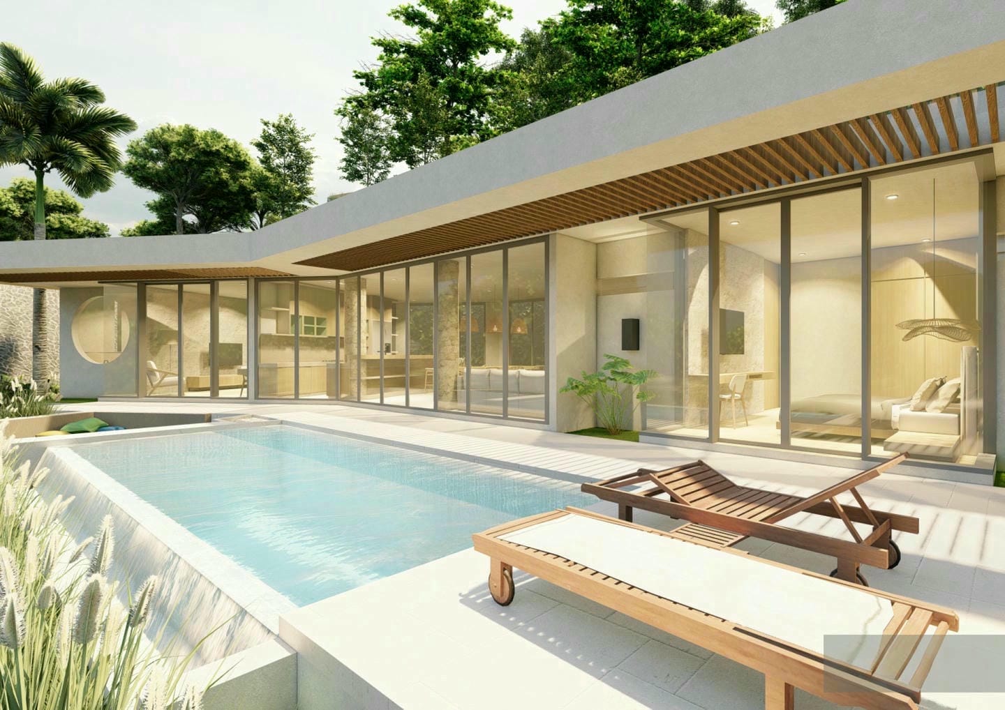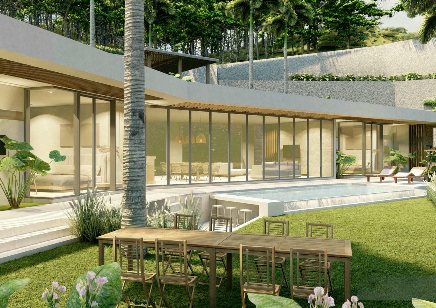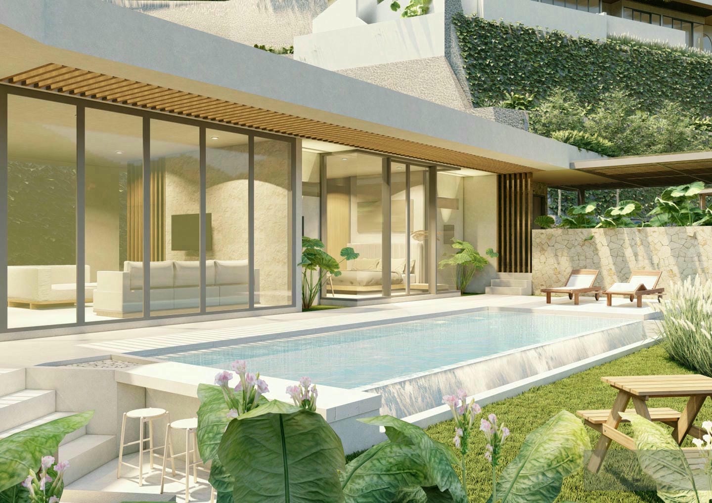 Ce développement exclusif comprend 8 villas d’exception, soigneusement conçues selon un concept moderne et tropical alliant éléments naturels, finitions en bois clair et lignes minimalistes élégantes. Les intérieurs dégagent chaleur et sérénité grâce à des textures douces et des tons neutres, tandis que de larges ouvertures vitrées laissent entrer une lumière naturelle abondante et créent une parfaite harmonie entre les espaces intérieurs et extérieurs. De plus, les acheteurs ont la rare opportunité d’acquérir le terrain et de concevoir une villa sur mesure, entièrement adaptée à leur vision — un véritable sanctuaire personnel au cœur du paradis.