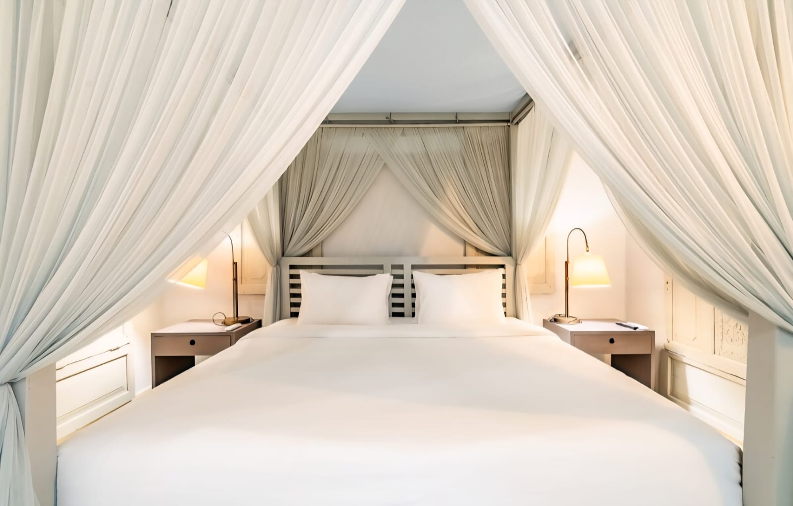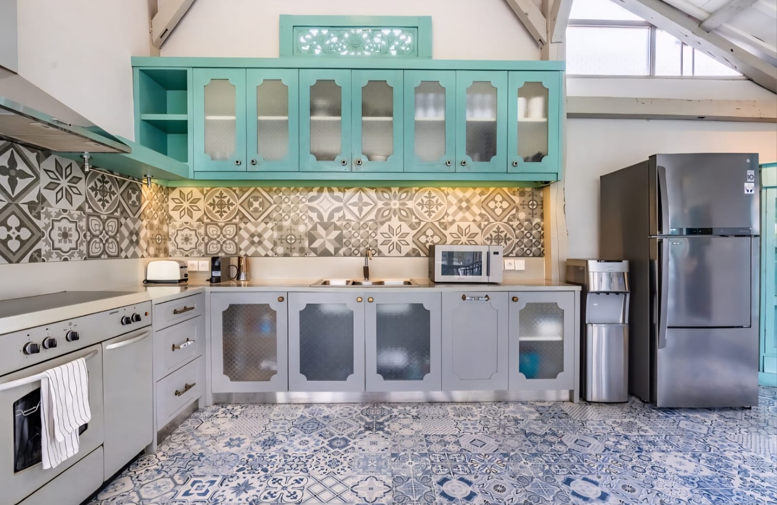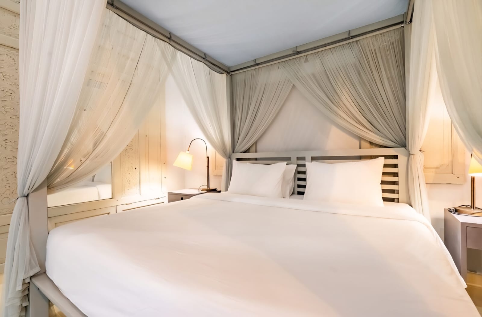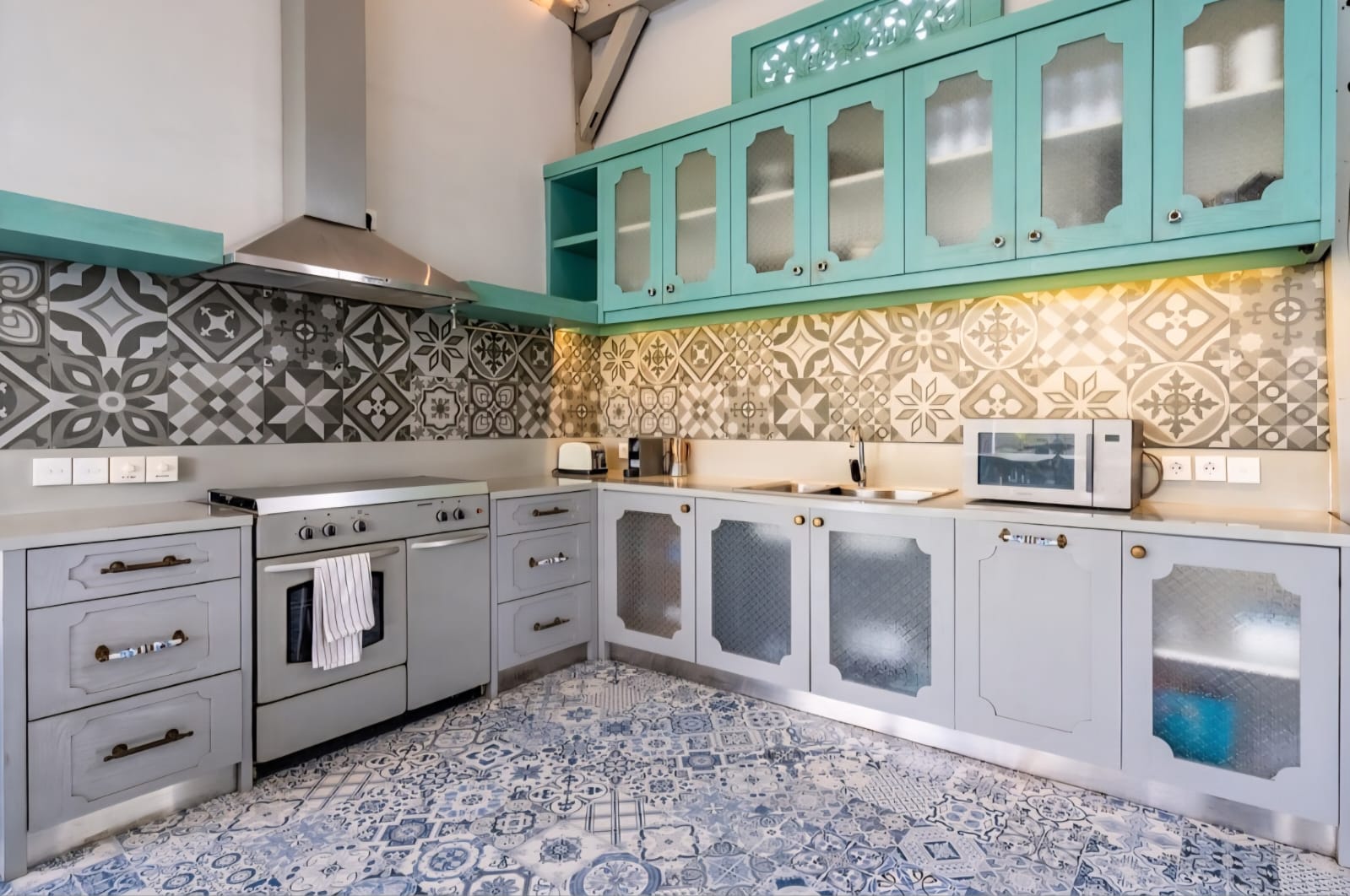Sise sur un terrain généreux de 500 m², la villa présente un design traditionnel et aéré qui allie le charme d’antan au confort tropical. Des tons pastel doux, des carreaux à motifs et des détails en bois rustique créent une atmosphère à la fois chaleureuse et élégante dans l’espace de vie ouvert et la cuisine entièrement équipée.