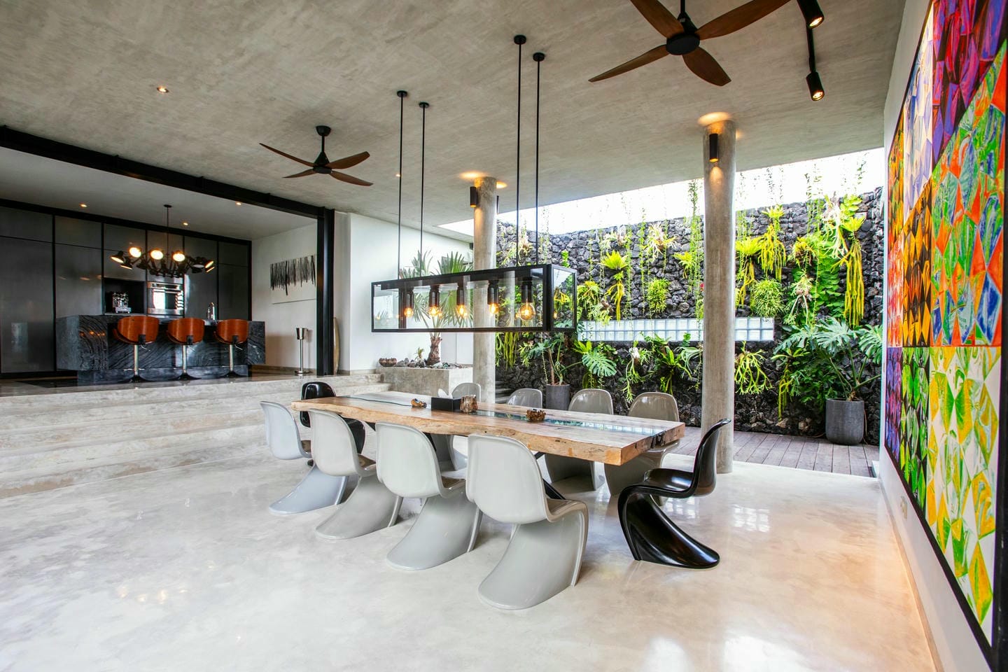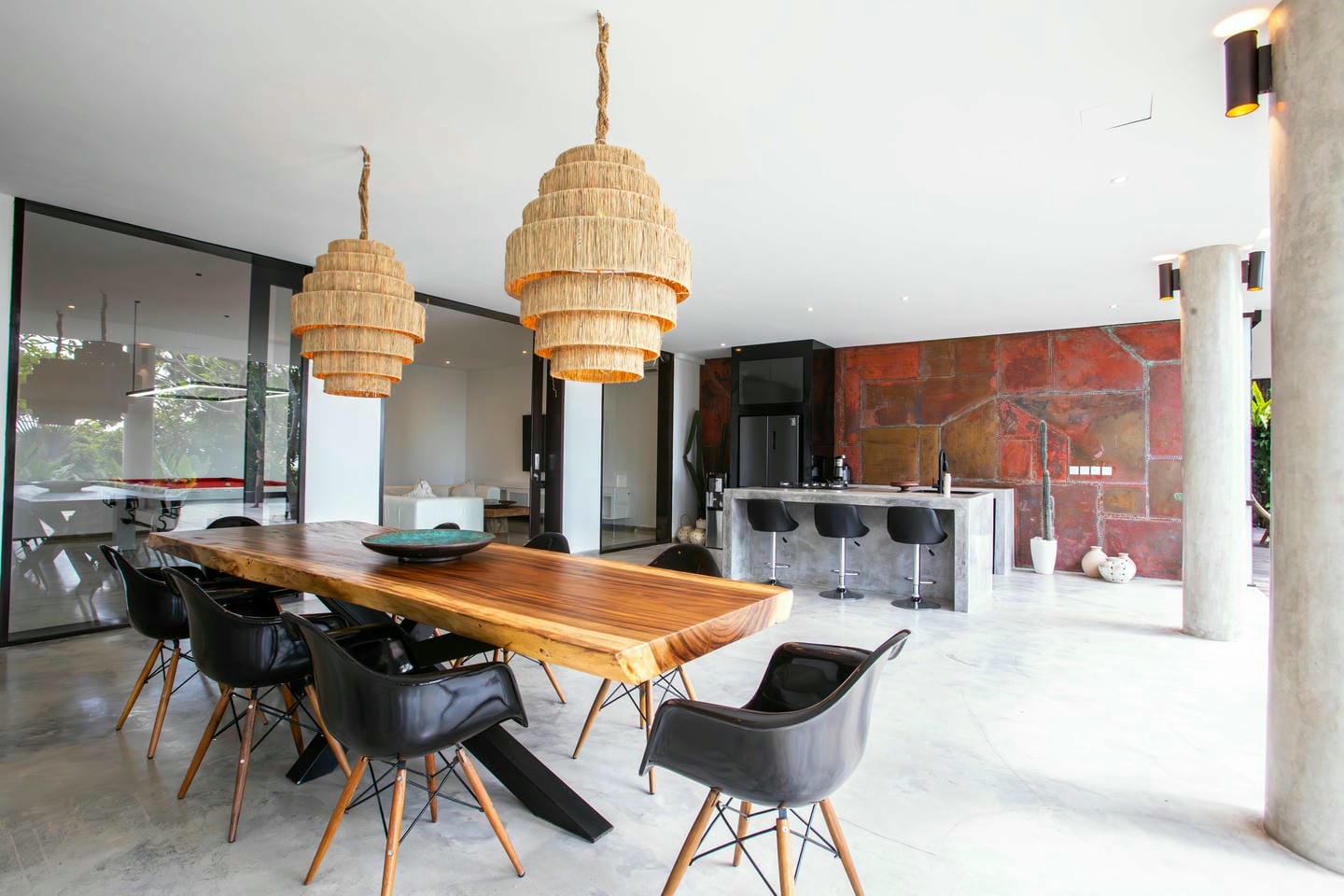 Cette luxueuse villa perchée sur une colline propose des vues imprenables à 180 degrés sur des plages immaculées et un volcan au loin. Elle dispose d’un vaste espace de vie décloisonné avec une cuisine semi-extérieure, mise en valeur par un îlot en marbre, une grande table à manger et une cuisine entièrement équipée avec un ensemble complet d’électroménagers. La suite parentale comprend une terrasse privée sur le toit avec jacuzzi, tandis que trois autres chambres, chacune avec sa propre terrasse ou son jardin, sont dotées de salles de bains privatives pour un confort optimal. Au niveau inférieur, vous trouverez un second espace de vie, une table de billard, une autre cuisine entièrement équipée, une salle de sport et un sauna, offrant tout le nécessaire pour la détente et le divertissement.