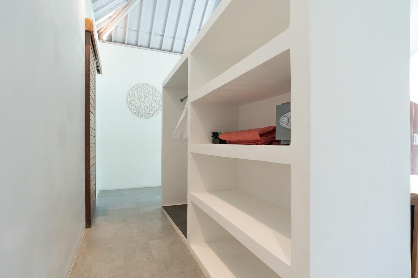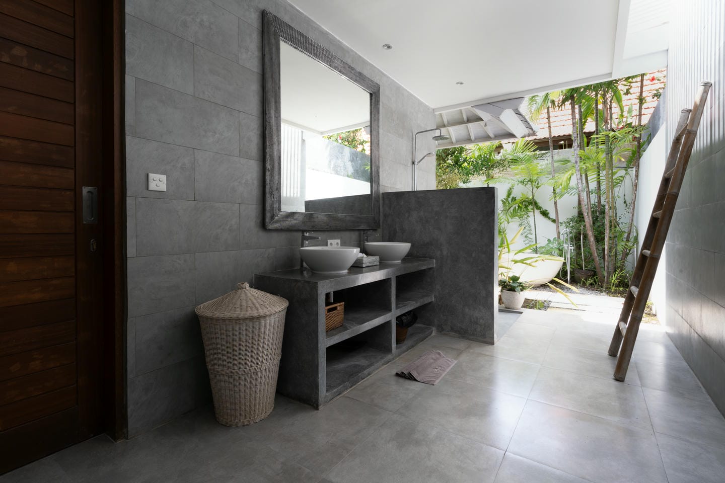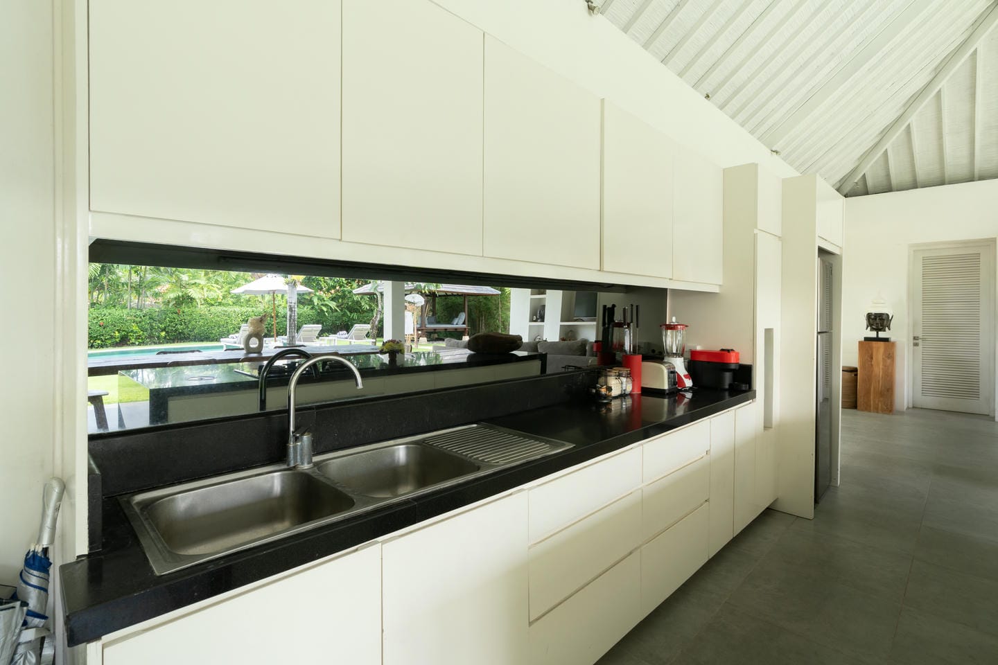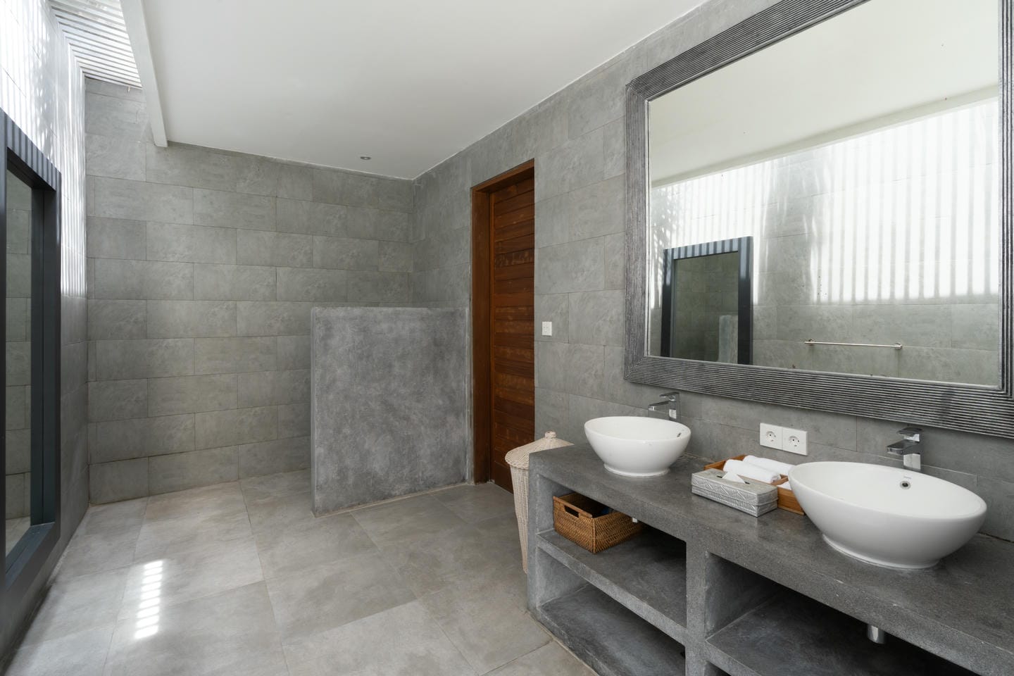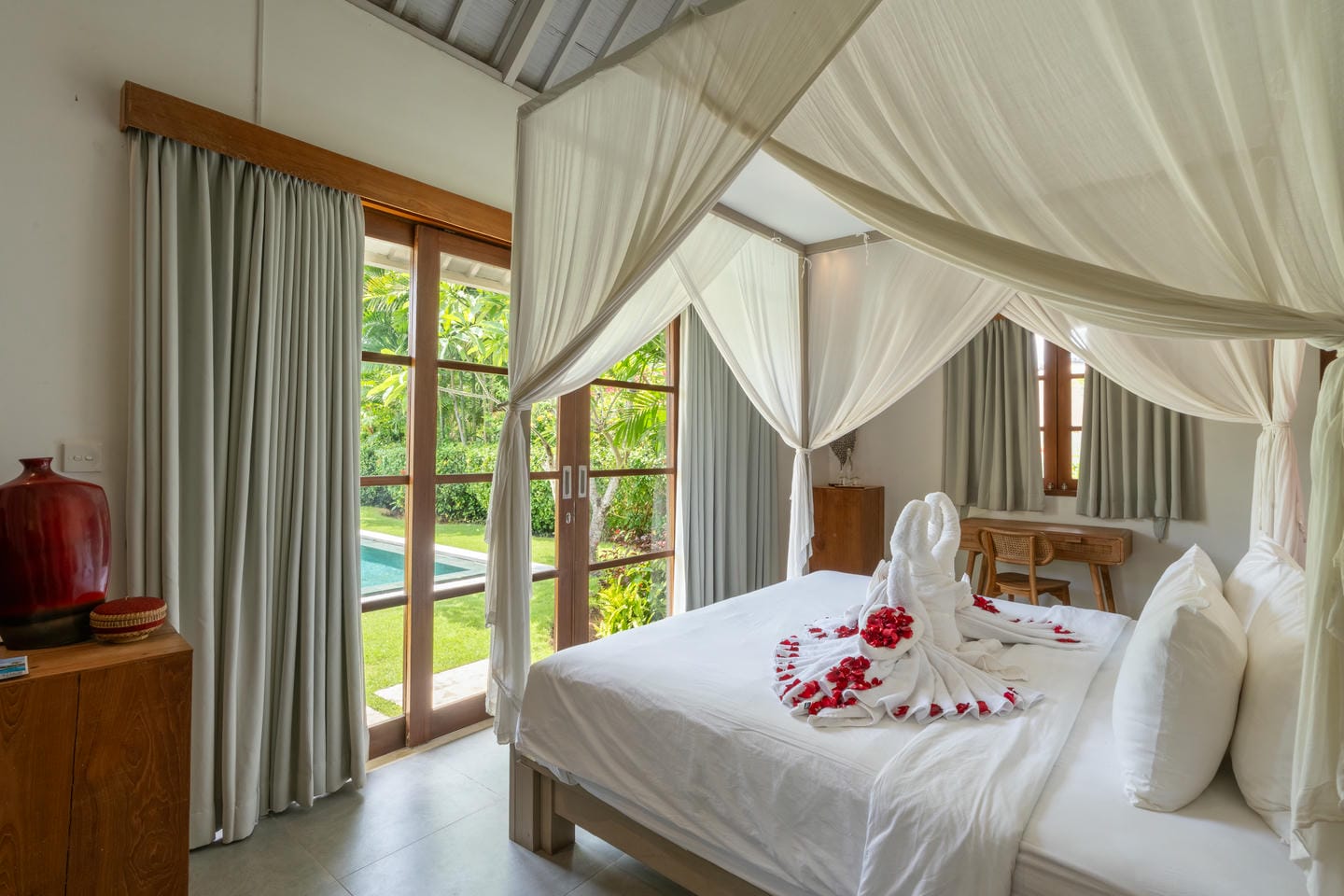 À l’intérieur, la villa offre de spacieux espaces de vie d’inspiration balinaise, avec une cuisine et une salle à manger ouvertes sur l’extérieur, entièrement équipées pour allier confort et praticité. Chaque chambre dispose d’un lit king-size, de la climatisation et de moustiquaires, avec une vue sur le jardin qui crée une ambiance sereine et proche de la nature. Le design allie ouverture et chaleur, pour une atmosphère détendue et conviviale.