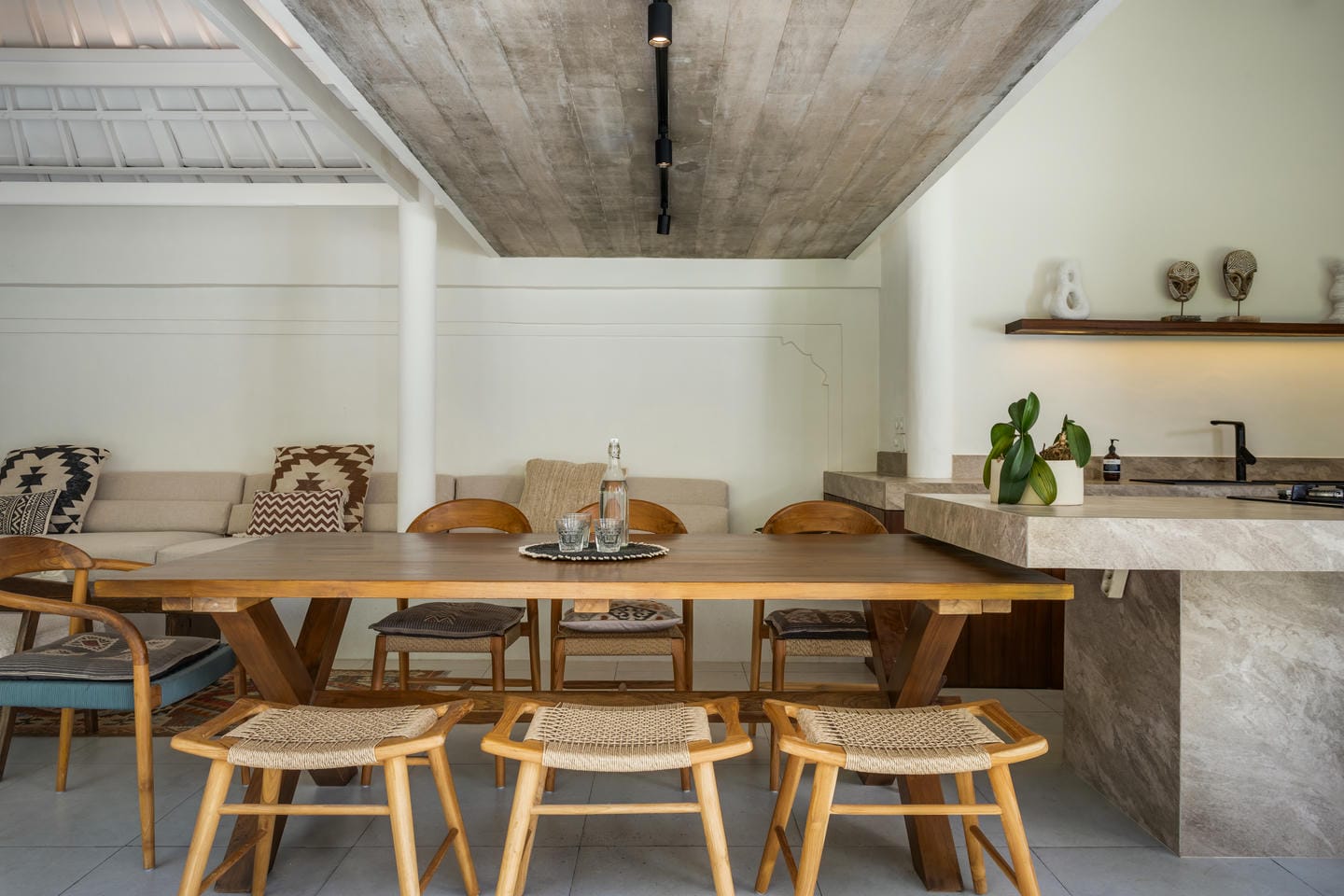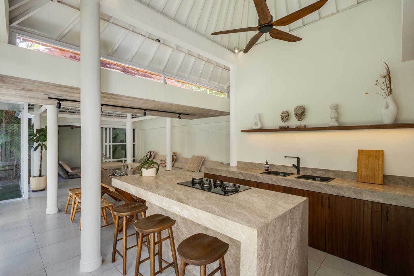 Cette villa présente un design tropical lumineux avec de hauts plafonds qui améliorent la sensation d'espace et la circulation de l'air naturel dans toute la maison. L'espace de vie décloisonné intègre parfaitement le salon, la salle à manger et la cuisine, permettant à la lumière naturelle de remplir l'intérieur tout en créant un cadre confortable pour la vie quotidienne. La propriété comprend un aménagement de 3,5 chambres et 3 salles de bains avec 1 espace bureau ou studio, dont 1 pièce polyvalente supplémentaire pouvant servir d'espace de travail, de bureau ou d'espace polyvalent, ainsi qu'un bureau ou une salle de jeux séparé au sein de la villa. La conception permet également la possibilité d'ajouter 1 chambre supplémentaire et 1 salle de bain au-dessus de l'espace de stockage, offrant ainsi une flexibilité supplémentaire pour une utilisation future.