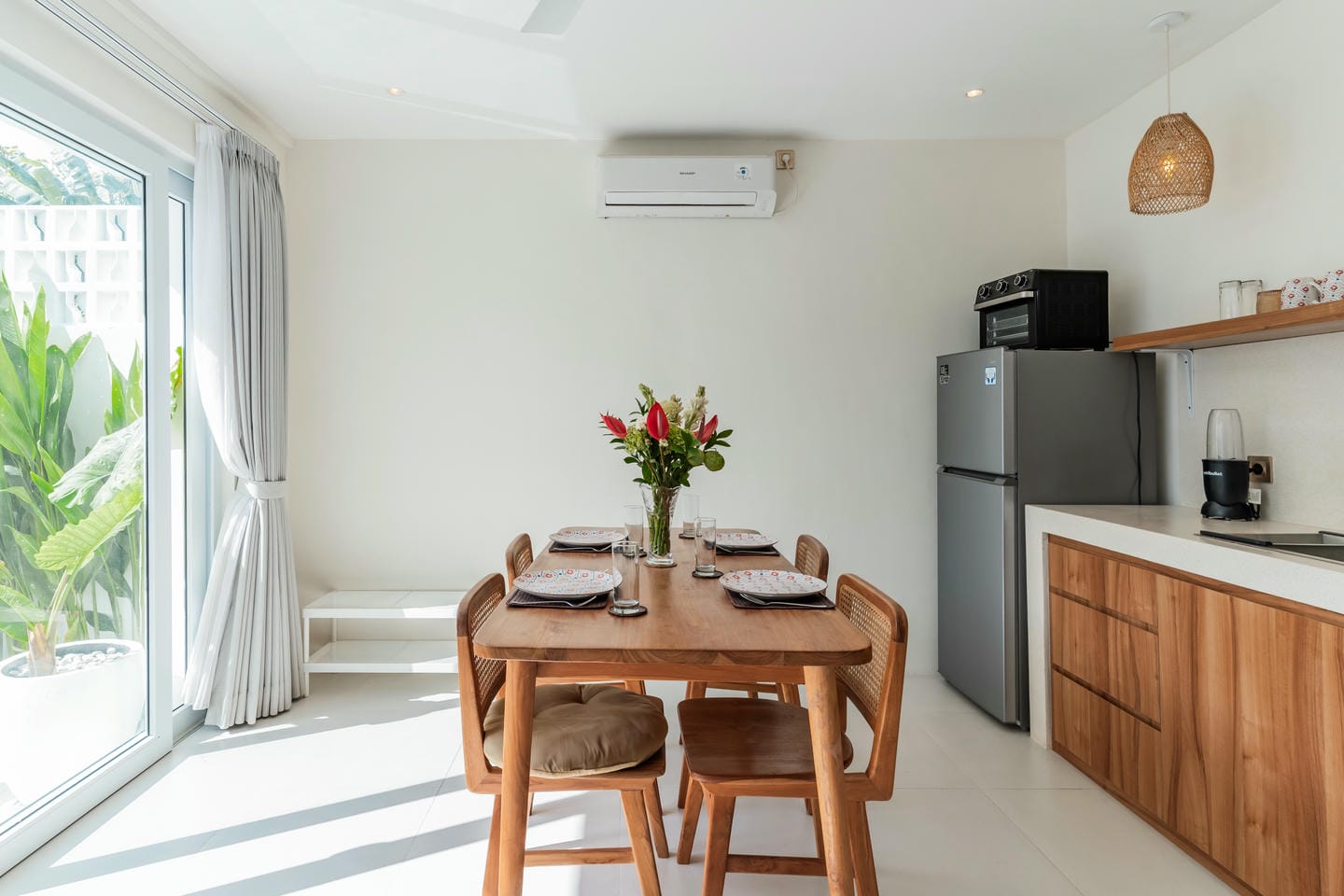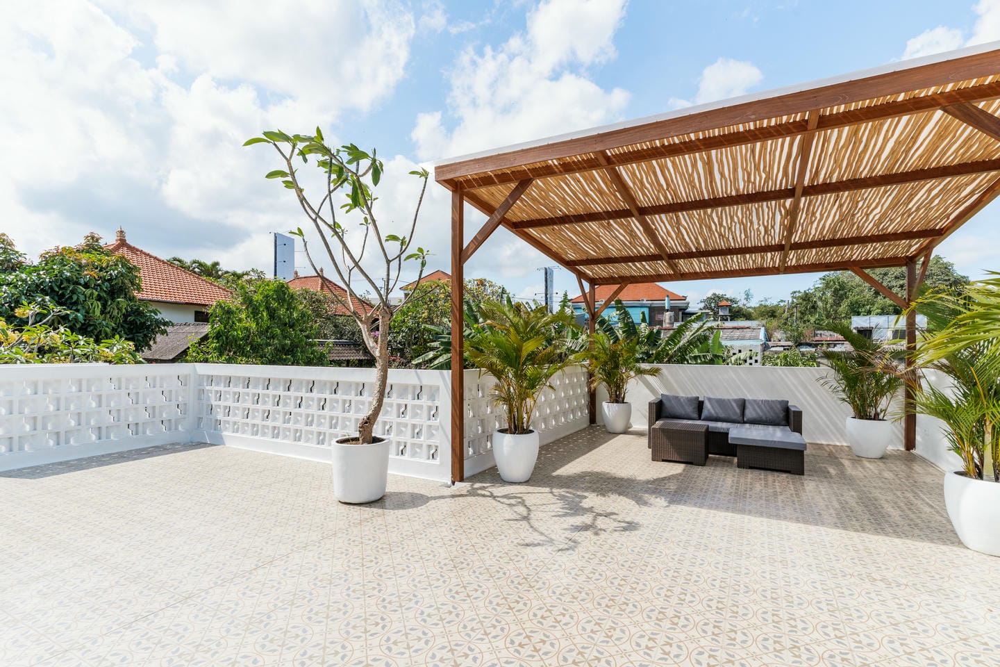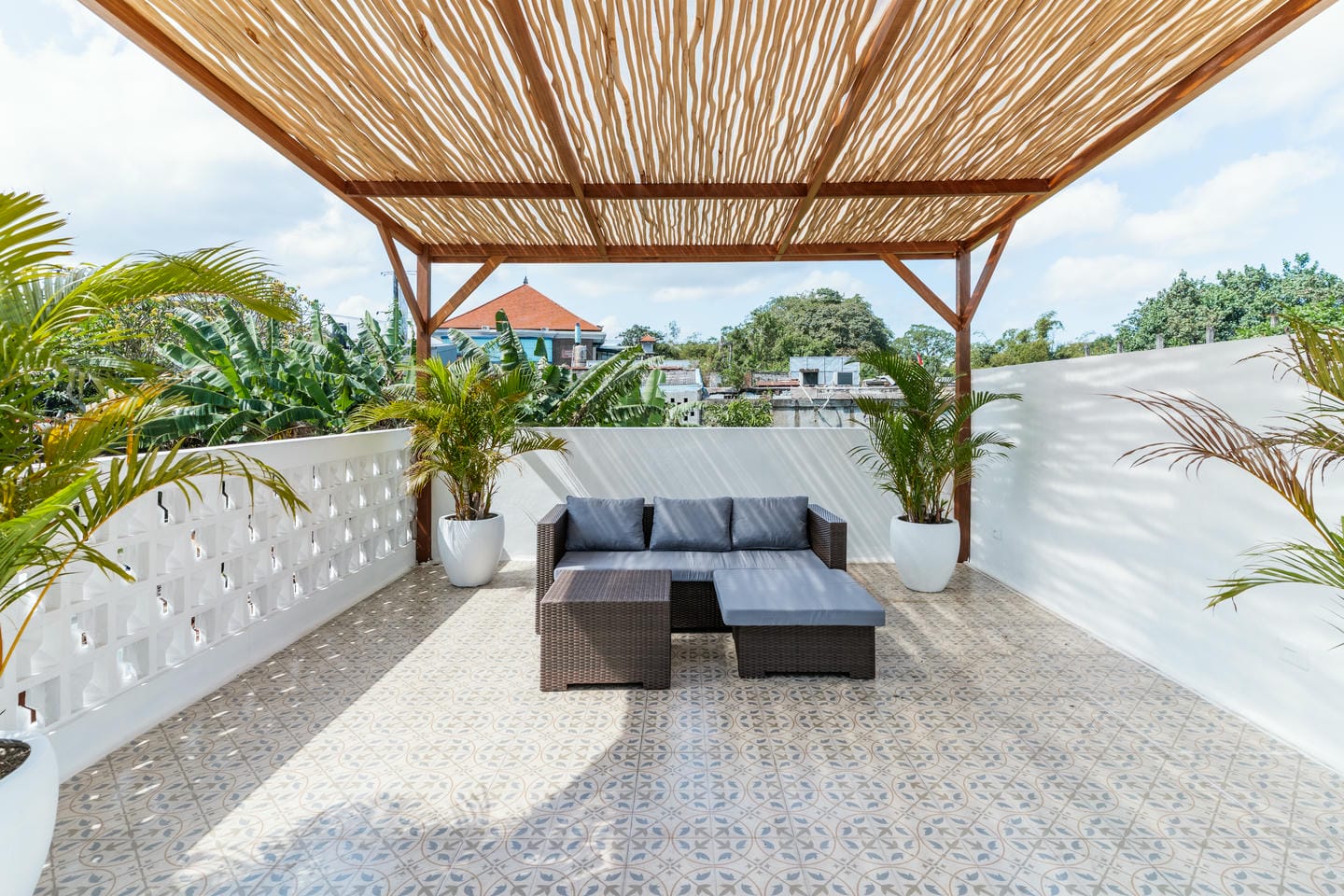 À l’extérieur, la villa dévoile tout son charme tropical avec une piscine privée rafraîchissante et un spacieux rooftop — parfait pour savourer un café matinal ou profiter du coucher de soleil.