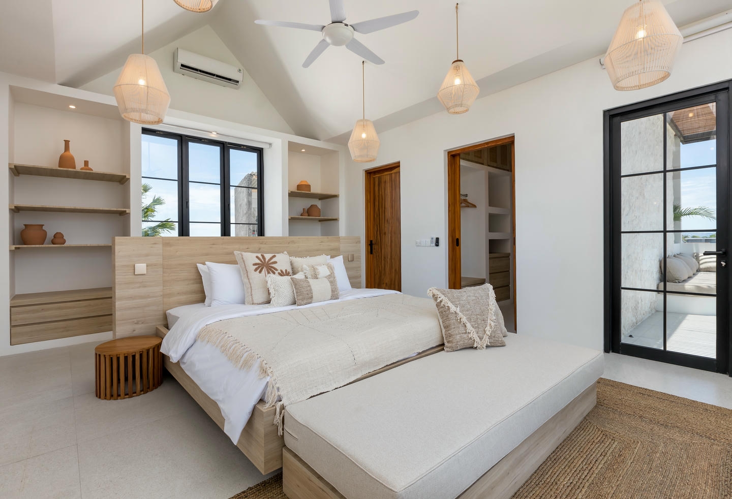 Depuis le balcon à l’étage, admirez une vue imprenable sur les rizières, avec un aperçu de l’océan — un cadre typiquement balinais, rare et recherché.