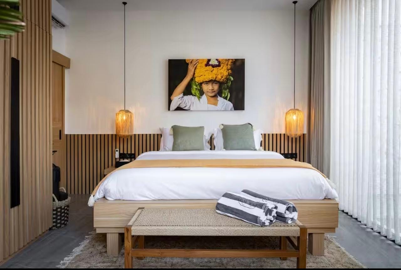 L’espace de vie propose un vaste agencement en open space au design tropical moderne, reliant harmonieusement le salon, la salle à manger et la cuisine en un seul espace fluide. Les hauts plafonds, les lignes épurées et les matériaux naturels chaleureux créent une atmosphère élégante et confortable, tandis que les grandes ouvertures laissent entrer une abondante lumière naturelle et favorisent la circulation de l’air. La villa offre 3 chambres bien conçues, chacune avec sa propre salle de bain privative.