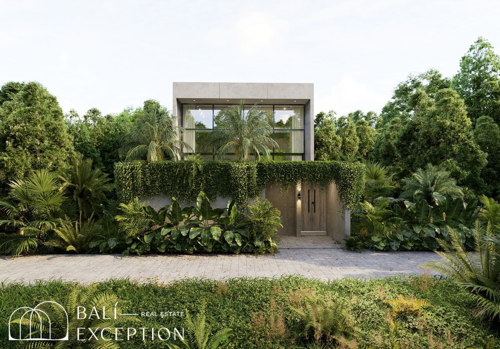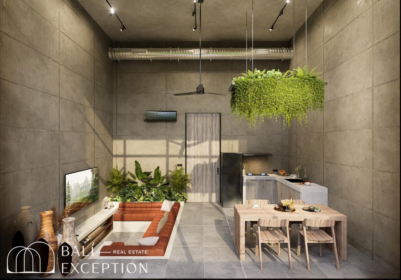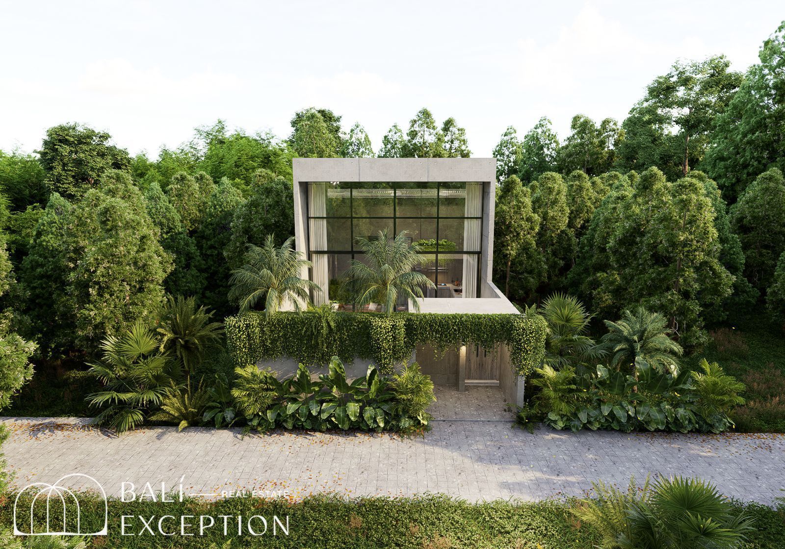 La villa, de plain-pied, comprend une chambre et une salle de bains, et arbore un style tropical minimaliste chaleureux. L'intérieur mêle des textures naturelles comme les murs en pierre, des tons neutres doux et des touches de bois, créant une atmosphère calme et accueillante. De grandes fenêtres cintrées et des portes vitrées laissent entrer la lumière naturelle en abondance.