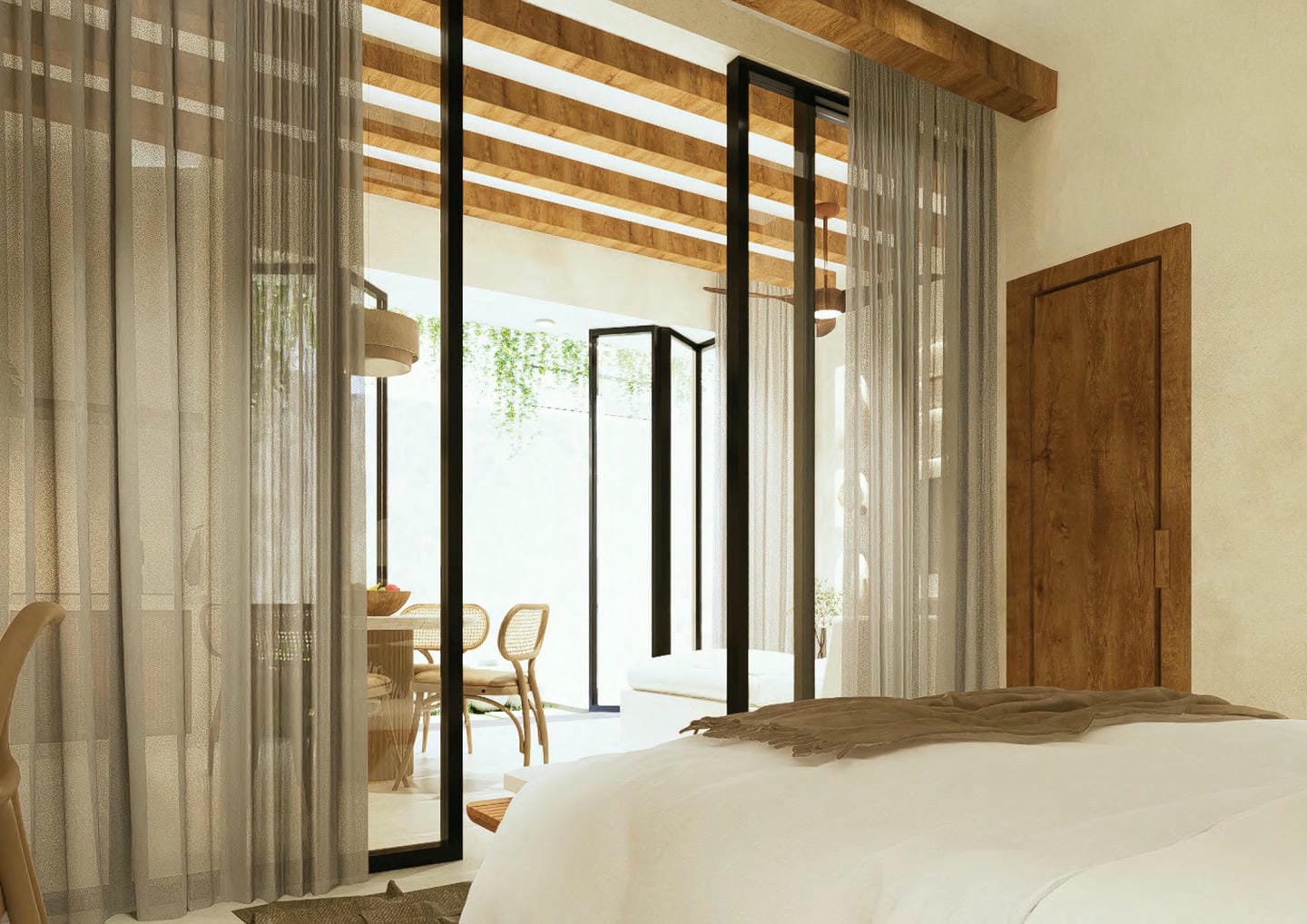 Les villas sont conçues comme des résidences de plain-pied, offrant un agencement harmonieux centré sur la vie en extérieur. Chaque unité est soigneusement pensée pour créer une connexion fluide entre les espaces intérieurs, le jardin et la piscine, favorisant l’intimité, la lumière naturelle et le confort au quotidien.