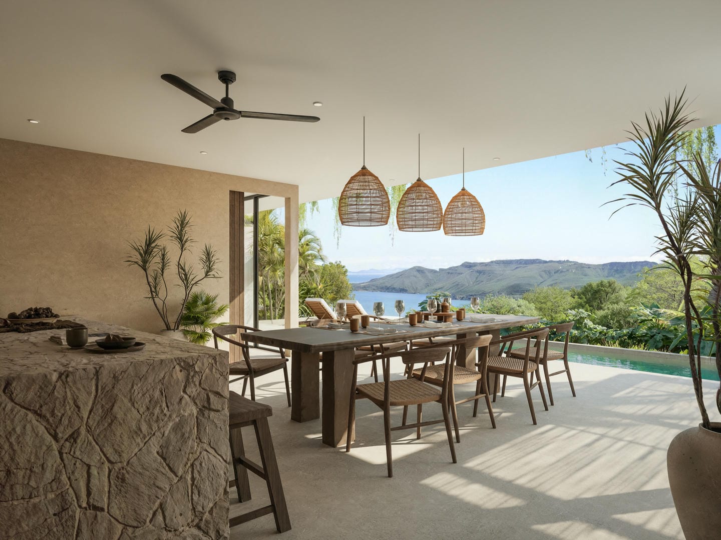 Cette propriété allie harmonieusement les espaces intérieurs et extérieurs, offrant intimité et luxe tout en embrassant pleinement son environnement tropical. Construite avec des matériaux locaux écoresponsables, elle reflète un engagement fort envers la durabilité sans compromis sur le confort.