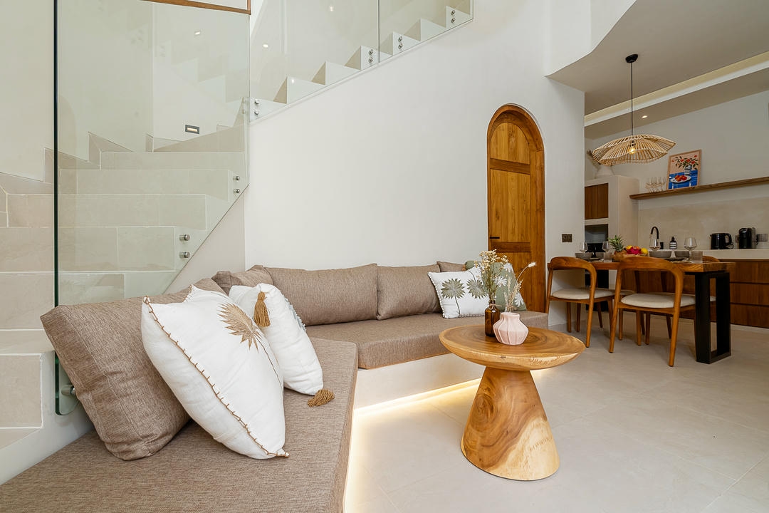 Cette propriété se compose de deux villas séparées — l’une avec 2 chambres, l’autre avec 1 chambre — vendues ensemble en un seul lot, offrant une grande flexibilité pour y vivre, recevoir ou générer des revenus locatifs. Les deux villas sont entièrement terminées, entièrement meublées, et disposent d’un séjour fermé avec cuisine entièrement équipée.