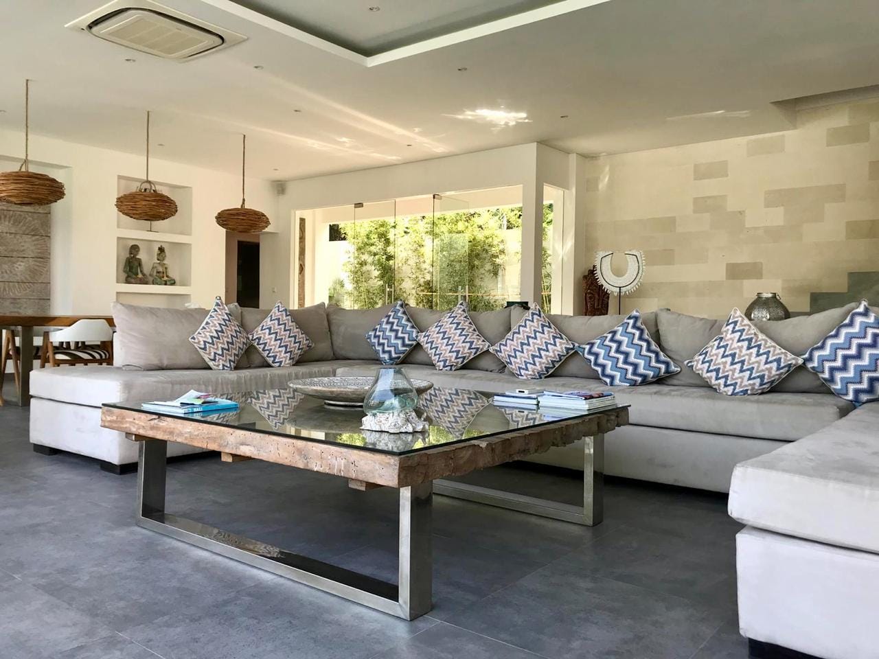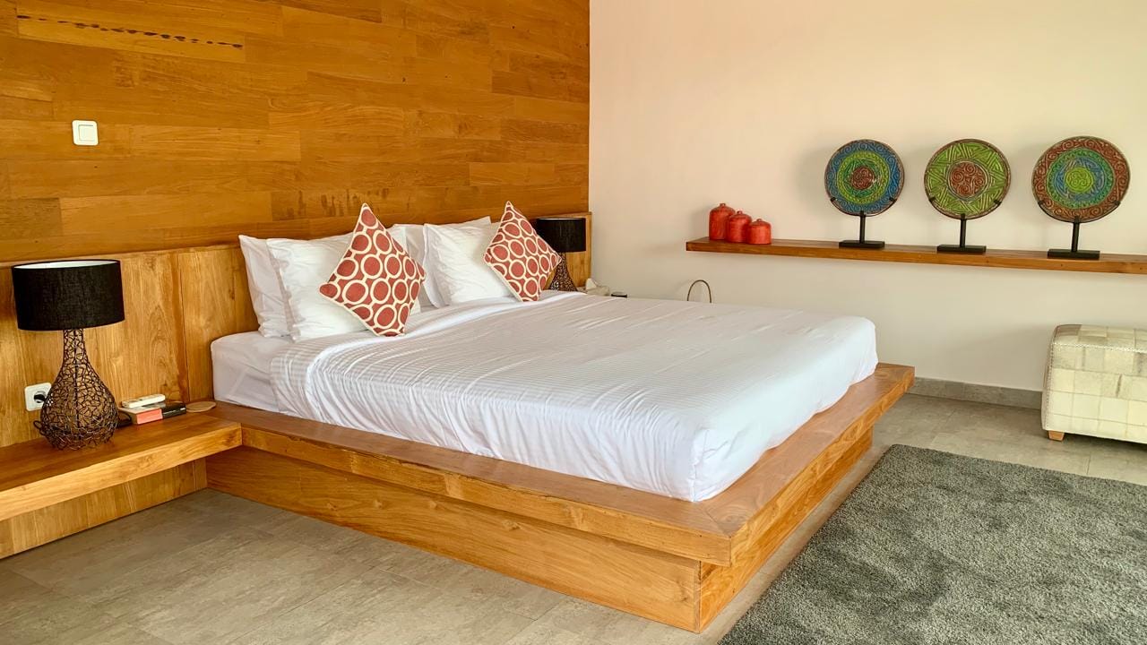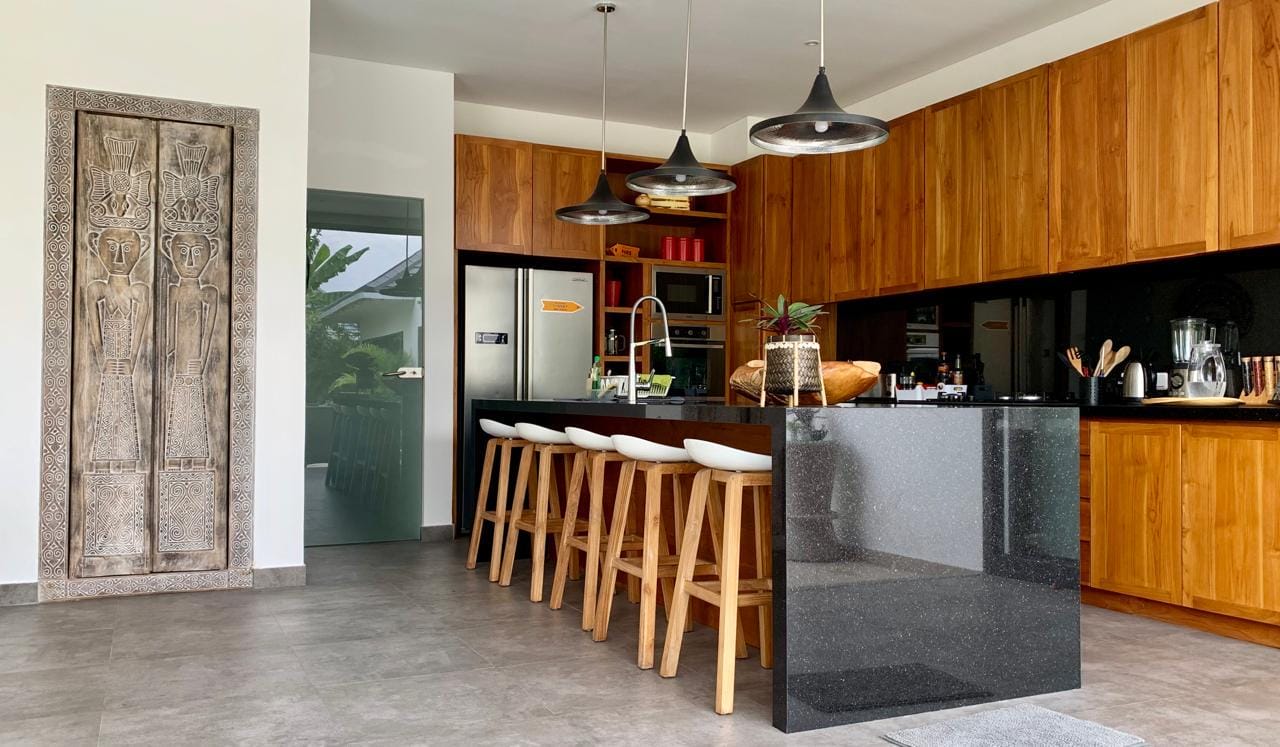 Cette villa présente un design tropical moderne et raffiné, avec des lignes architecturales épurées et une parfaite connexion entre les espaces intérieurs et extérieurs. L’espace de vie en plan ouvert réunit un salon élégant, une salle à manger et une cuisine moderne entièrement équipée, sublimés par de larges baies vitrées pleine hauteur qui baignent l’intérieur de lumière naturelle et créent une atmosphère aérée et sophistiquée. Les finitions en bois chaleureux et les touches de pierre naturelle ajoutent profondeur et élégance, tandis que l’agencement bien pensé comprend 3 chambres et 3 salles de bain, offrant confort, fonctionnalité et un bel équilibre des volumes dans toute la villa.