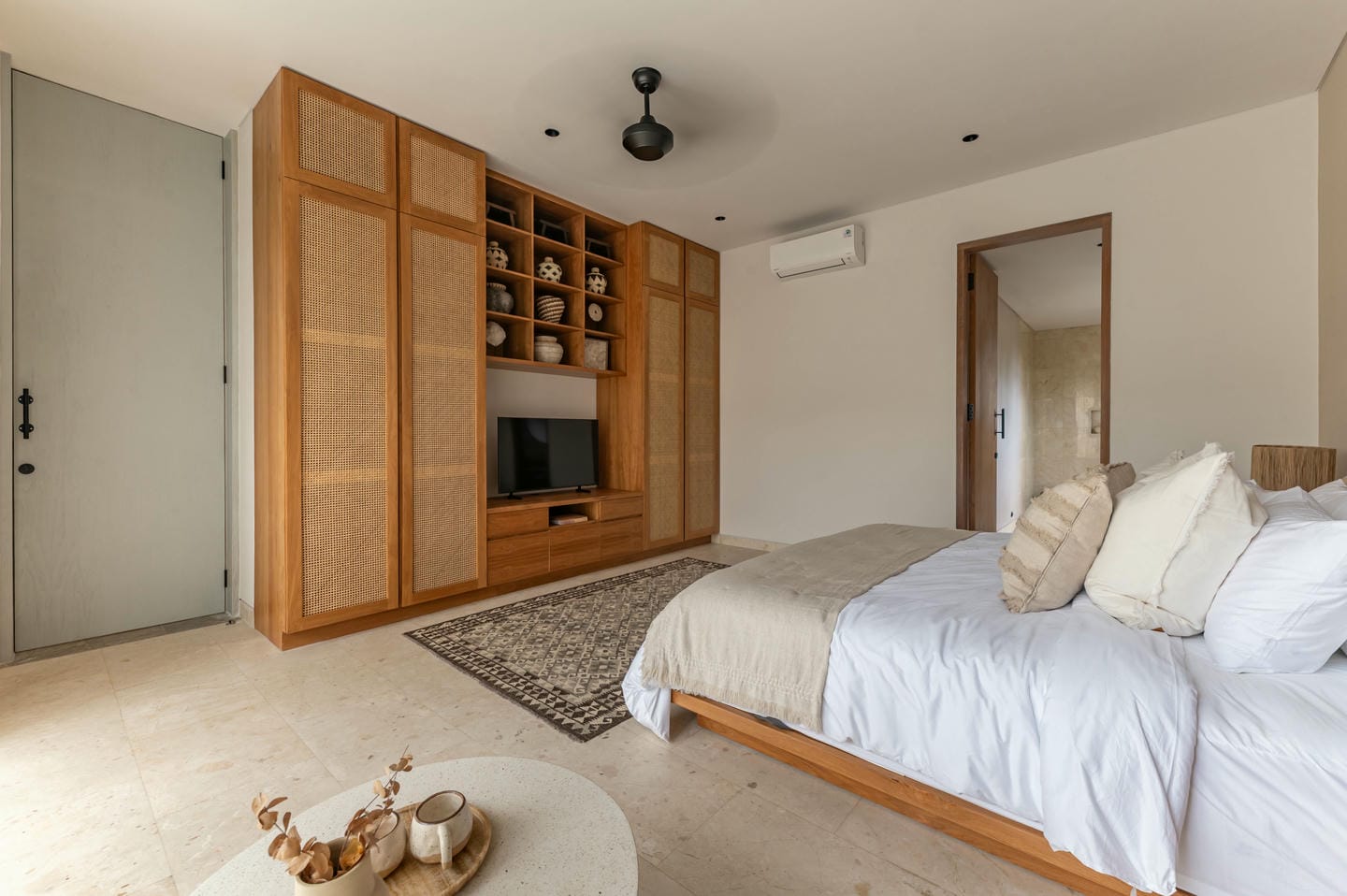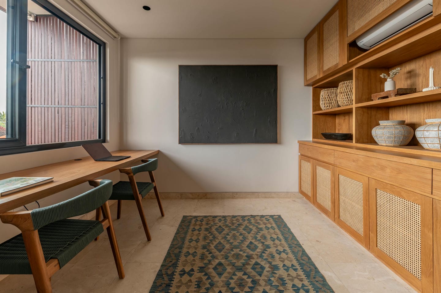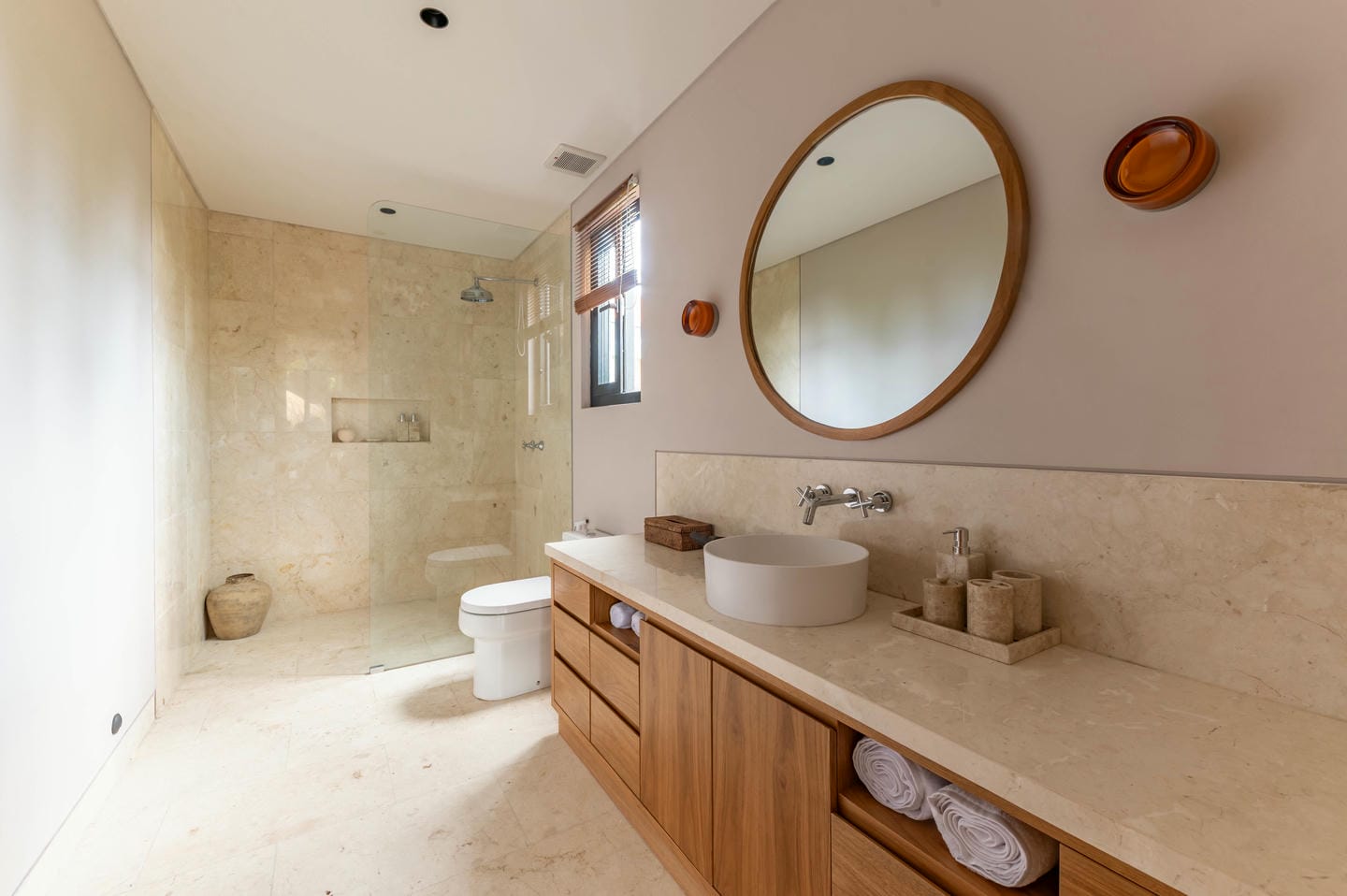Entièrement meublée et conçue pour une vie familiale, cette villa associe harmonieusement sophistication moderne et chaleur balinaise. Elle dispose de sols en marbre acid-wash, d’accents en bois naturel et de murs enduits d’un blanc cassé doux créant une atmosphère lumineuse et accueillante. Répartie sur deux étages, la villa offre de vastes espaces de vie et de repas en plan ouvert donnant sur la piscine extérieure, ainsi que quatre grandes chambres avec placards intégrés, une abondante lumière naturelle et une salle de bain attenante. Les équipements supplémentaires comprennent un bureau privé, une salle de sport, Salle de télévision, des toilettes invités, une buanderie et de nombreux espaces de rangement, garantissant confort et commodité pour toute la famille.