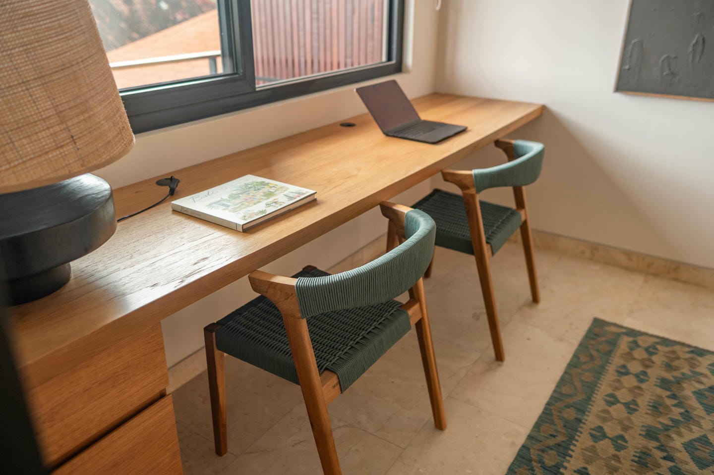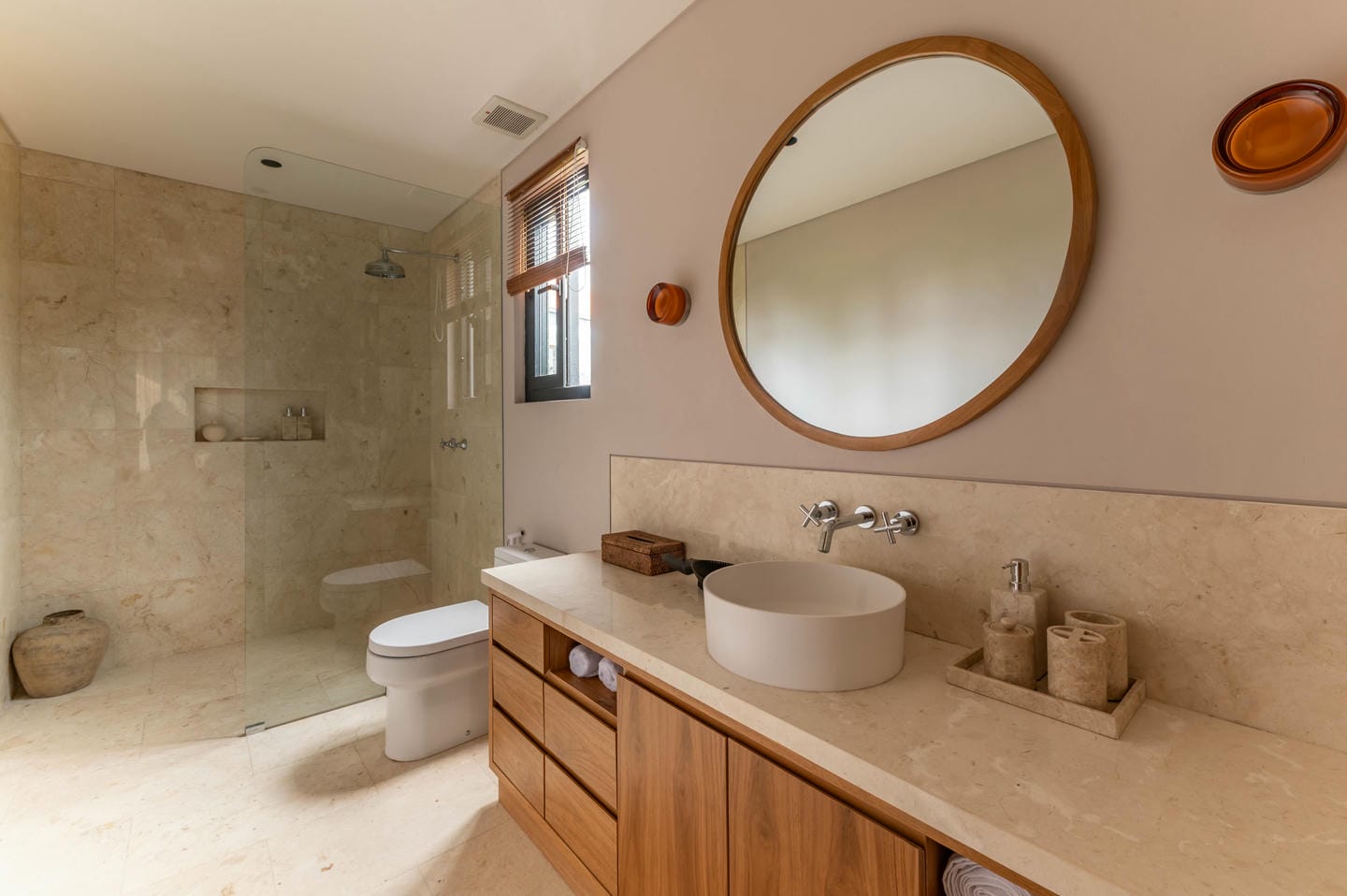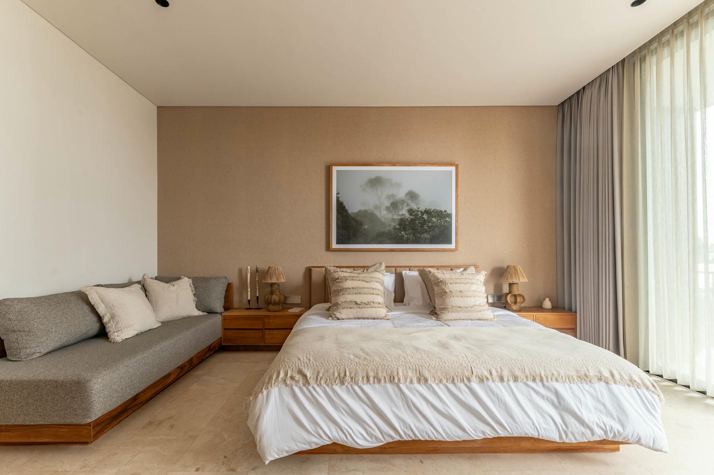 Entièrement meublée et conçue pour une vie familiale, cette villa associe harmonieusement sophistication moderne et chaleur balinaise. Elle dispose de sols en marbre acid-wash, d’accents en bois naturel et de murs enduits d’un blanc cassé doux créant une atmosphère lumineuse et accueillante. Répartie sur deux étages, la villa offre de vastes espaces de vie et de repas en plan ouvert donnant sur la piscine extérieure, ainsi que quatre grandes chambres avec placards intégrés, une abondante lumière naturelle et une salle de bain attenante. Les équipements supplémentaires comprennent un bureau privé, une salle de sport, Salle de télévision, des toilettes invités, une buanderie et de nombreux espaces de rangement, garantissant confort et commodité pour toute la famille.