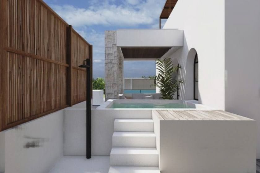 La première villa comprend 2 chambres avec salles de bains luxueuses, un salon en suite, une salle multimédia/loisirs, une salle à manger fermée, un sundeck extérieur, une cuisine entièrement équipée, un patio, un balcon, un rooftop, des quartiers pour le personnel, un jacuzzi au deuxième étage, un parking pour 2 voitures et une magnifique piscine.