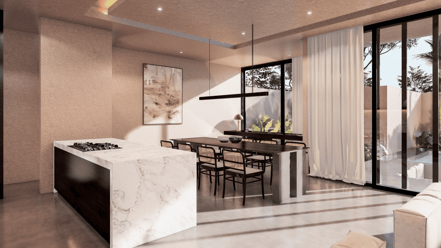 Entièrement meublée dans un style tropical moderne, la villa se distingue par ses grandes baies vitrées laissant entrer une abondante lumière naturelle. La parfaite harmonie entre les espaces intérieurs et extérieurs offre un style de vie en communion avec la nature.