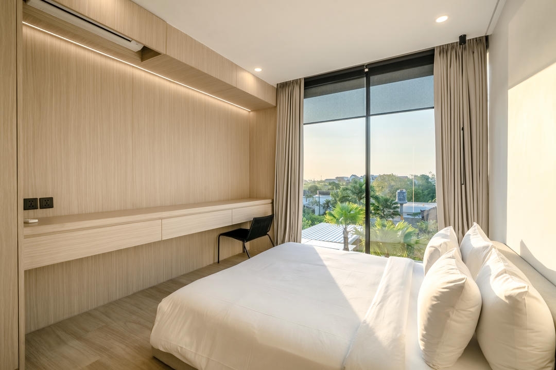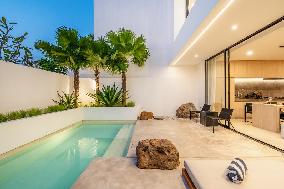 - Piscine Privée : Sortez pour profiter d’une piscine privée accompagnée d’un lit et d’une chaise confortables, idéale pour la détente et le divertissement.