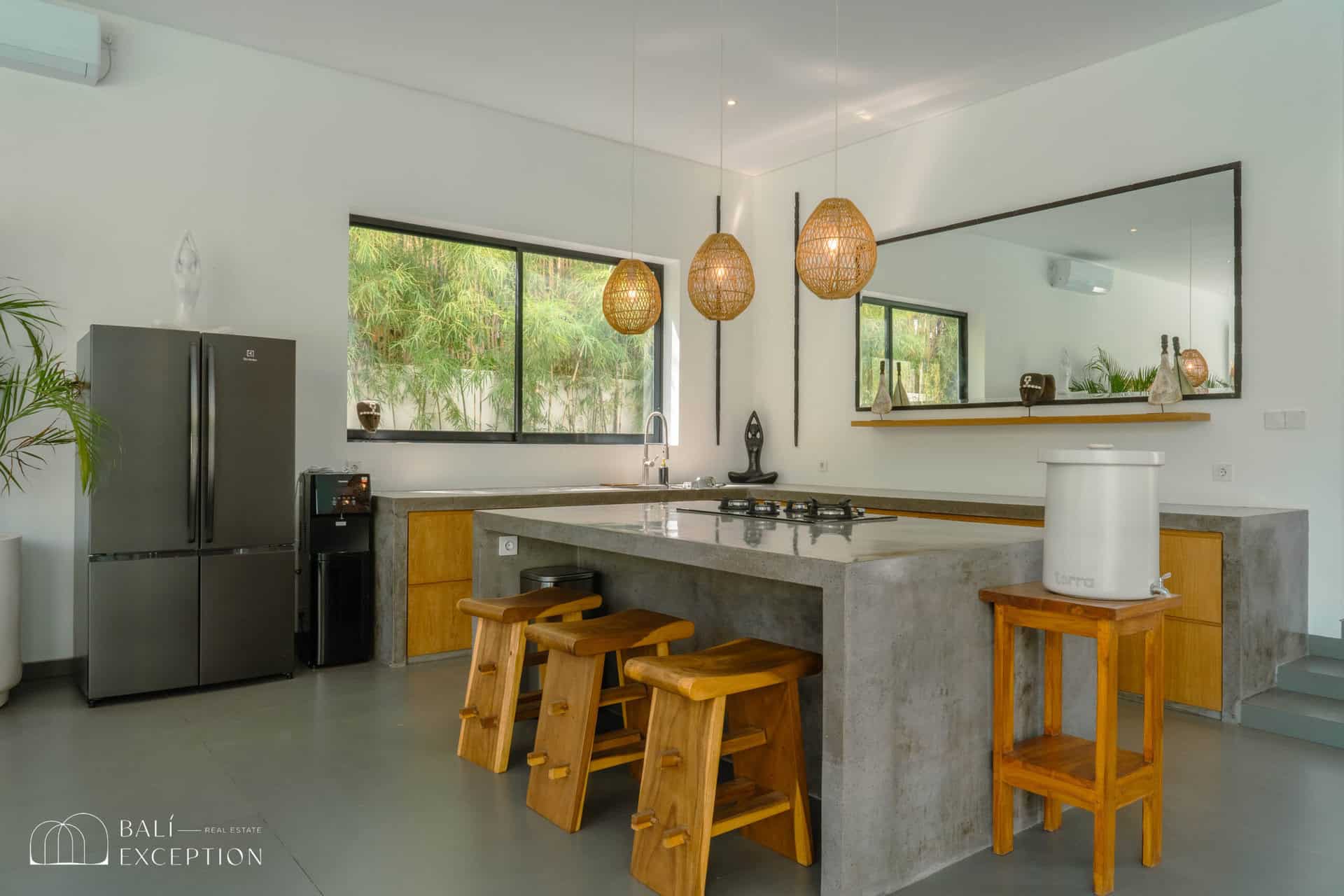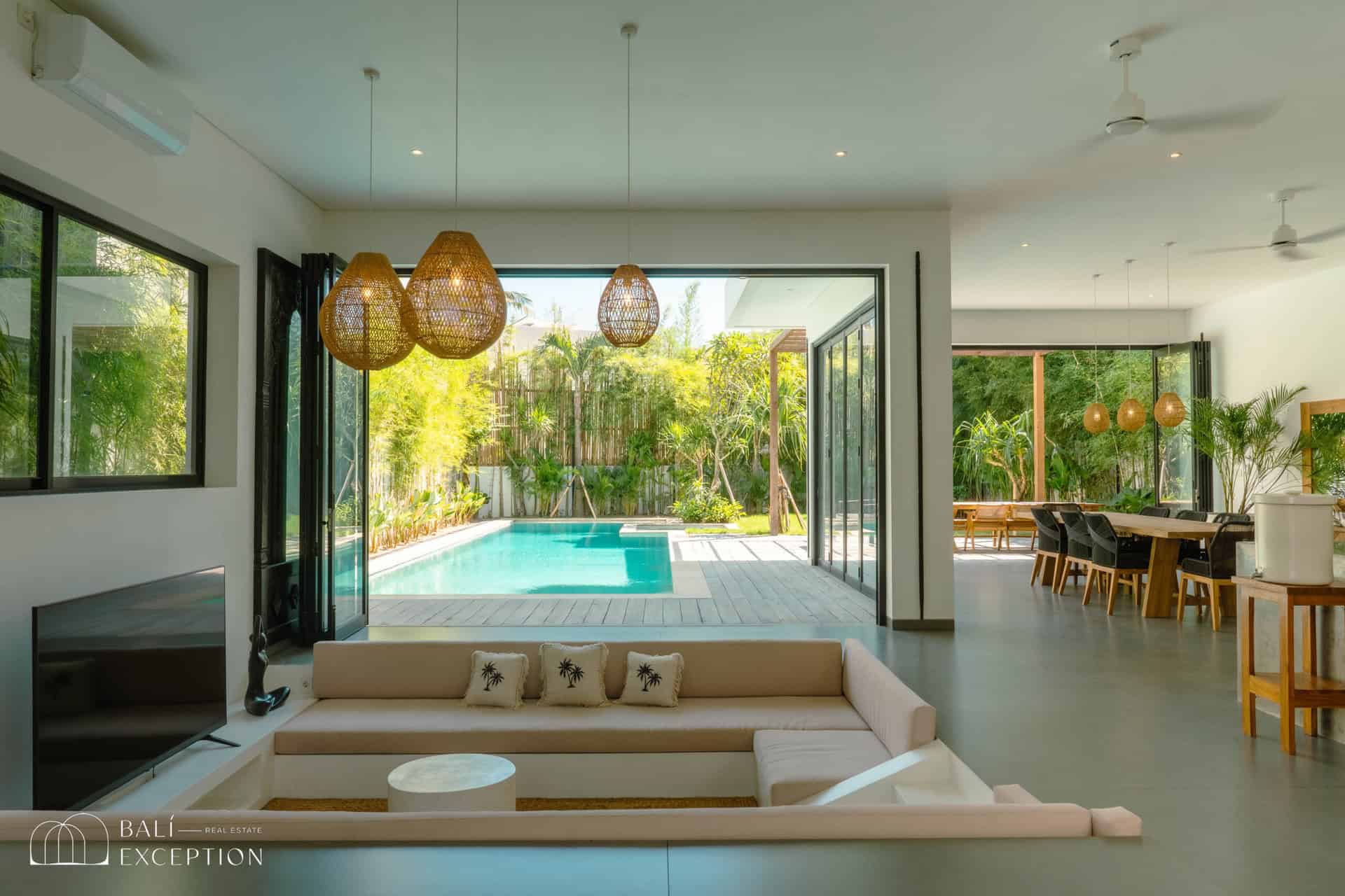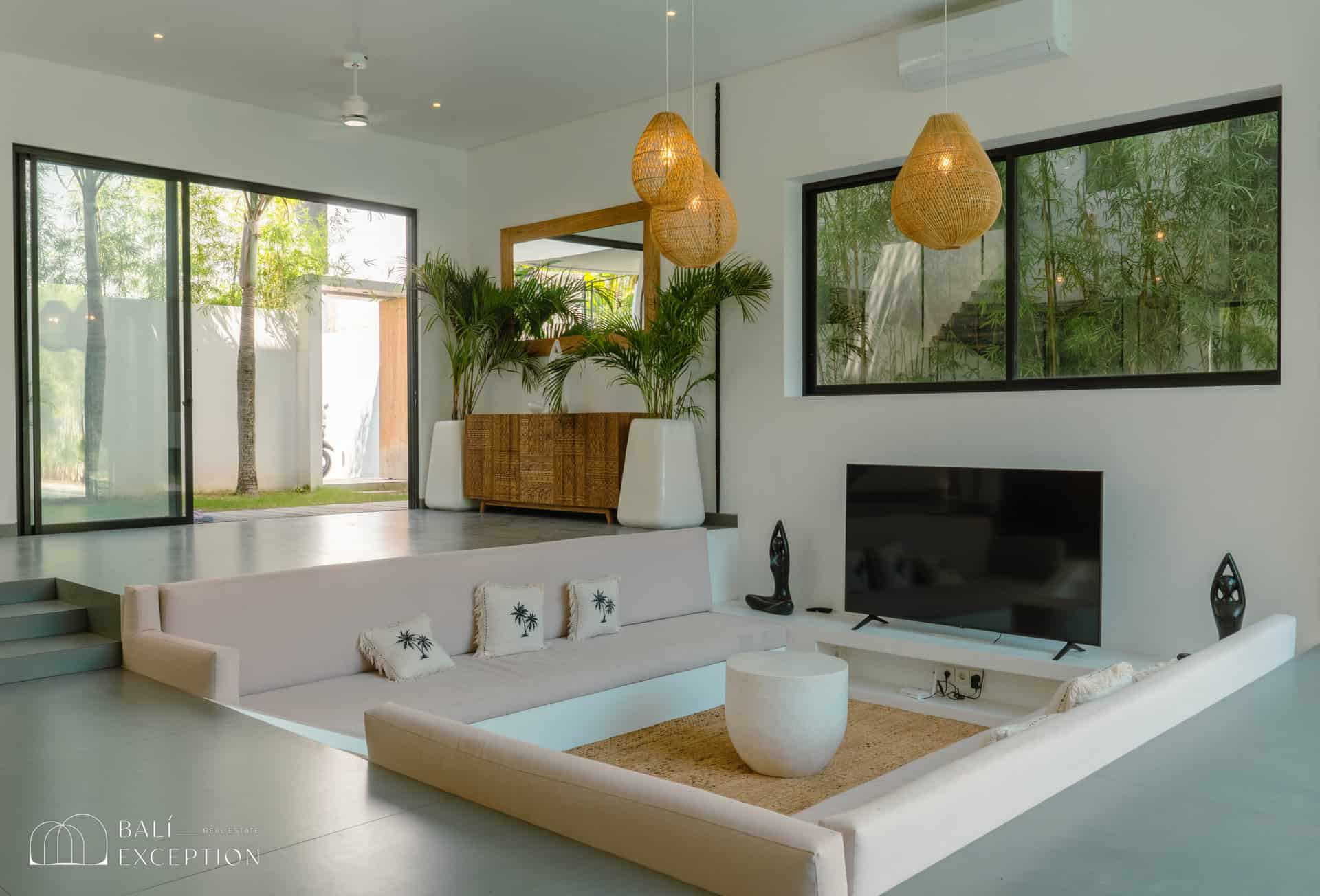 - Exquise Villa de Luxe Tropicale à Pererenan, Canggu Découvrez le summum de la vie de luxe tropicale dans cette superbe villa en construction, nichée au cœur vibrant de Pererenan, Canggu. Parfaitement positionnée à proximité de cafés, restaurants, et clubs de plage, elle offre une commodité ultime avec seulement 4 minutes en scooter jusqu’au Woods Restaurant, 7 minutes jusqu’au La Brisa Beach Club, et jusqu’au célèbre spot de surf à Pererenan Beach. Caractéristiques Principales :Élégance Moderne : Située sur un terrain de 620 m², la villa dispose de 3 chambres avec salles de bains attenantes, d’un salon en contrebas, d’une cuisine bien équipée, et d’une salle à manger chic.