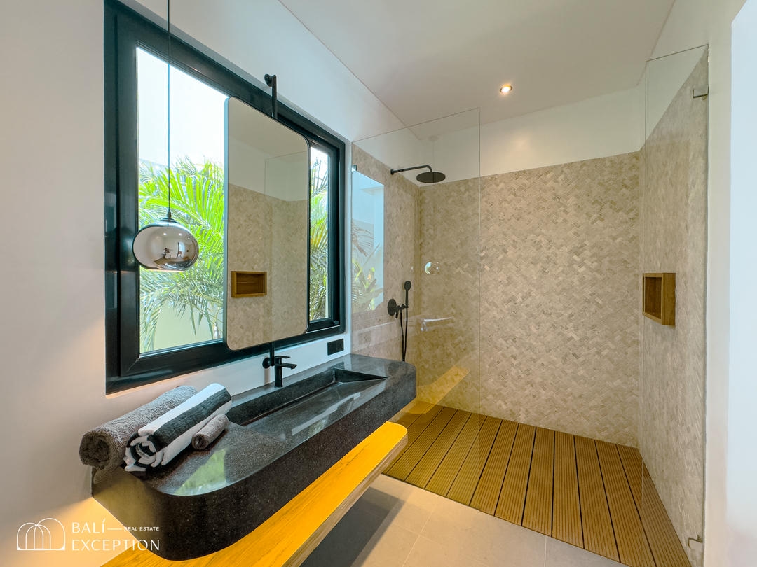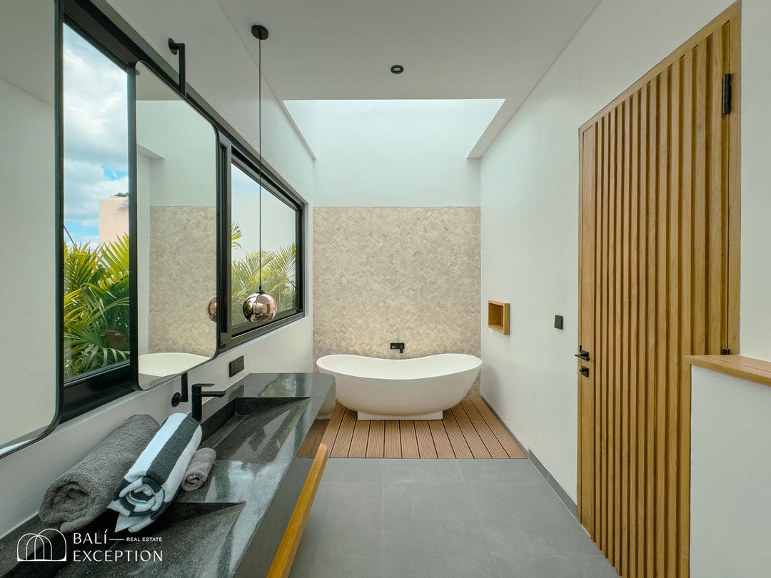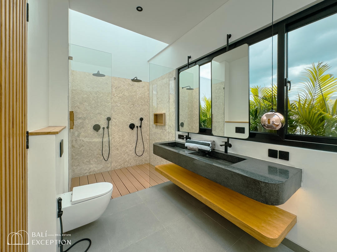 Villa Exquise à Tumbak Bayuh avec Emplacement de Choix Nichée au cœur de Tumbak Bayuh, cette villa exquise bénéficie d’un emplacement privilégié, à quelques pas de cafés animés, restaurants raffinés et des plages immaculées de Pererenan, accessibles en seulement 8 minutes en moto. Caractéristiques de la Propriété :Design :Oasis moderne avec matériaux de haute qualité