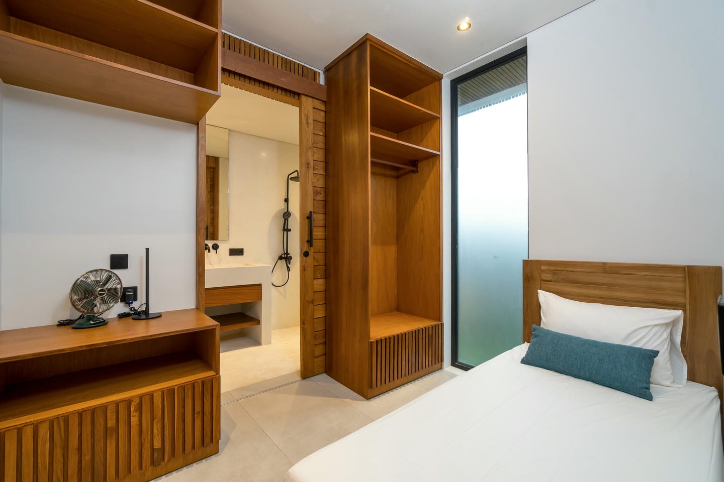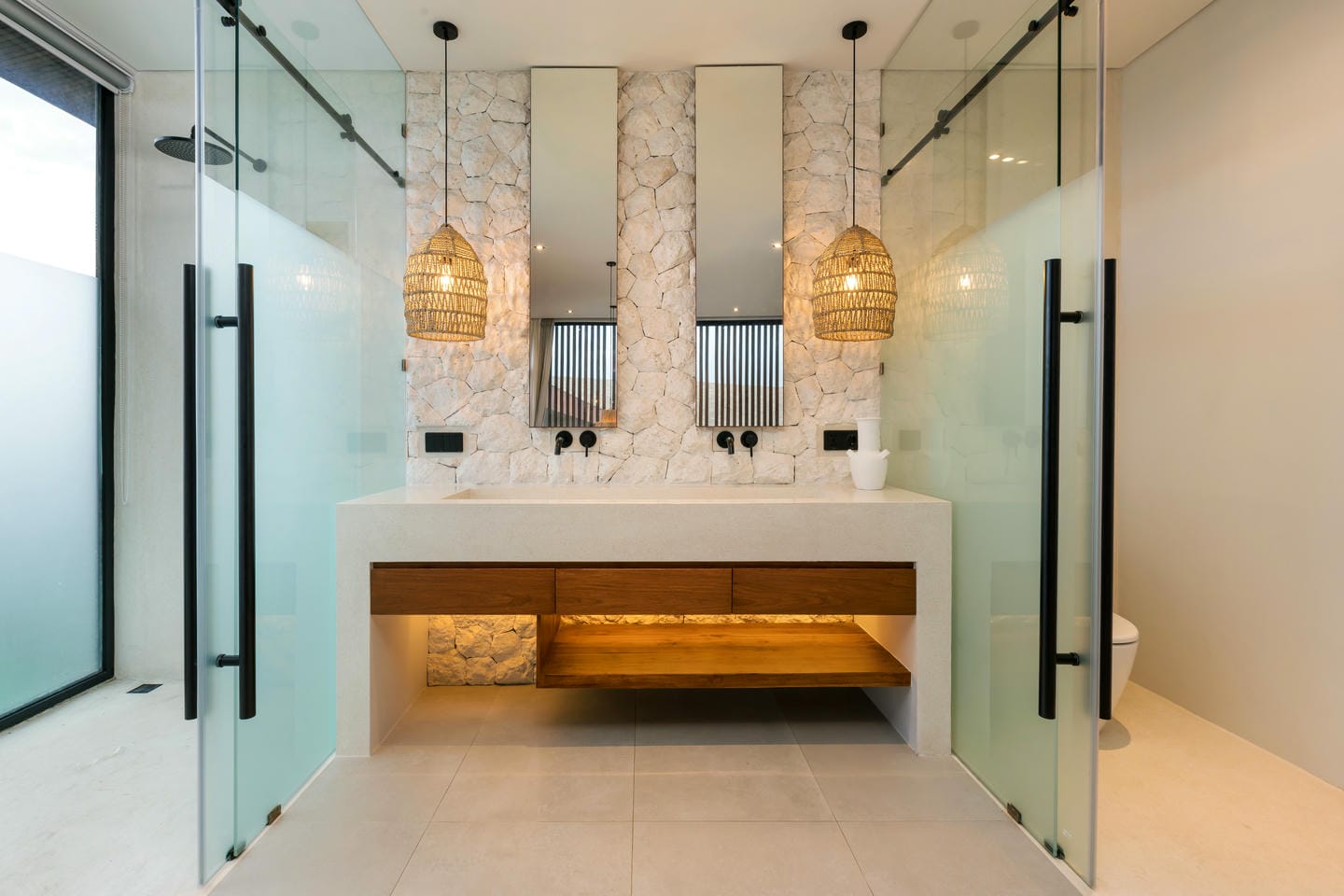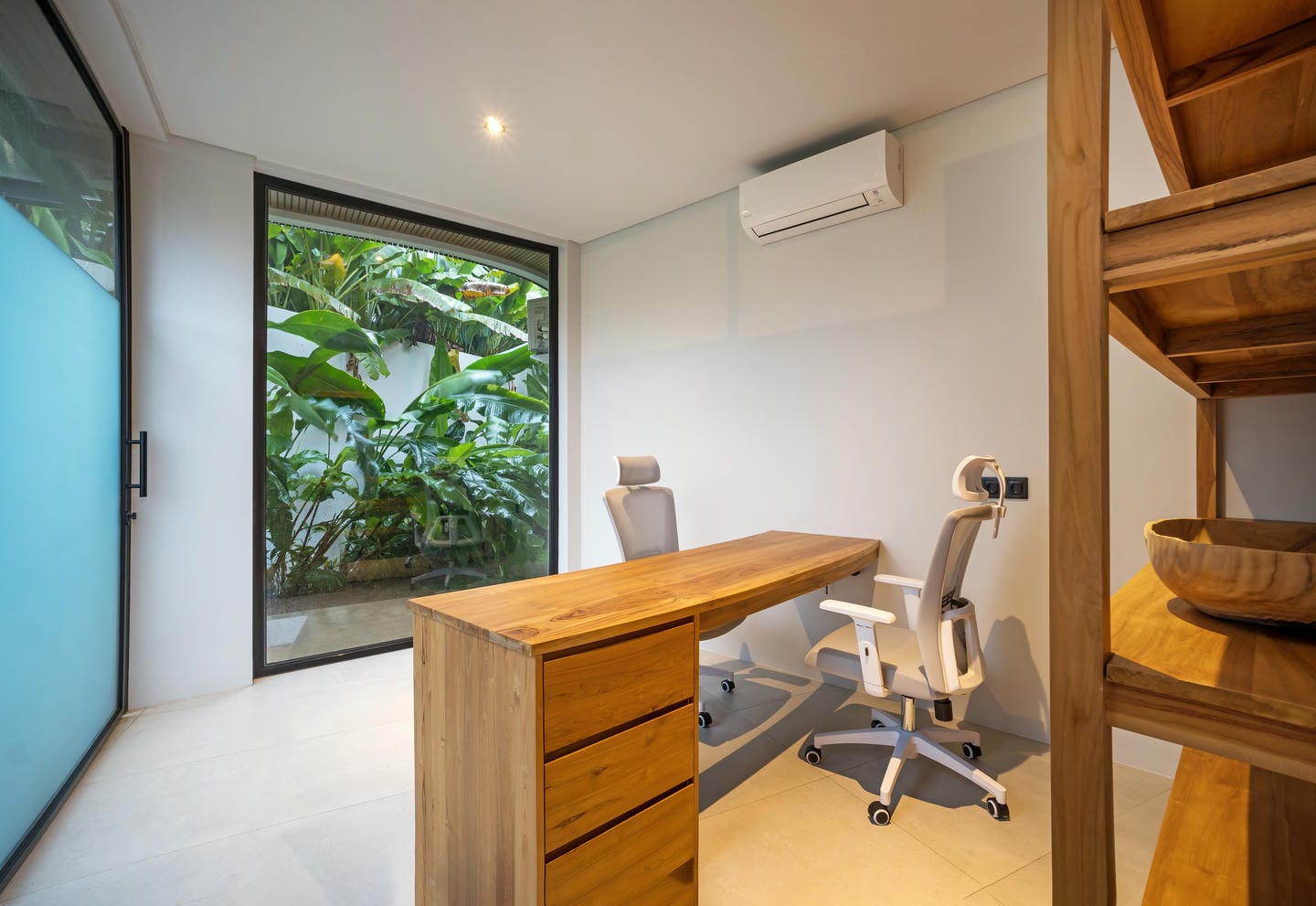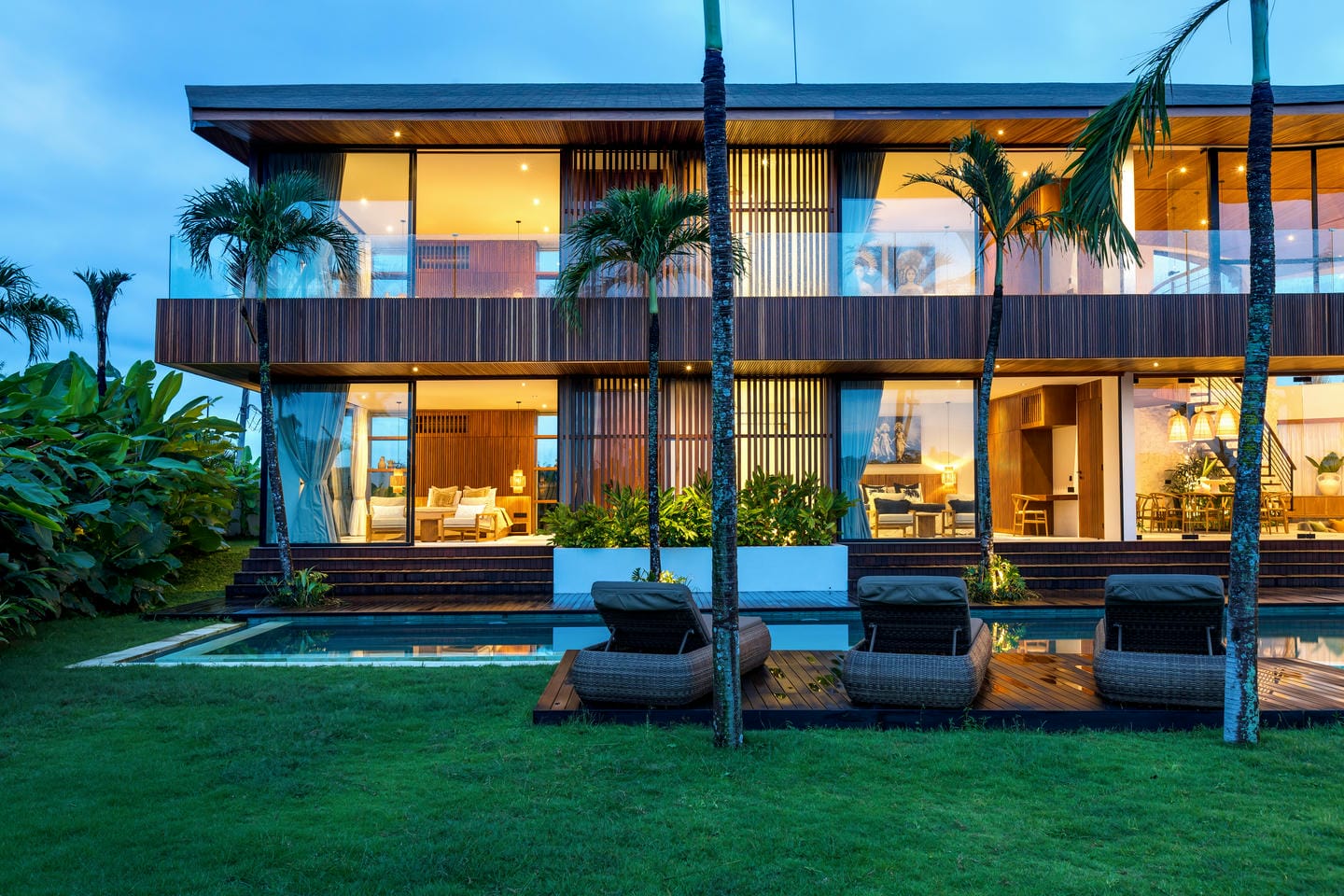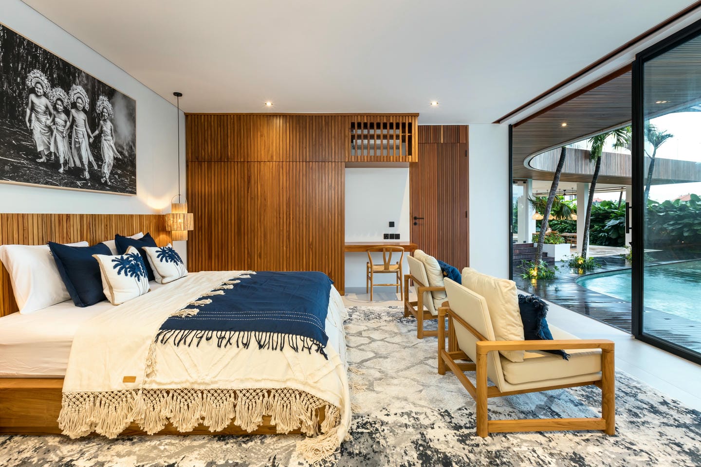 Conçue avec une esthétique moderne-tropicale raffinée, la villa mélange harmonieusement des bois naturels chaleureux, des textures de pierre élégantes et de grandes baies vitrées du sol au plafond. La lumière naturelle inonde les intérieurs, renforçant la sensation d’espace et de sophistication sans effort.