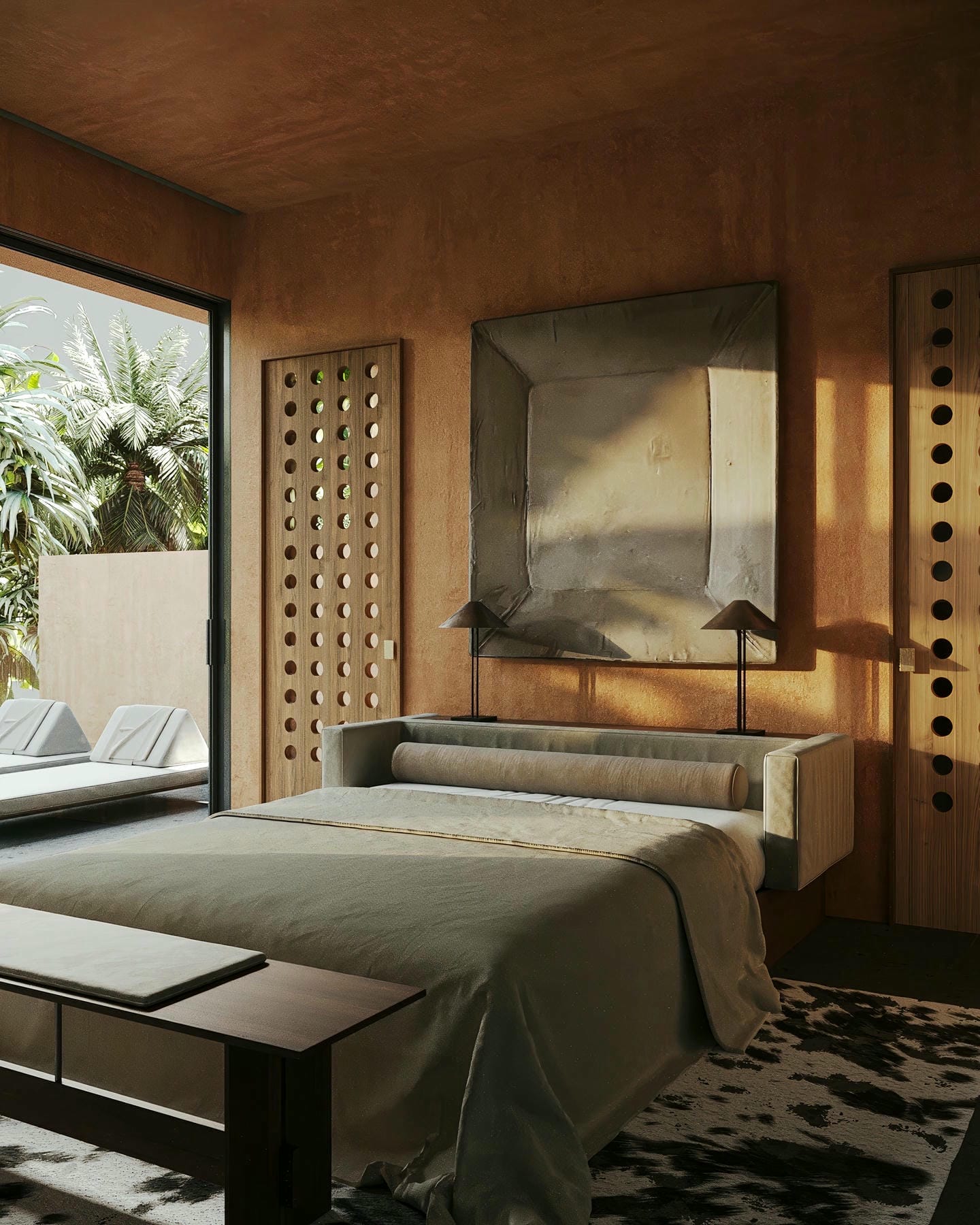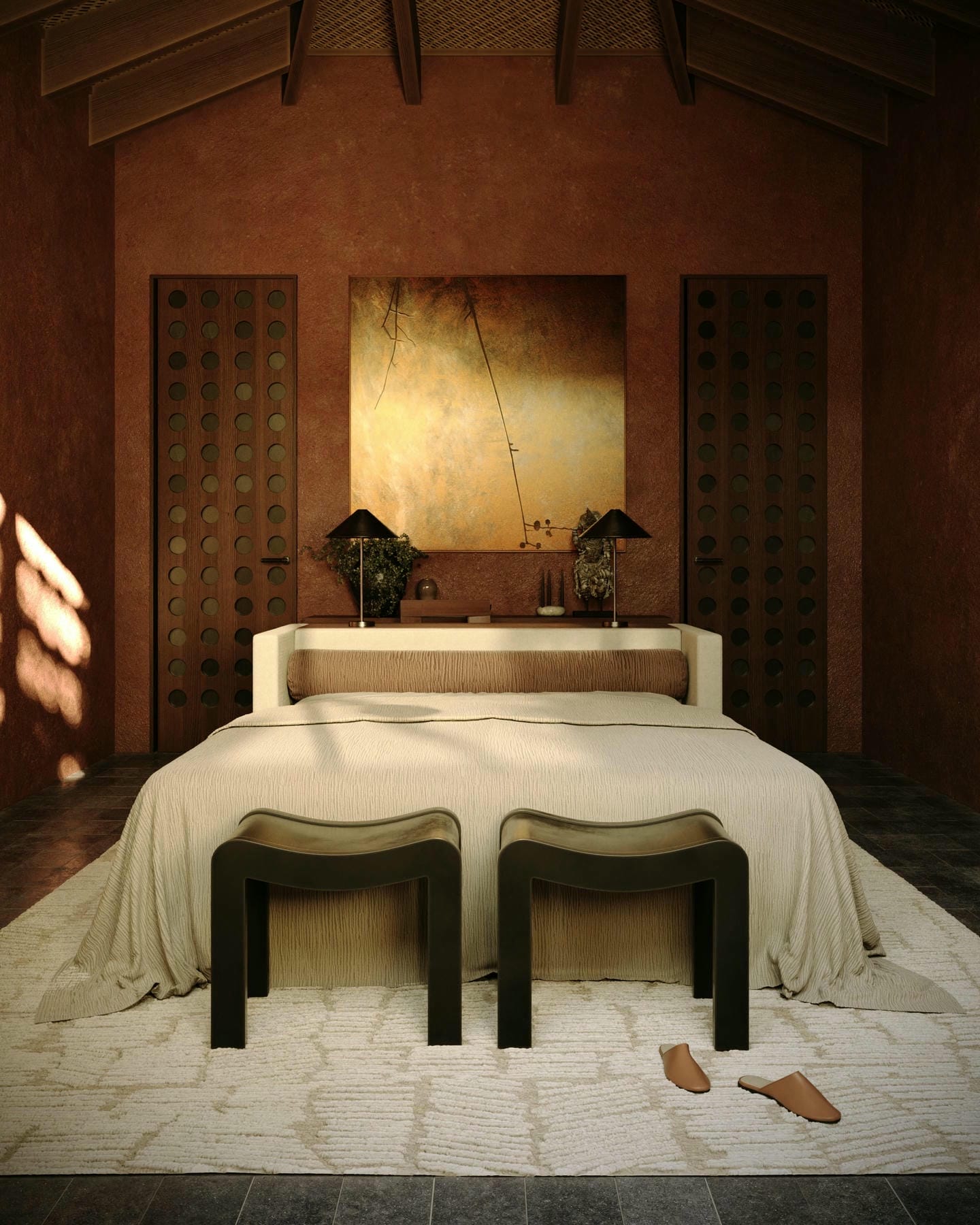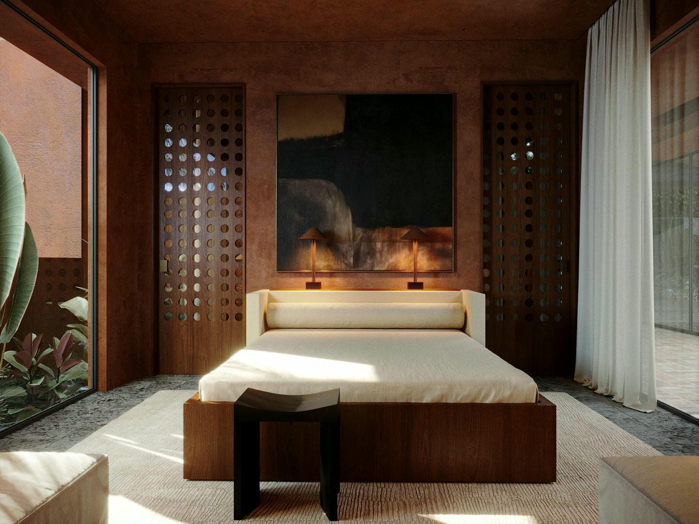 Conçue comme un véritable havre de paix au style raffiné, la villa associe une architecture contemporaine à la chaleur et à l’authenticité de Bali. Les touches de terre cuite, les lignes modernes épurées et la lumière naturelle abondante créent une atmosphère ouverte et sereine, tandis que de larges baies vitrées coulissantes relient harmonieusement les espaces intérieurs au jardin tropical. La villa comprend deux chambres au rez-de-chaussée et deux suites parentales à l’étage, chacune avec terrasse, dressing et salle de bain attenante. Un escalier en colimaçon sculptural apporte une touche d’élégance, et les espaces ouverts de la cuisine, de la salle à manger et du salon offrent une vue sur la piscine et la végétation luxuriante.