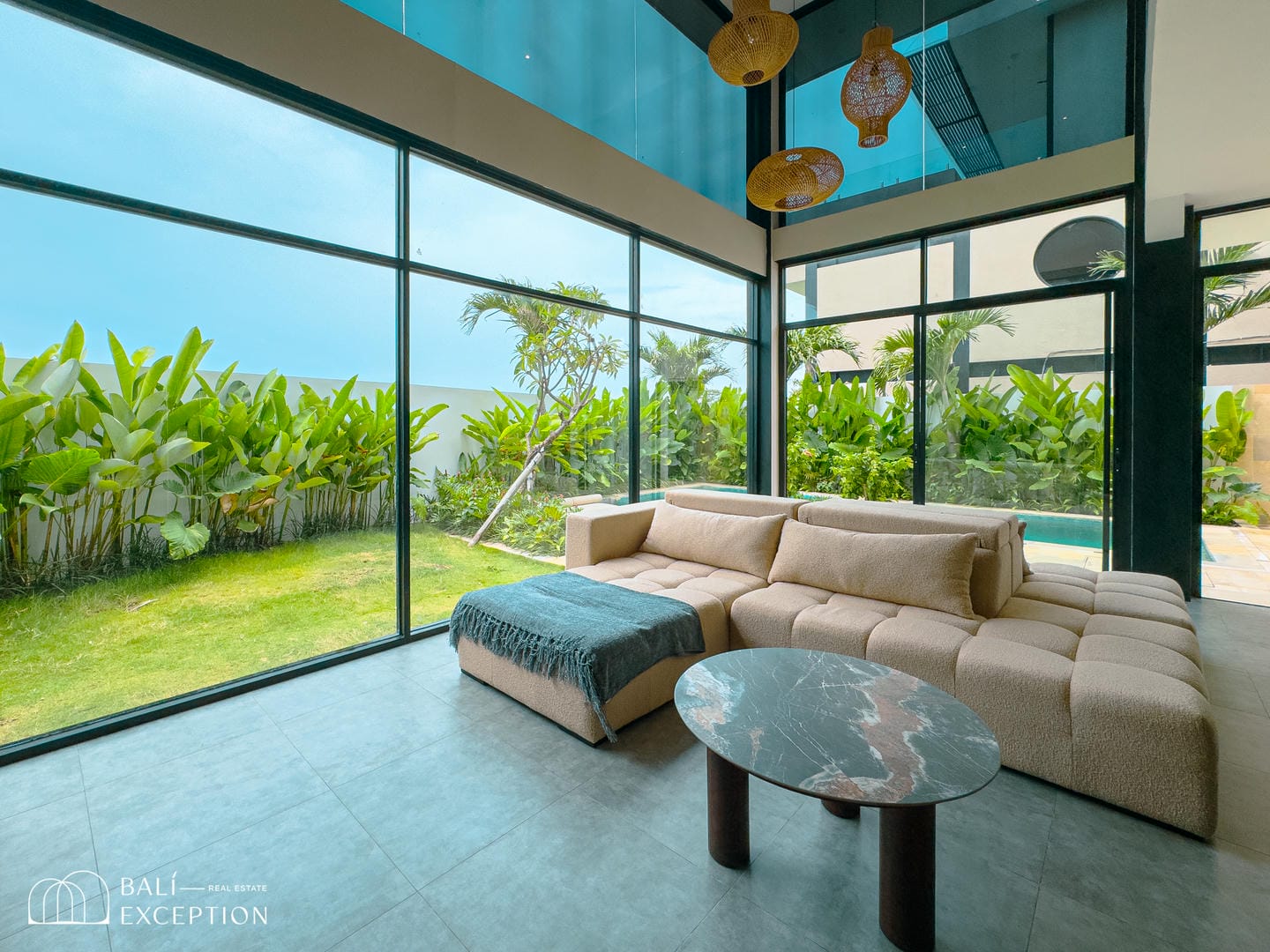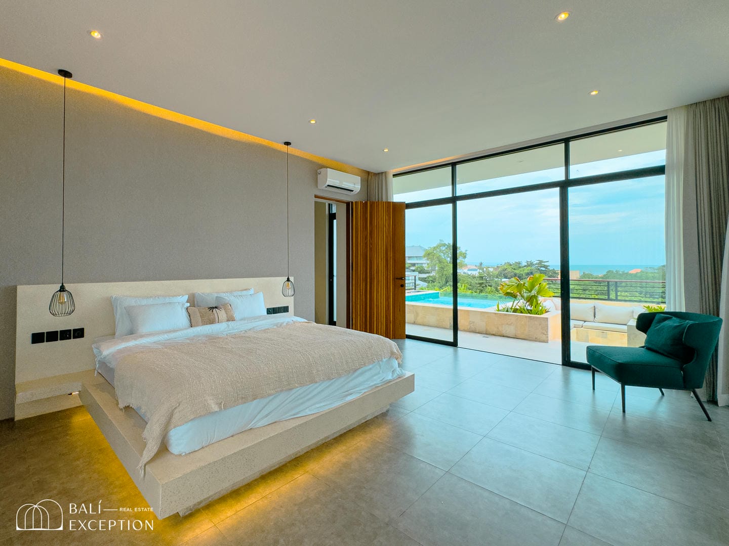 Profitez d’un espace extérieur soigneusement aménagé avec deux piscines privées : une grande piscine principale et une piscine plongeante rafraîchissante. Détendez-vous dans l’espace lounge encastré ou sur les chaises longues confortables, toutes positionnées pour admirer le paysage spectaculaire. Depuis cet écrin de verdure, vous pourrez profiter de vues imprenables sur l’océan, les montagnes majestueuses et la végétation tropicale luxuriante. Un cadre idéal pour se détendre, recevoir et apprécier toute la beauté de Bali.