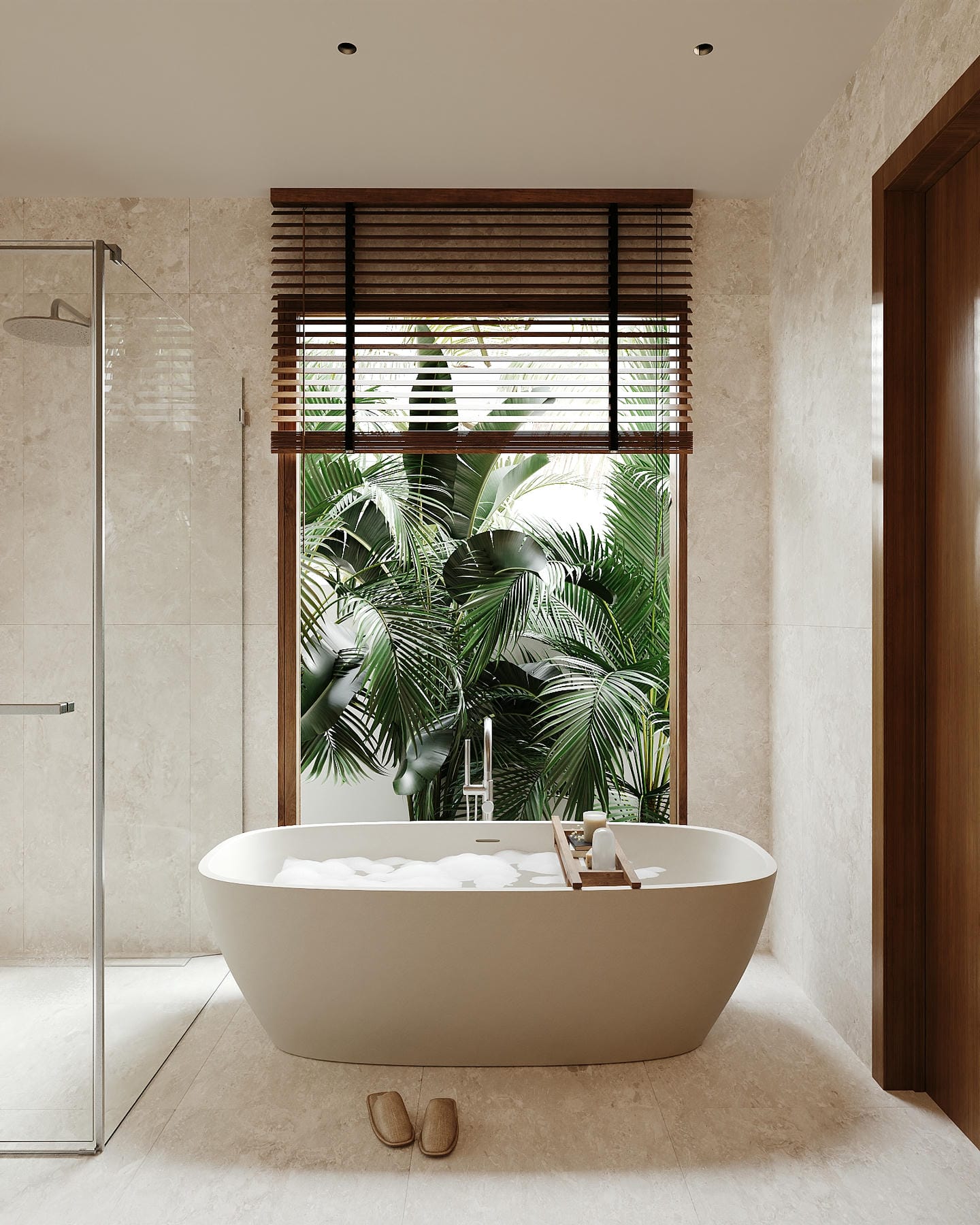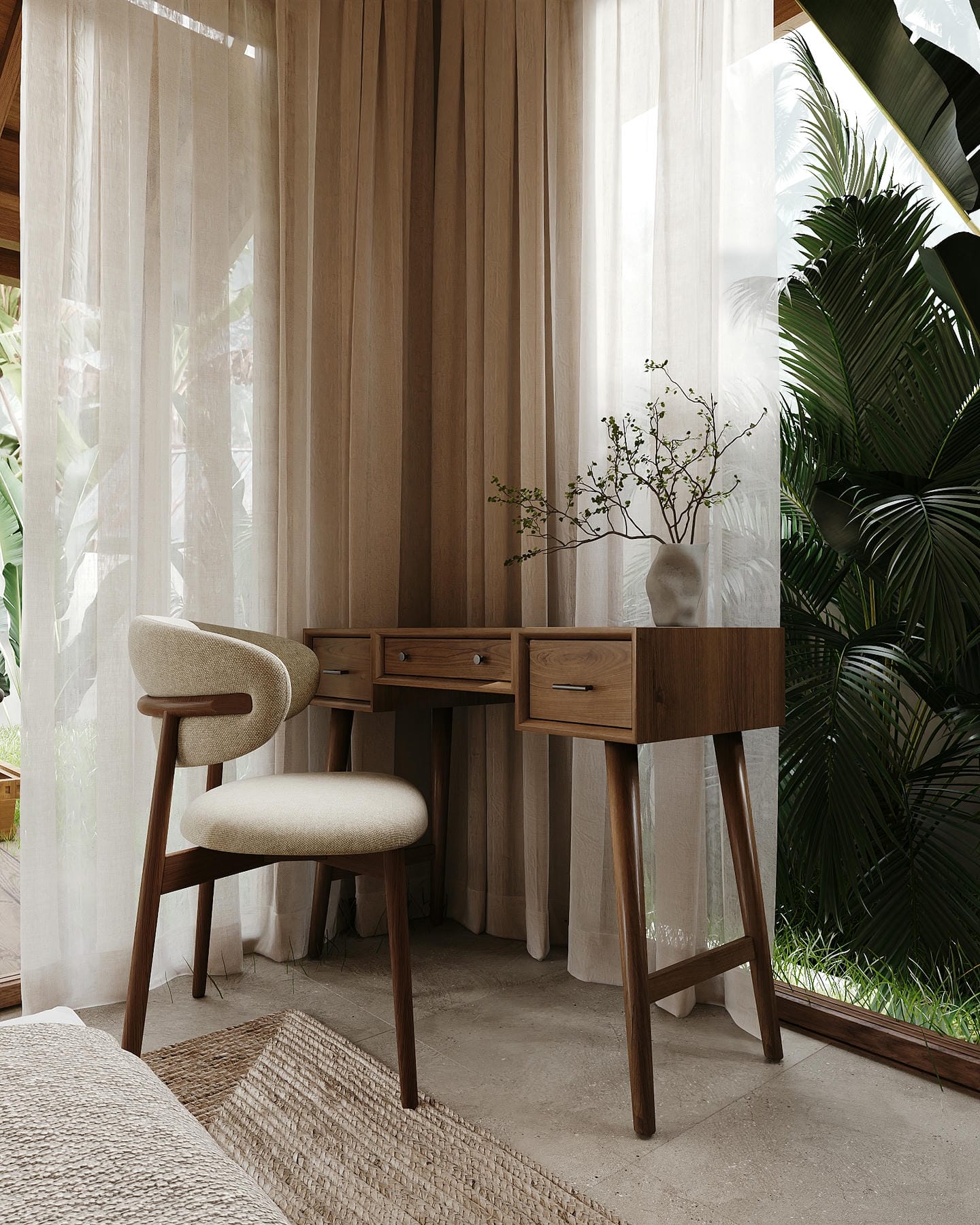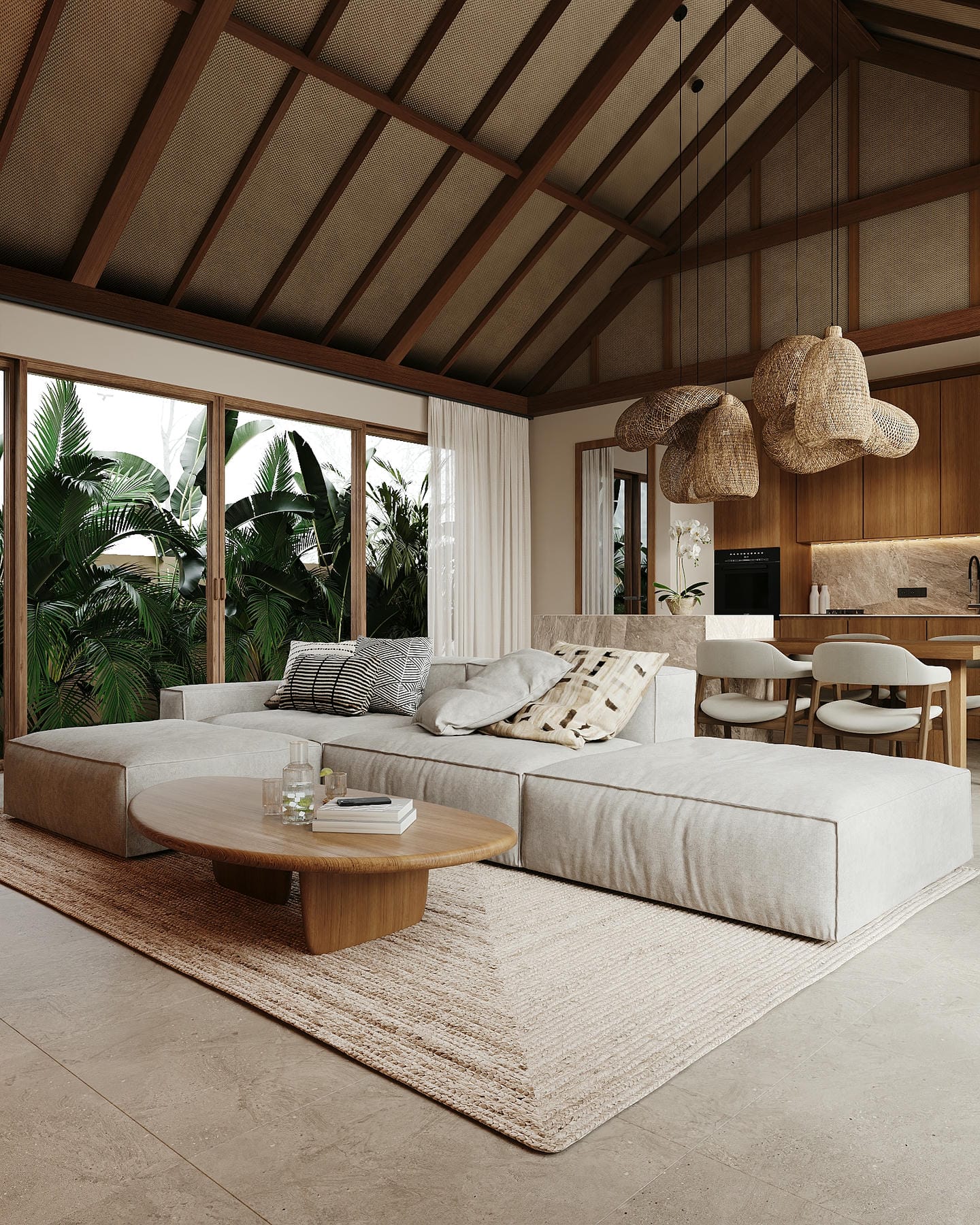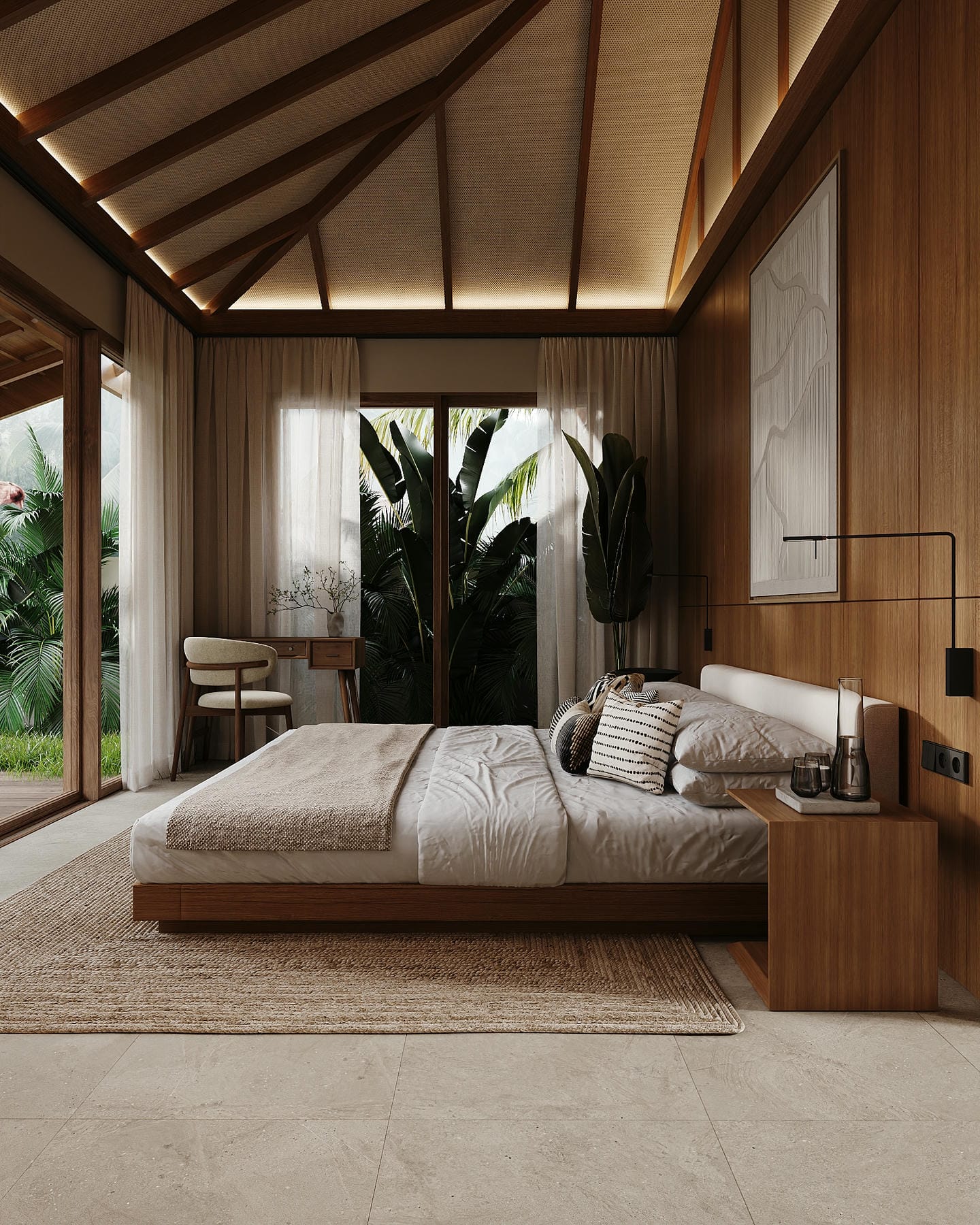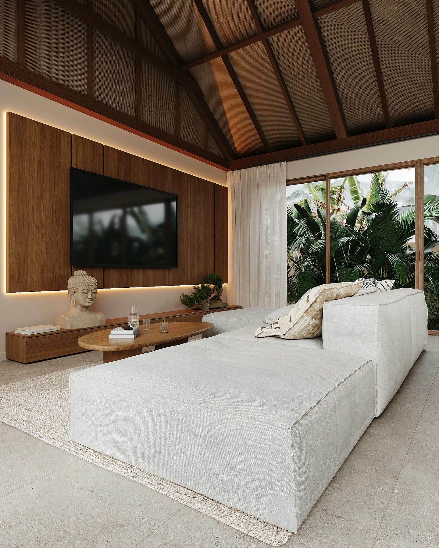 Cette villa de plain-pied propose un agencement spacieux et bien pensé, comprenant une chambre, un séjour lumineux, une cuisine moderne ouverte et une salle de bains privée avec espace dressing dédié. La chambre s’ouvre directement sur un jardin luxuriant et une piscine privée avec vue panoramique, créant une parfaite harmonie entre les espaces intérieurs et extérieurs. Conçue dans un style balinais intemporel avec des finitions haut de gamme et des matériaux naturels, la villa allie élégance raffinée et confort moderne dans un cadre tropical serein.