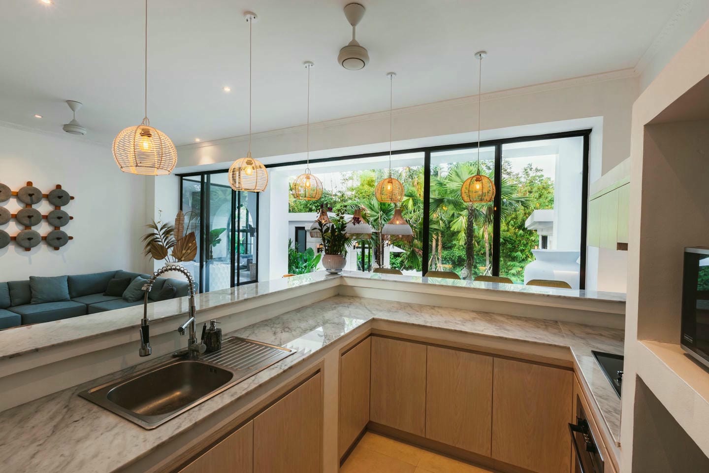 Cette villa présente un design tropical moderne avec de subtiles touches méditerranéennes, caractérisé par des lignes épurées et de belles arches élégantes qui créent une atmosphère chaleureuse et accueillante. Les espaces de vie et de salle à manger en open space sont lumineux et spacieux, parfaitement connectés et sublimés par de grandes baies vitrées qui laissent entrer une abondante lumière naturelle et assurent une transition fluide entre intérieur et extérieur. L’agencement a été soigneusement pensé pour maximiser le confort et la fonctionnalité, avec 4 chambres bien aménagées et 4 salles de bains modernes et élégantes, en faisant un choix idéal pour un cadre de vie confortable.