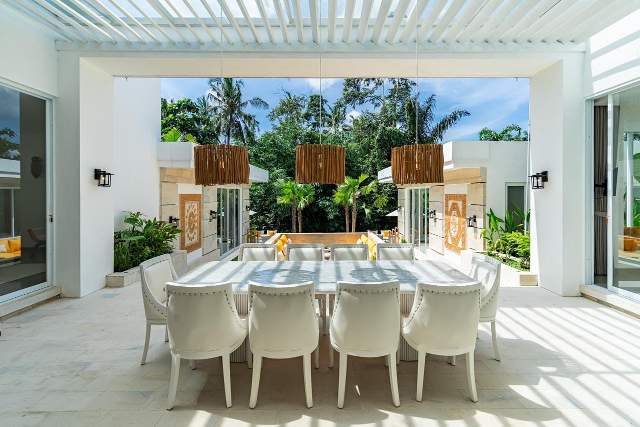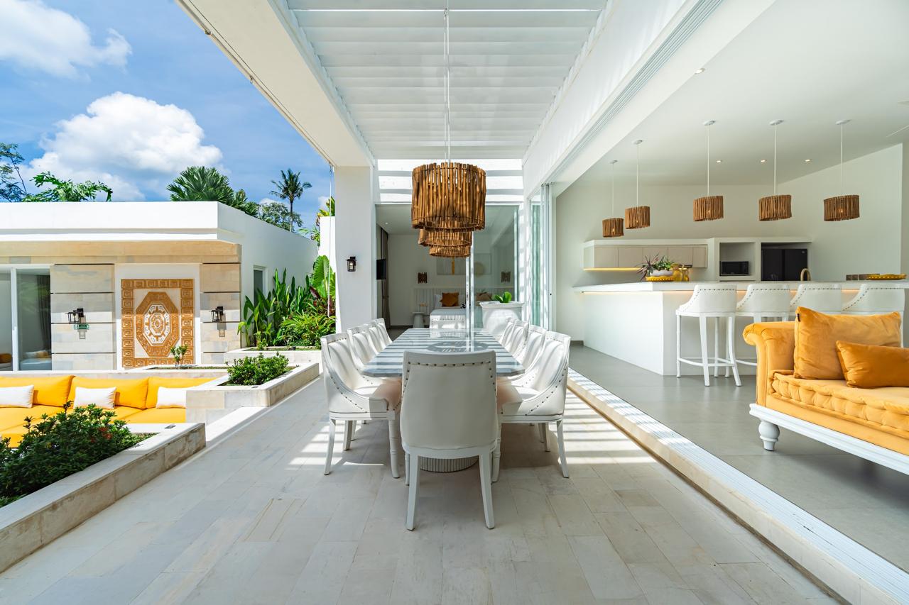 Cette villa incarne un style tropical moderne agrémenté d’une touche balinaise raffinée, alliant lignes contemporaines épurées, matériaux naturels et espaces ouverts qui assurent une transition harmonieuse entre intérieur et extérieur. Elle dispose d’une cuisine entièrement équipée et d’un grand espace repas extérieur, idéal pour recevoir et partager des moments conviviaux. La propriété comprend cinq chambres spacieuses, chacune pensée pour le confort et la sérénité, ainsi que de superbes salles de bains à concept ouvert qui intègrent la nature dans votre quotidien.