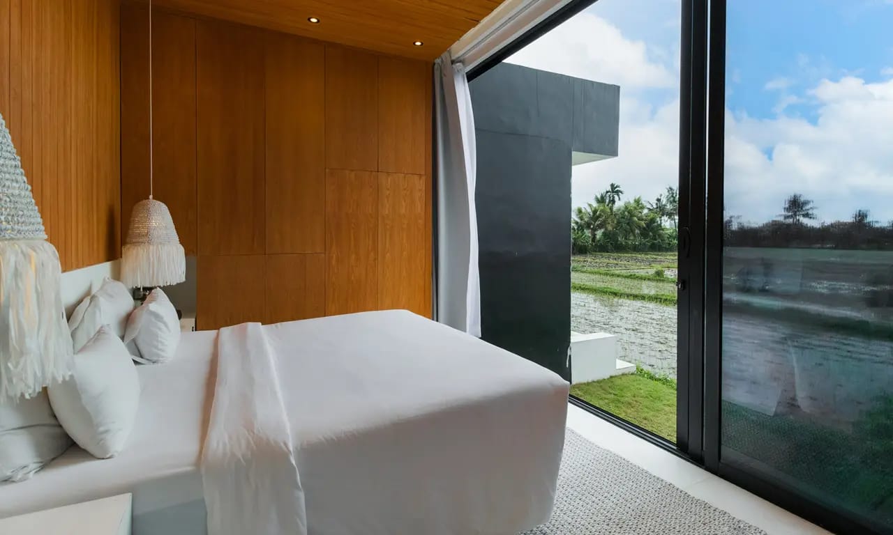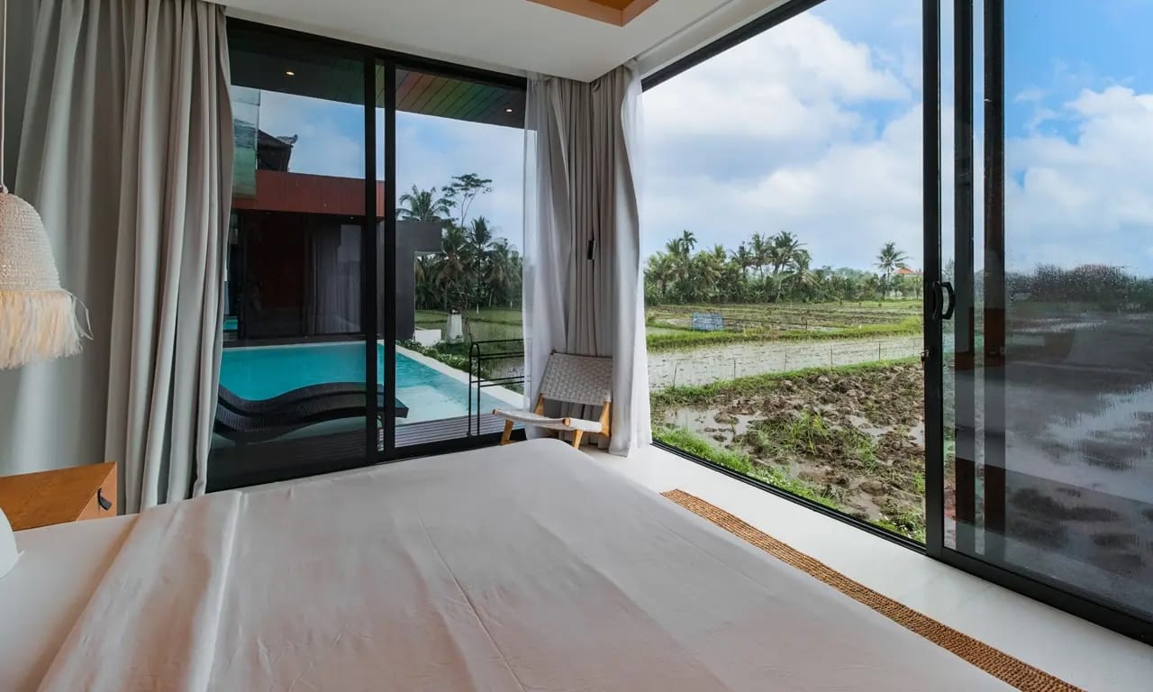 Cette villa entièrement meublée présente un design ouvert et raffiné, fusionnant harmonieusement les espaces intérieurs et extérieurs. La cuisine et la salle à manger extérieures s’ouvrent naturellement sur un vaste salon offrant une vue sur la piscine et les rizières verdoyantes. La villa dispose de trois chambres élégamment aménagées, chacune dotée de grandes baies vitrées coulissantes donnant sur des vues dégagées sur les rizières. Chaque chambre comprend une salle de bains attenante luxueuse aux finitions tropicales et aux plafonds ouverts, permettant à la lumière naturelle et à la ventilation de renforcer la sensation de sérénité.