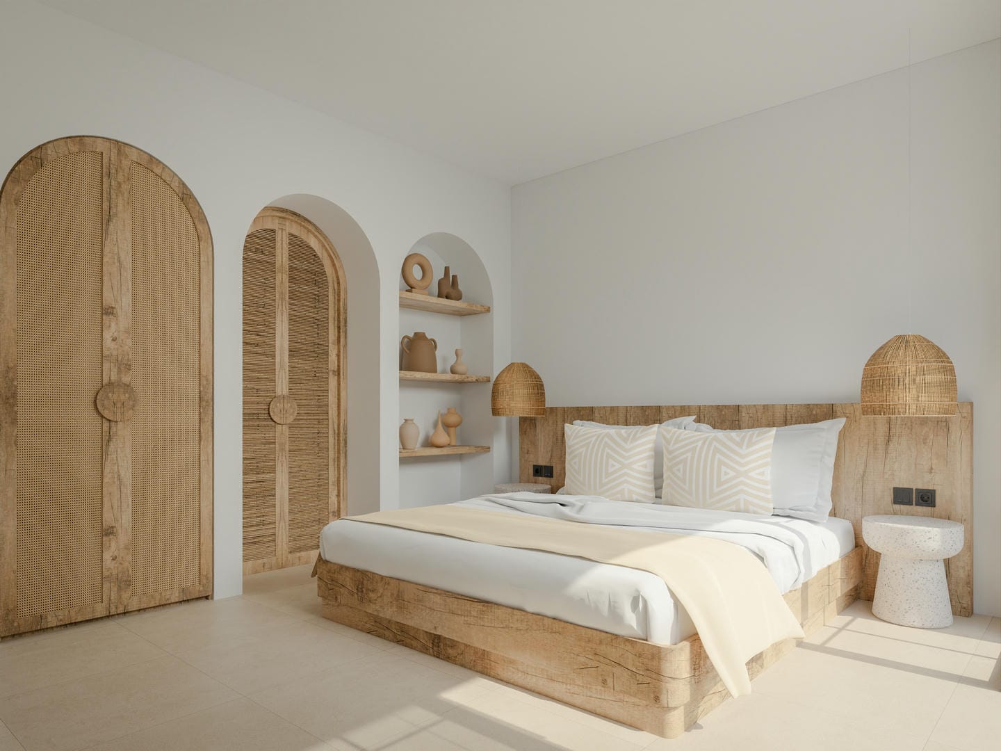 Cette villa comprend deux chambres spacieuses, chacune avec une salle de bain attenante élégante, ainsi qu’une salle d’eau supplémentaire pour les invités. Les intérieurs sont entièrement meublés avec des pièces modernes et raffinées, offrant un parfait équilibre entre confort et style. Le salon en contrebas crée un espace intime et chaleureux pour se détendre ou recevoir, s’ouvrant harmonieusement sur la salle à manger et la cuisine entièrement équipée.