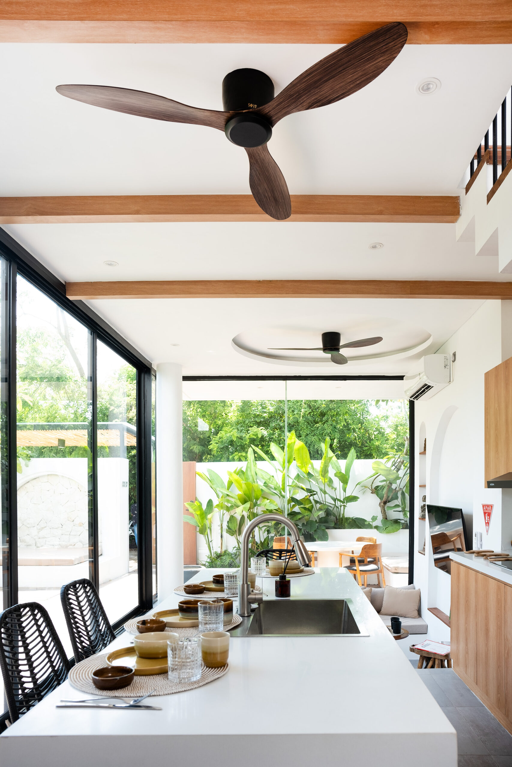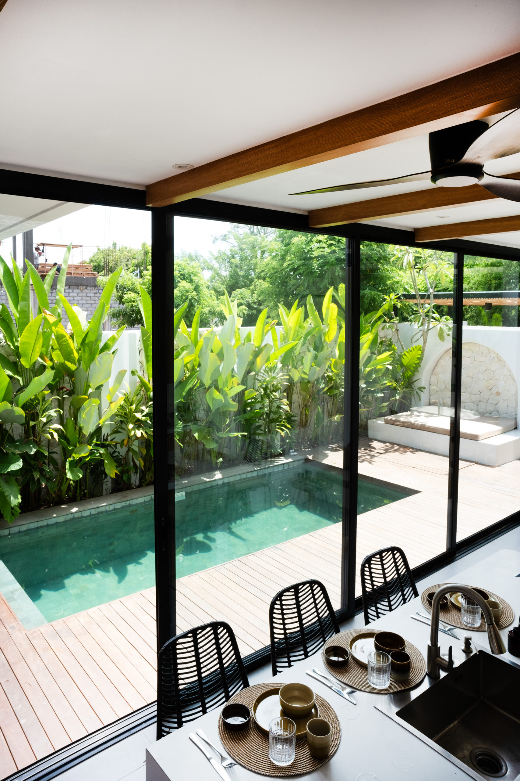 L’intérieur entièrement meublé présente un design décloisonné et homogène, comprenant une cuisine entièrement équipée adjacente à un spacieux salon en contrebas. 3 chambres exquises et 3 salles de bains offrent confort et intimité, ornées de meubles modernes, établissant un équilibre harmonieux entre luxe et esthétique tropicale moderne. Aventurez-vous à l’extérieur dans un paradis privé : une piscine entourée d’un jardin luxuriant, vous invitant à vous détendre en toute sérénité. Montez sur le toit-terrasse, un perchoir privilégié pour admirer les couchers de soleil fascinants de Bali, créant ainsi une toile de moments inoubliables.