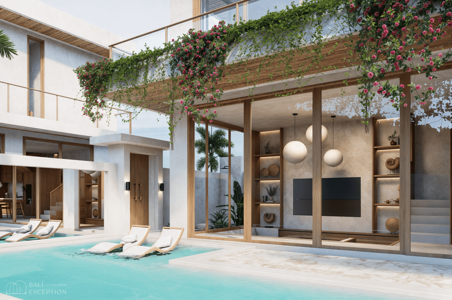 À l’extérieur, profitez de votre piscine privée, entourée d’un espace lounge et d’un coin repas sur la terrasse, idéal pour des couchers de soleil ou des dîners intimistes sous les étoiles. Un garage assure un stationnement sécurisé pour voiture et motos, ajoutant une touche de praticité à ce refuge luxueux.