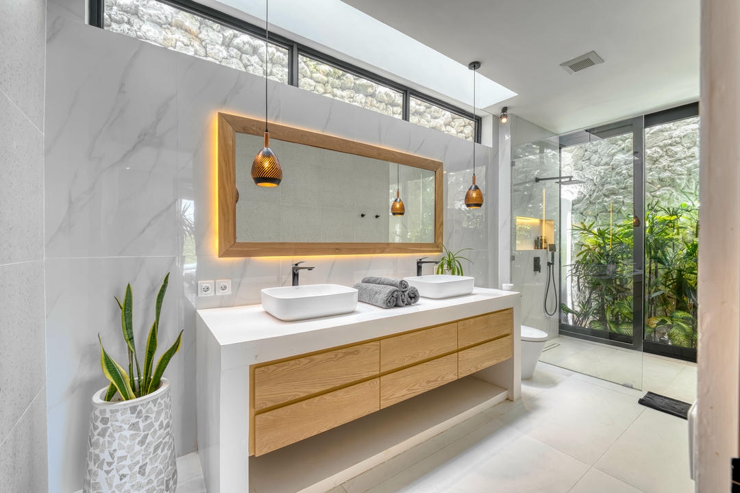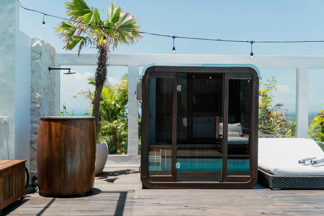 À l’extérieur, profitez d’une piscine privée avec sauna, d’un espace lounge chaleureux et d’un espace barbecue, parfaits pour se détendre ou recevoir dans un cadre tropical.