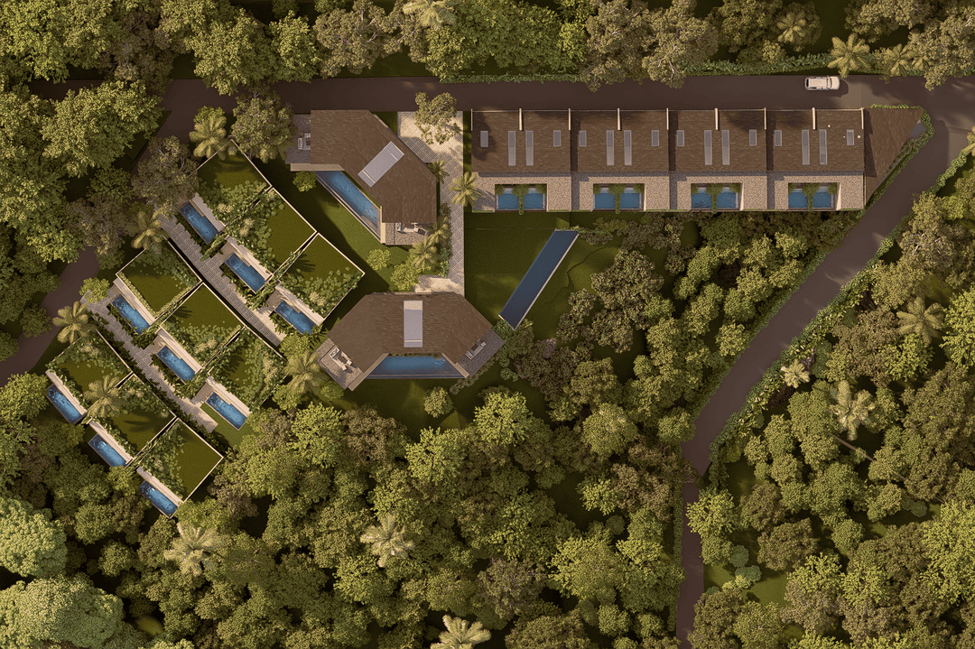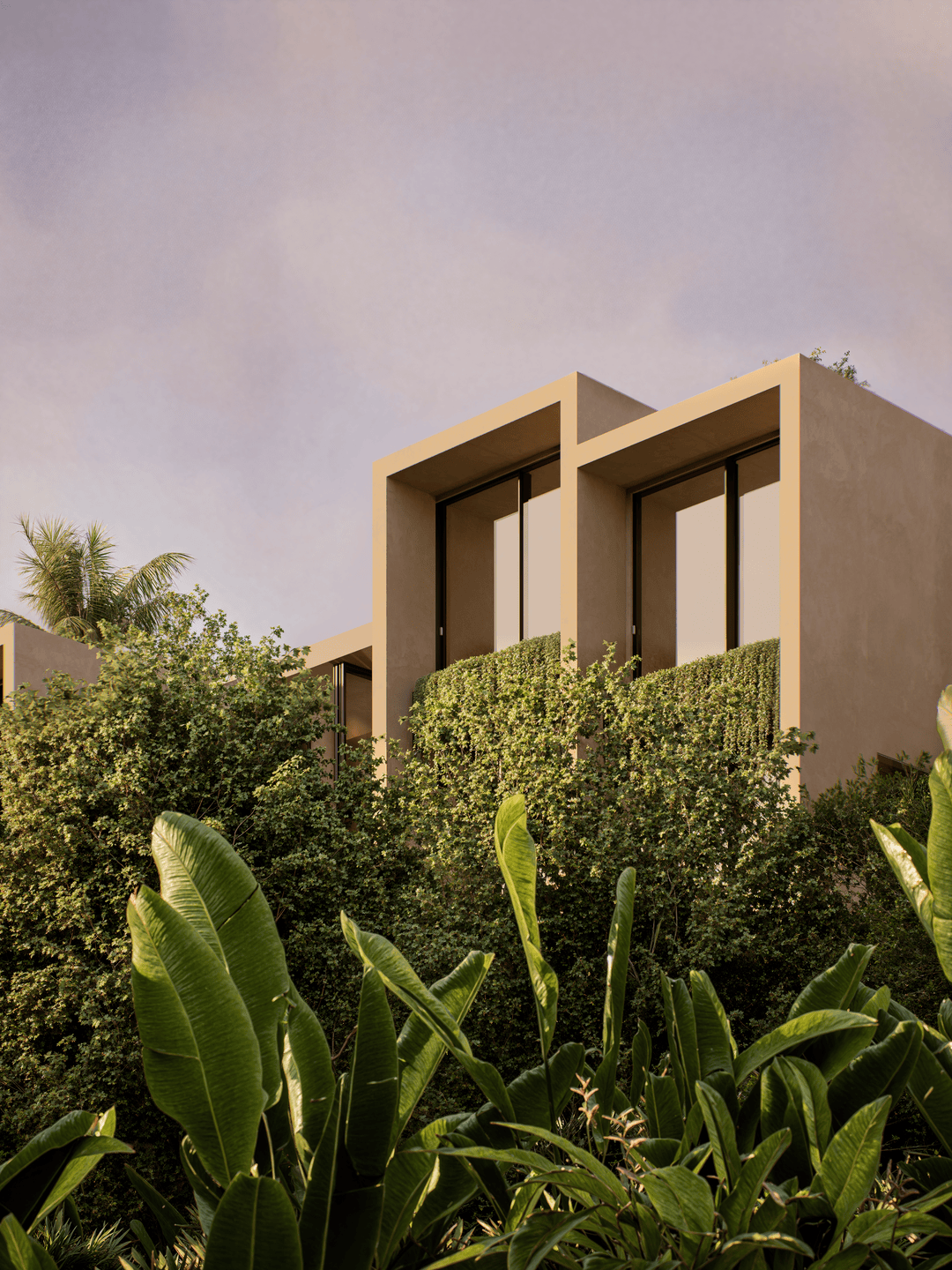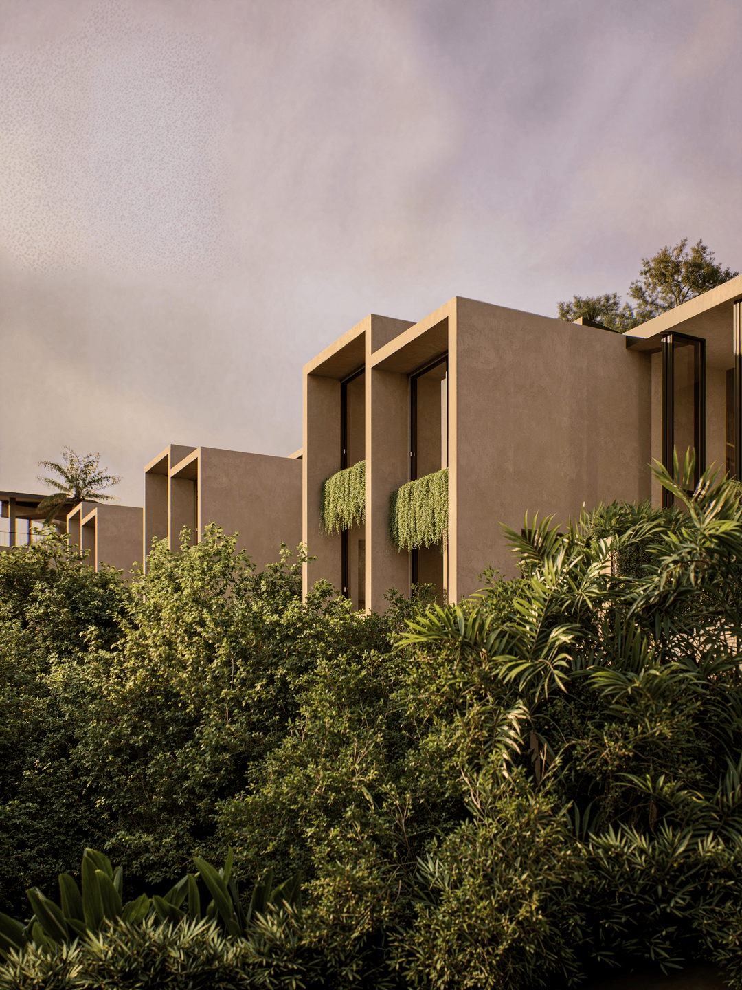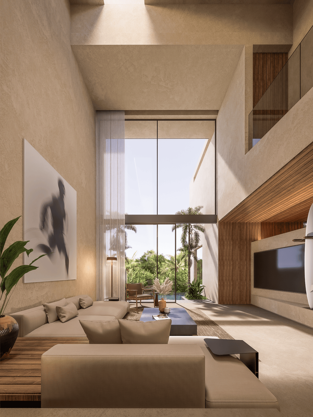 Depuis le deuxième étage, les fenêtres à double vitrage offrent une vue sereine sur la jungle luxuriante, créant une atmosphère paisible idéale pour vivre et travailler.