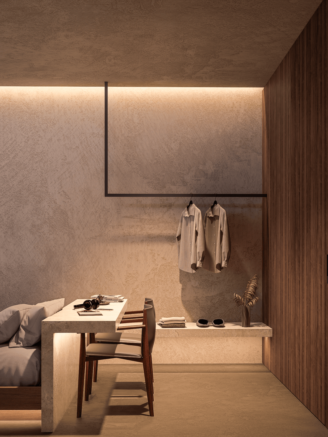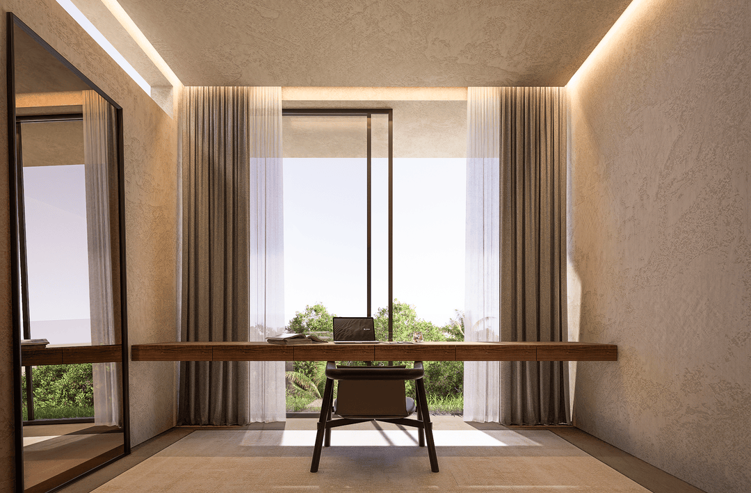 Cette villa sur plan, sur deux niveaux, comprend deux chambres avec salles de bains privatives, un salon fermé, un espace de travail dédié et une cuisine moderne et entièrement équipée, alliant confort et design contemporain.