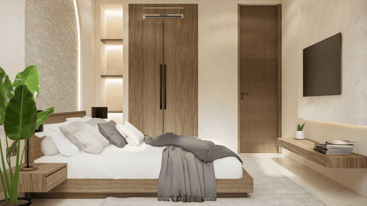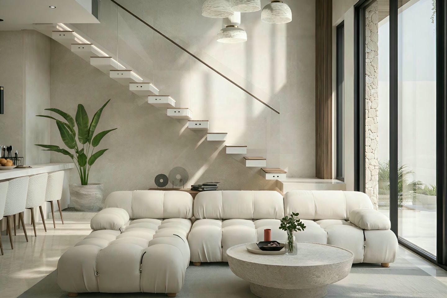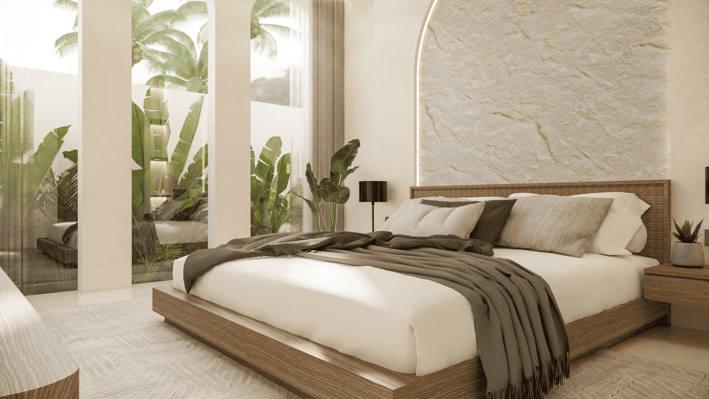 La villa dispose de deux chambres bien aménagées, chacune avec sa propre salle de bain attenante, garantissant confort et intimité à tous les occupants. L’espace intérieur est entièrement meublé, du salon avec ses assises confortables à la cuisine élégante. Le design ouvert et les grandes fenêtres laissent entrer la lumière naturelle, créant une atmosphère aérée et accueillante.