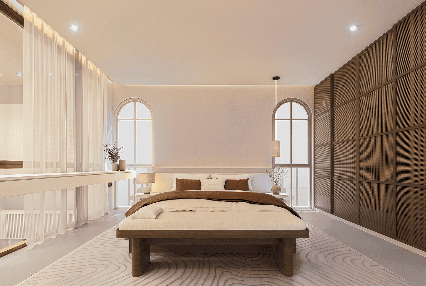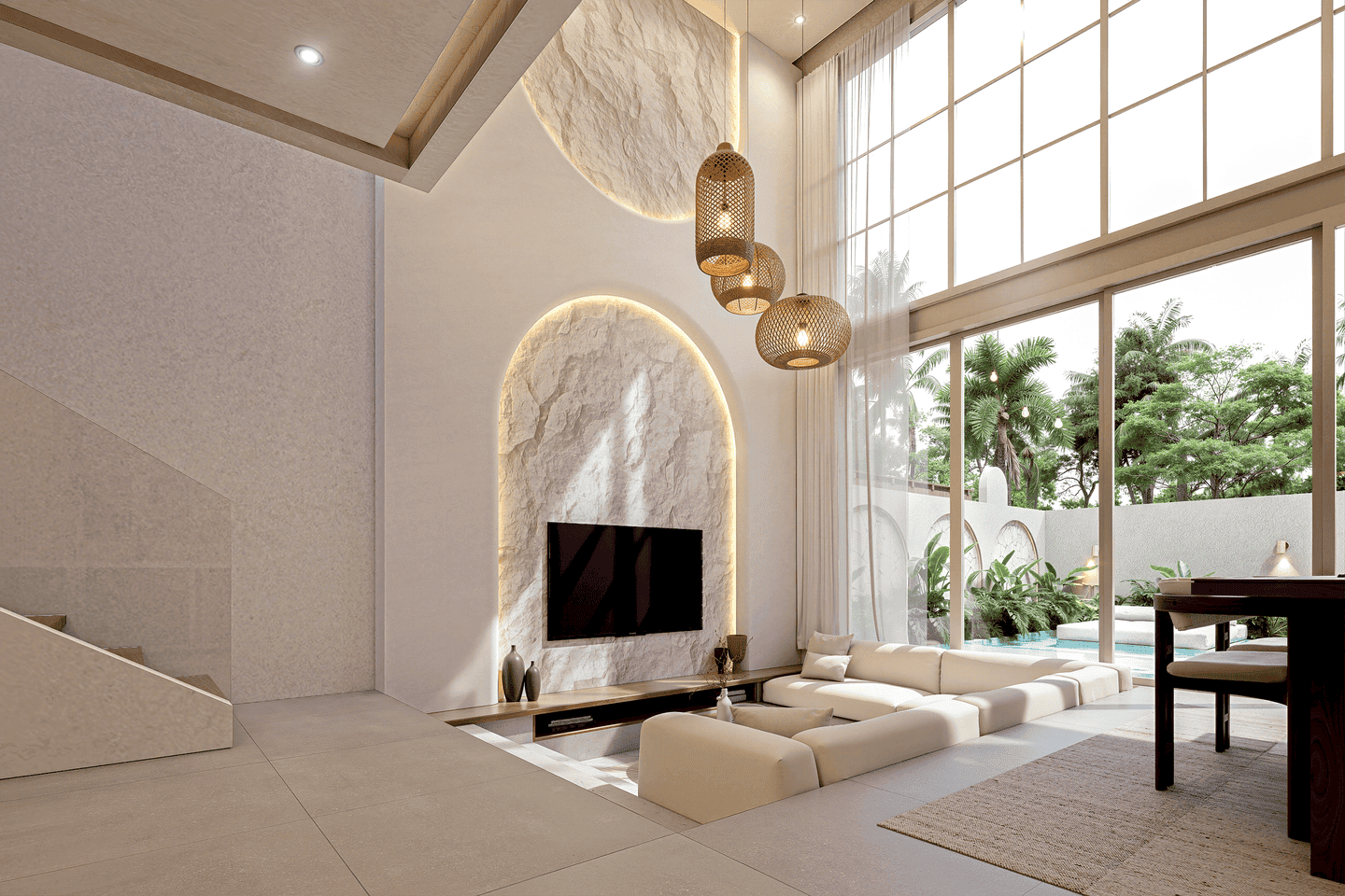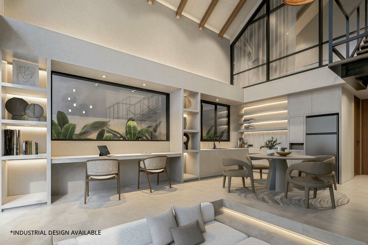 Conçue avec une esthétique inspirée de la Méditerranée, cette villa au concept ouvert présente de hauts plafonds et de grandes fenêtres qui laissent entrer une abondante lumière naturelle, créant une atmosphère lumineuse et aérée. Un élégant salon en contrebas apporte une touche architecturale distinctive et un espace chaleureux pour se détendre, tandis que le salon s’ouvre harmonieusement sur la salle à manger et la cuisine, rendant l’agencement idéal aussi bien pour la vie quotidienne que pour recevoir. Des textures chaleureuses, un éclairage doux et des matériaux naturels subliment l’espace et créent une ambiance accueillante et élégante. Cette villa propose également une option de design alternatif dans un style industriel pour ceux qui préfèrent un caractère plus moderne et urbain. La propriété dispose de 2 chambres et 2 salles de bains, dont une chambre principale qui allie confort et fonctionnalité avec un grand lit confortable, un espace lounge intégré et un coin bureau pratique. Des placards intégrés et de larges baies vitrées offrent une grande luminosité naturelle ainsi qu’un espace de rangement optimisé.