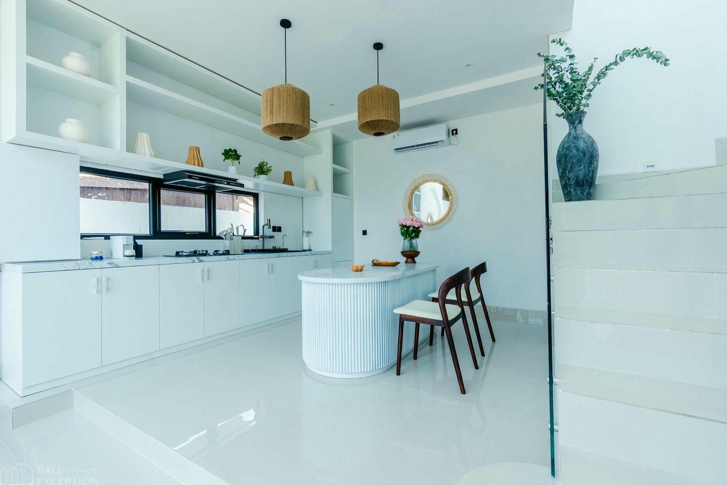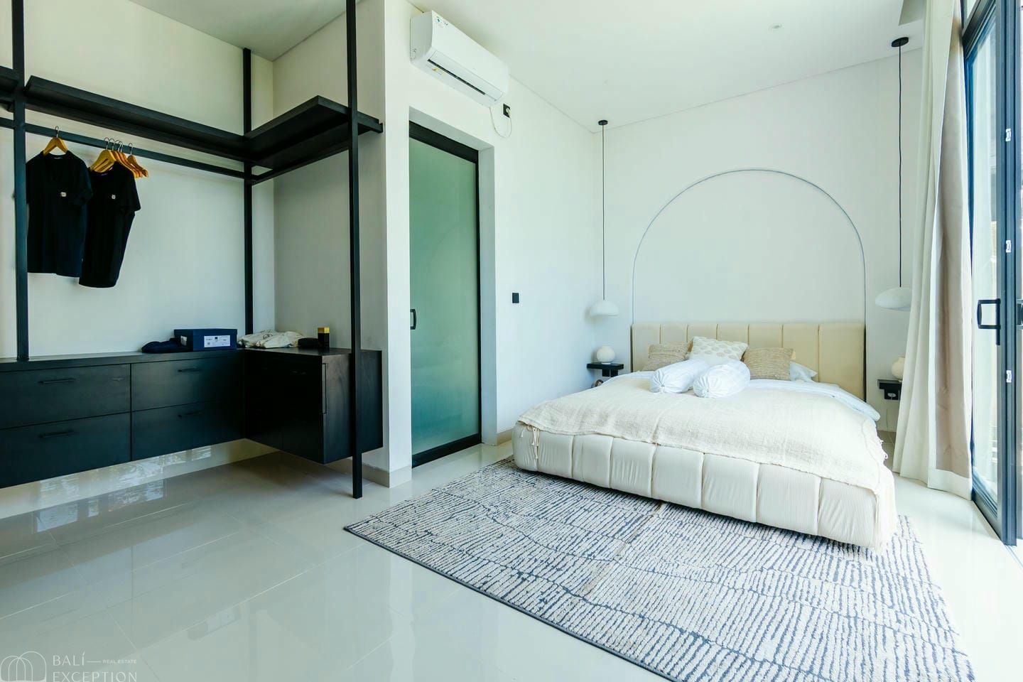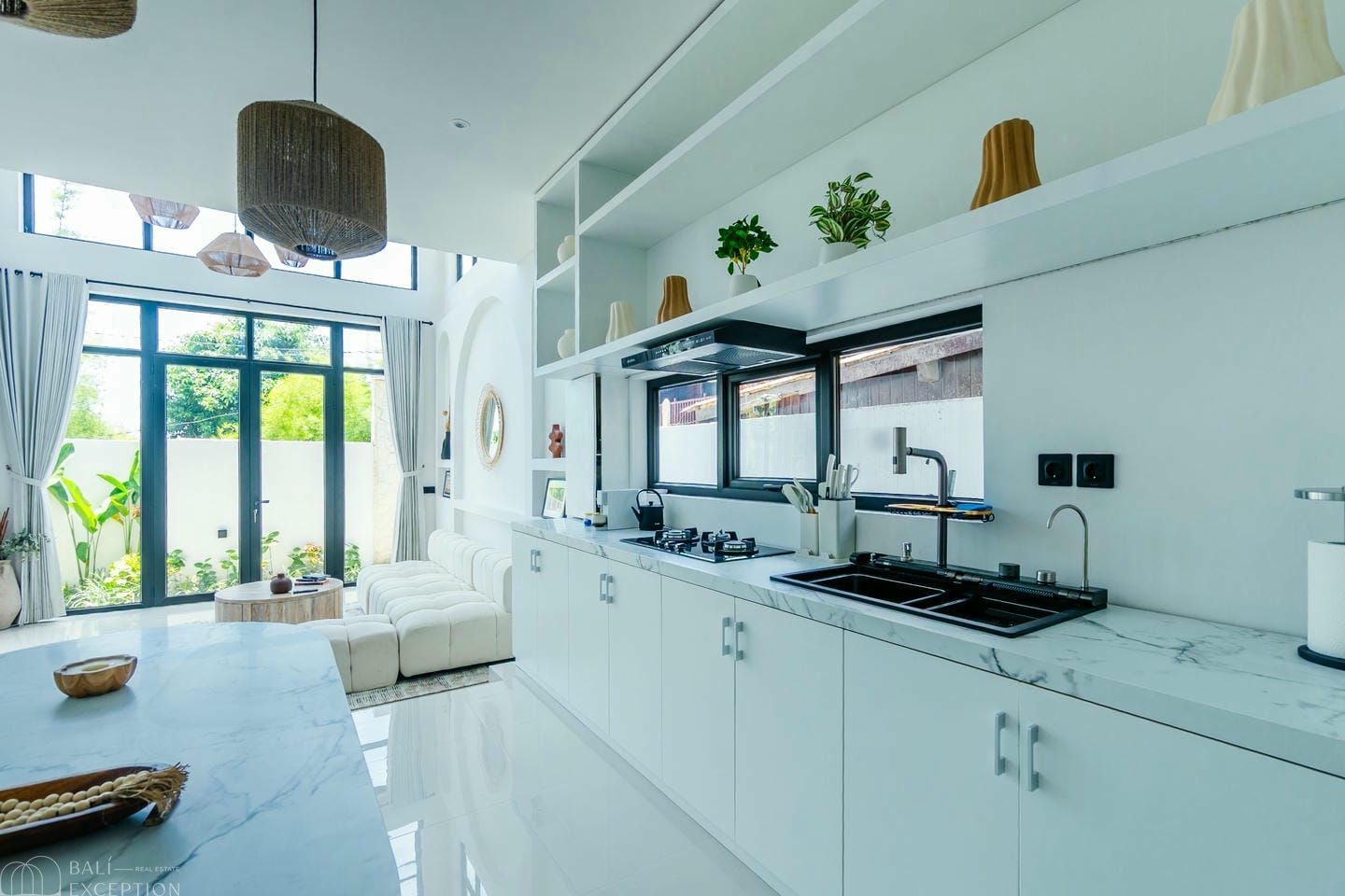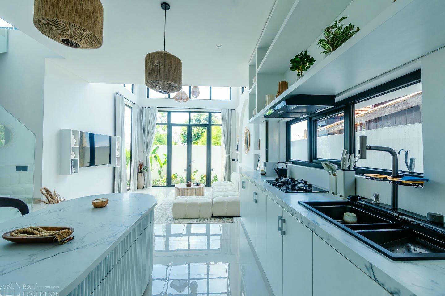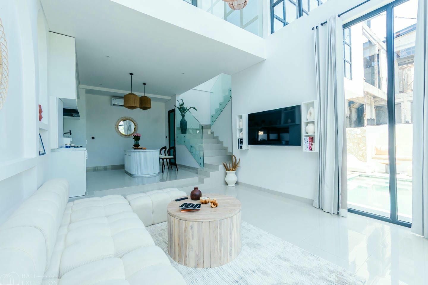 Cette villa magnifiquement conçue présente une esthétique tropicale moderne avec des lignes épurées, de hauts plafonds et une abondance de lumière naturelle, créant une atmosphère lumineuse et aérée. L’espace de vie ouvert relie harmonieusement le salon, la salle à manger et la cuisine entièrement équipée, avec de grandes baies vitrées qui ouvrent sur l’extérieur et donnent un accès direct à une piscine privée et un jardin — idéal pour se détendre ou recevoir. Aménagé avec des tons neutres doux et des finitions élégantes, l’espace dégage une sensation de calme et de sophistication.