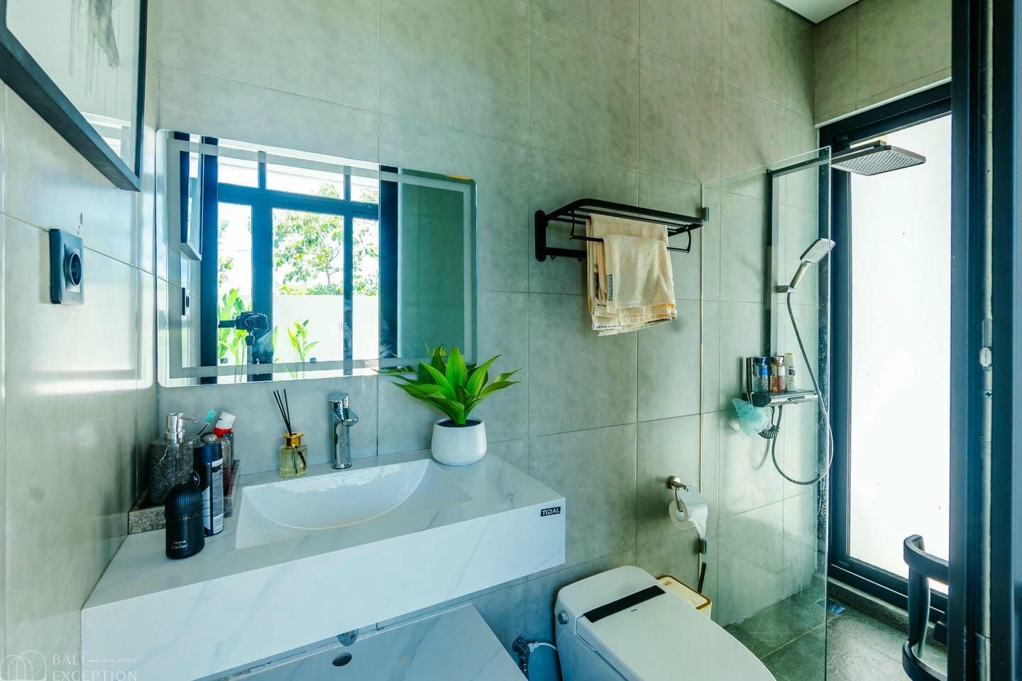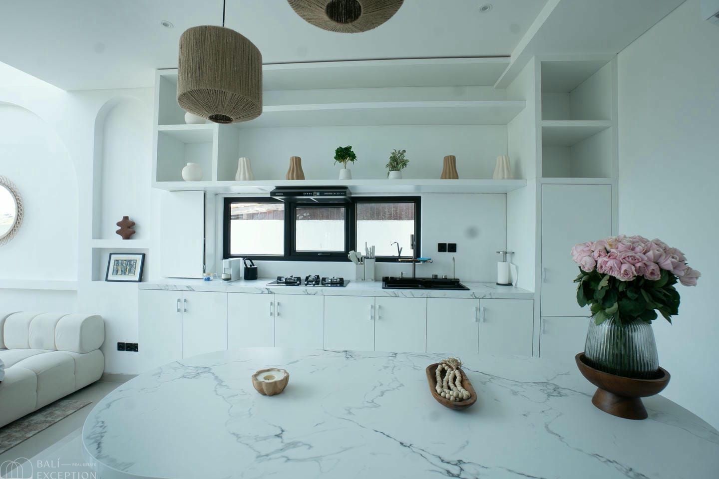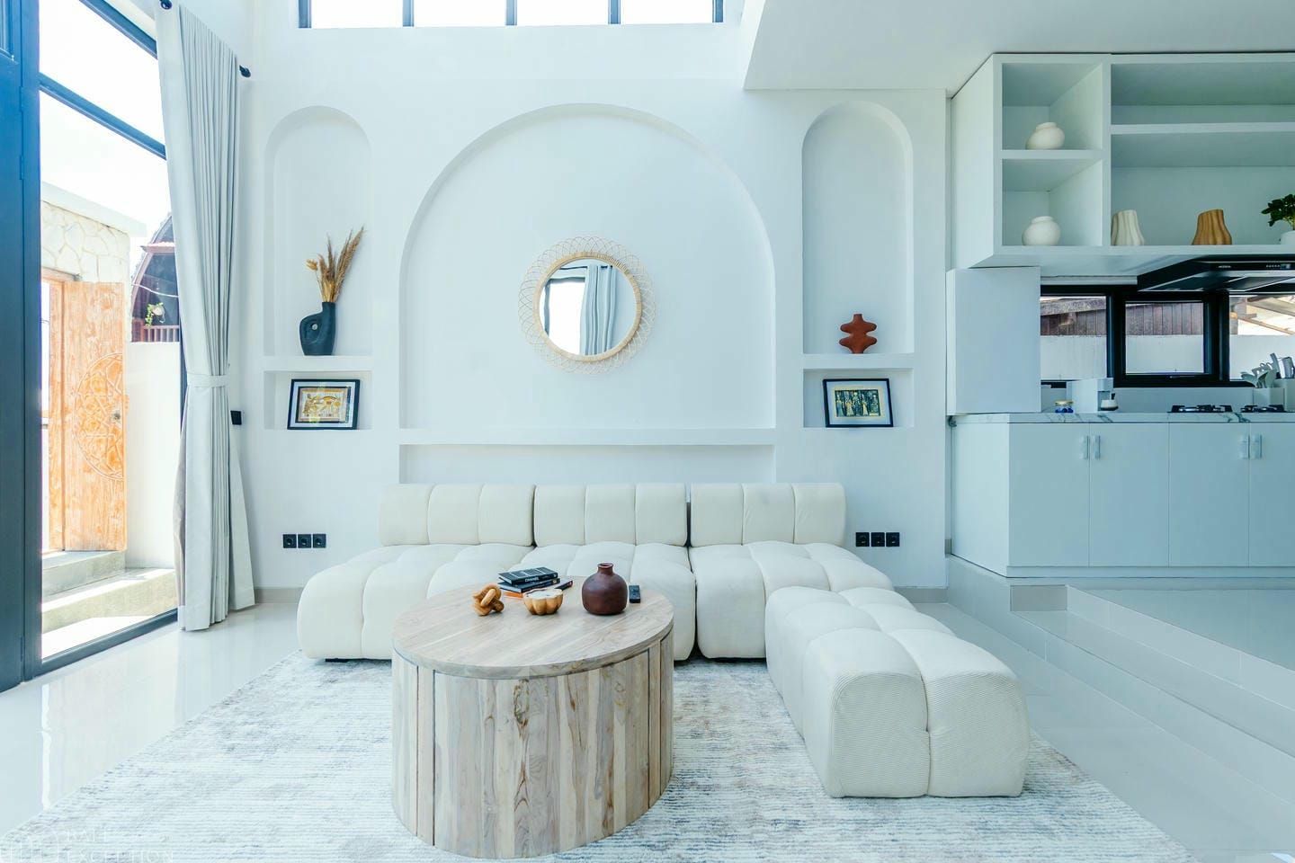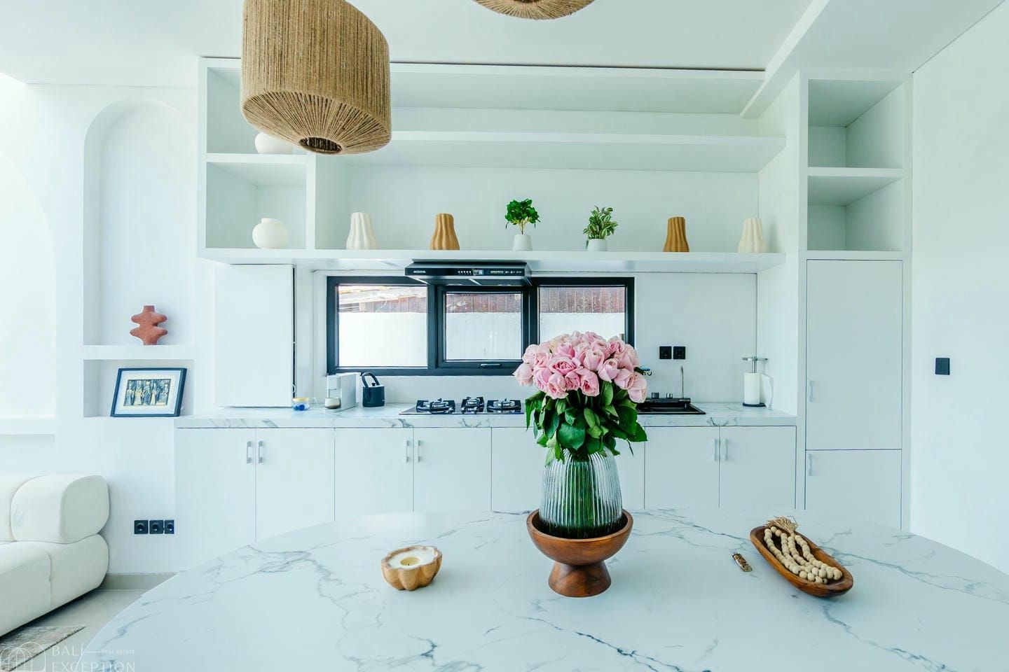 Cette villa magnifiquement conçue présente une esthétique tropicale moderne avec des lignes épurées, de hauts plafonds et une abondance de lumière naturelle, créant une atmosphère lumineuse et aérée. L’espace de vie ouvert relie harmonieusement le salon, la salle à manger et la cuisine entièrement équipée, avec de grandes baies vitrées qui ouvrent sur l’extérieur et donnent un accès direct à une piscine privée et un jardin — idéal pour se détendre ou recevoir. Aménagé avec des tons neutres doux et des finitions élégantes, l’espace dégage une sensation de calme et de sophistication.