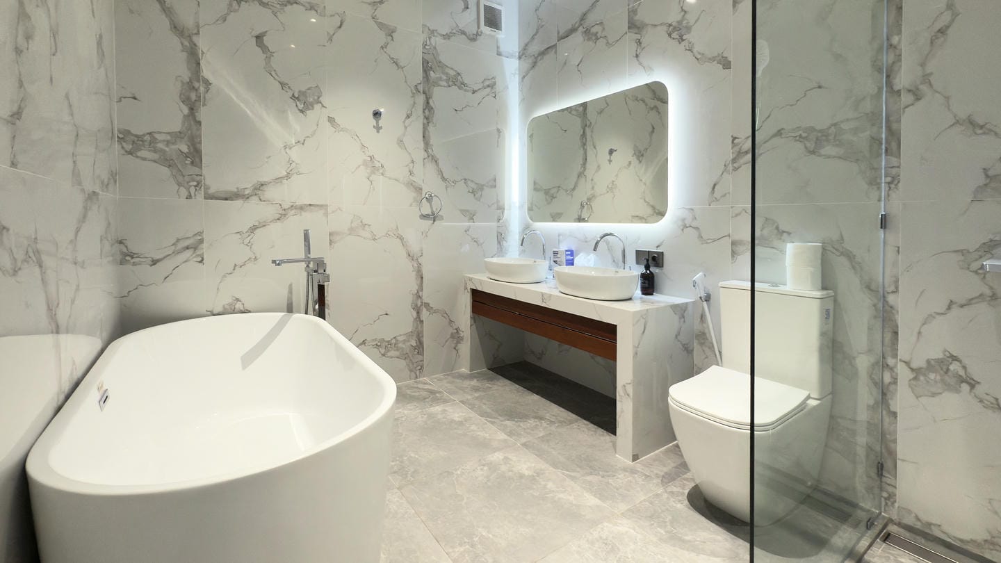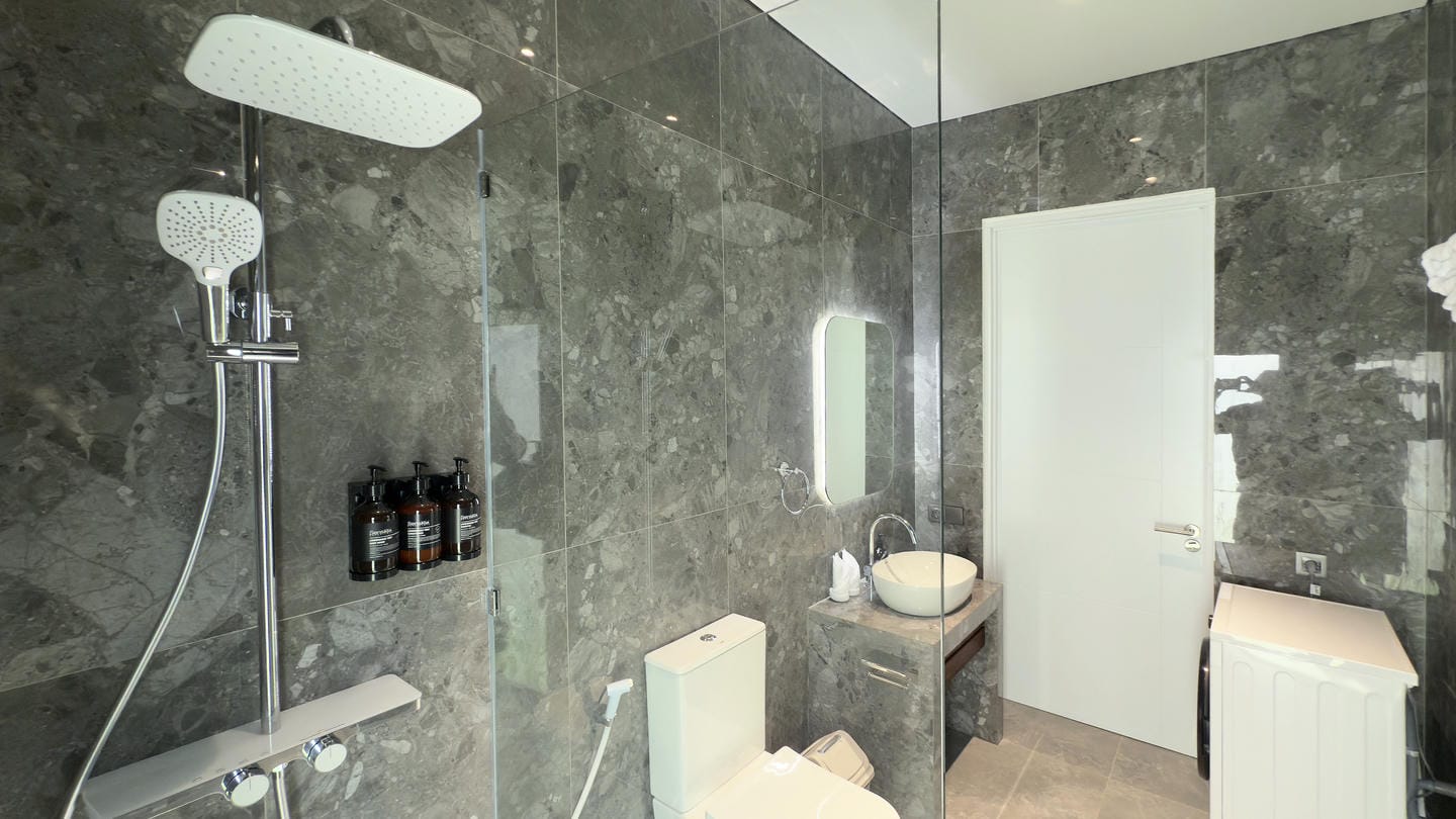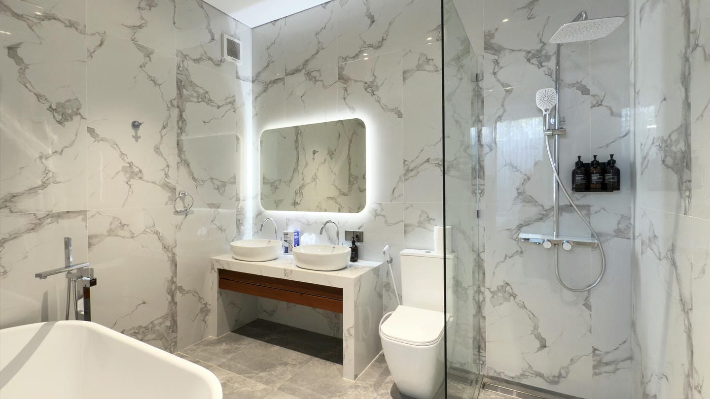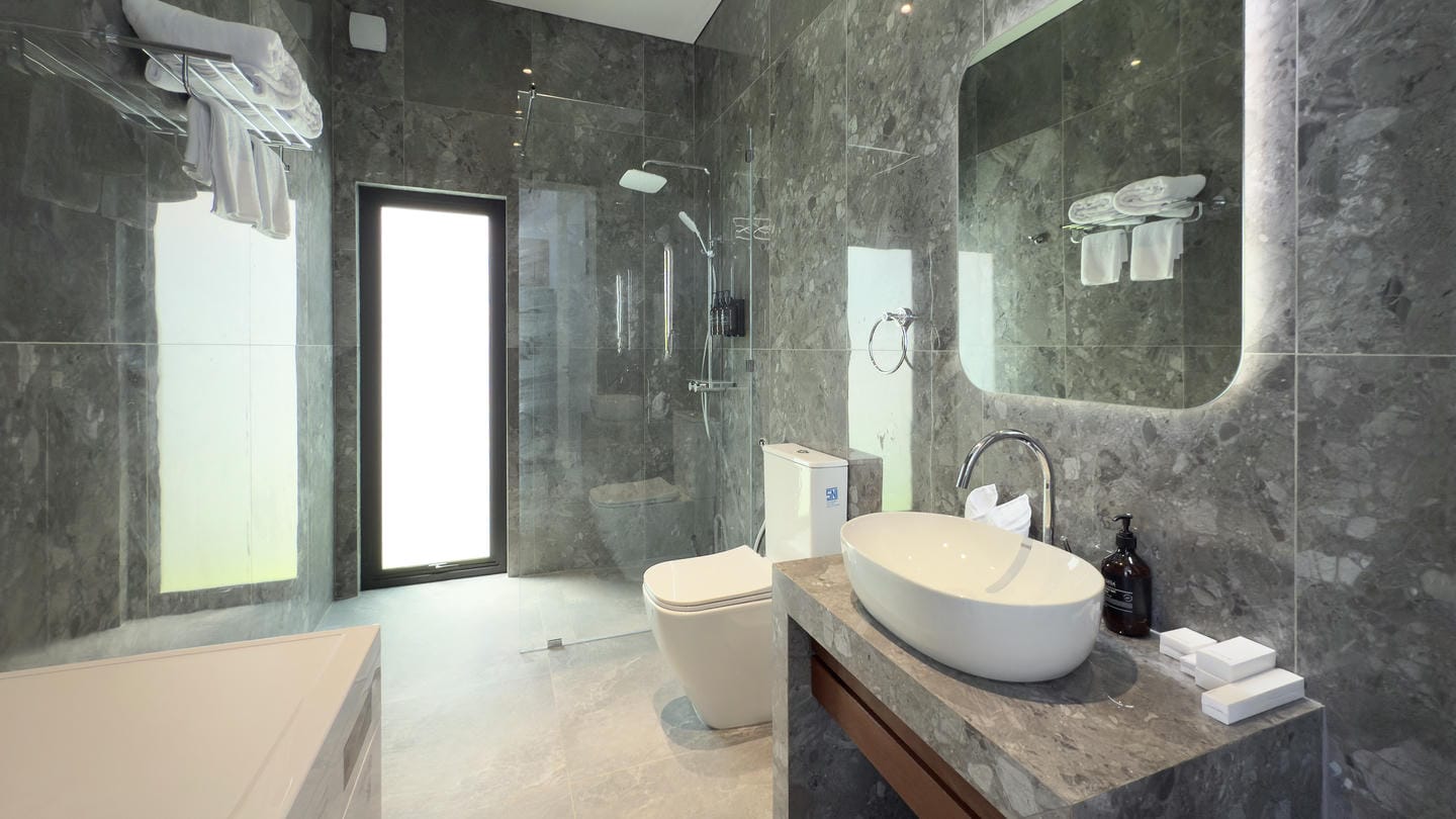 L’intérieur présente un style tropical moderne aux lignes épurées, avec de hauts plafonds et des baies vitrées du sol au plafond. Les tons naturels, les touches de bois chaleureux et les textures douces créent un espace de vie lumineux, aéré et élégant, à la fois chic et confortable.