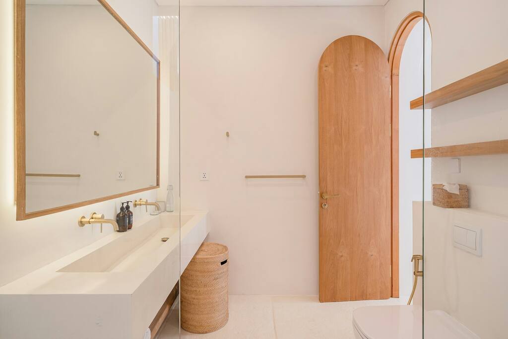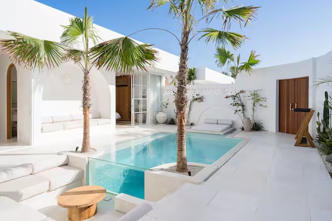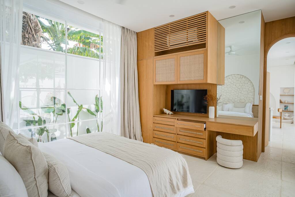 Cette villa présente un design tropical moderne qui fusionne harmonieusement les espaces intérieurs et extérieurs. De grandes portes vitrées coulissantes s’ouvrent directement sur la piscine, laissant entrer une abondante lumière naturelle et une agréable circulation d’air. Le plan ouvert relie avec fluidité le salon, la salle à manger et la cuisine. La villa dispose de trois chambres avec de larges fenêtres, chacune dotée de sa propre salle de bain attenante et d’un plafond au concept ouvert renforçant la sensation d’espace et de confort.