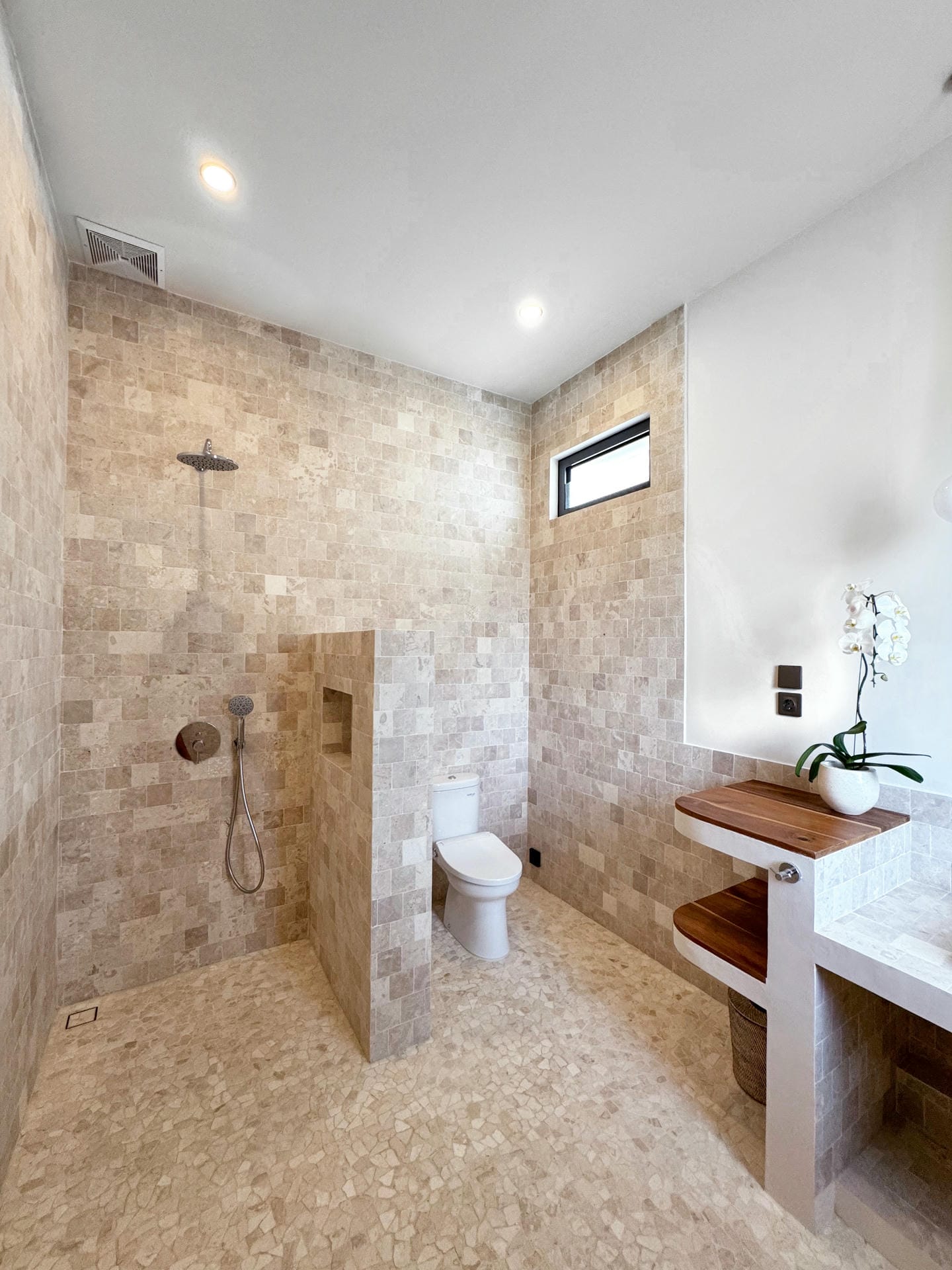À l’extérieur, la villa dispose d’une piscine privée de 22 m², entourée d’une terrasse élégante, idéale pour profiter du soleil et du climat tropical de Bali.