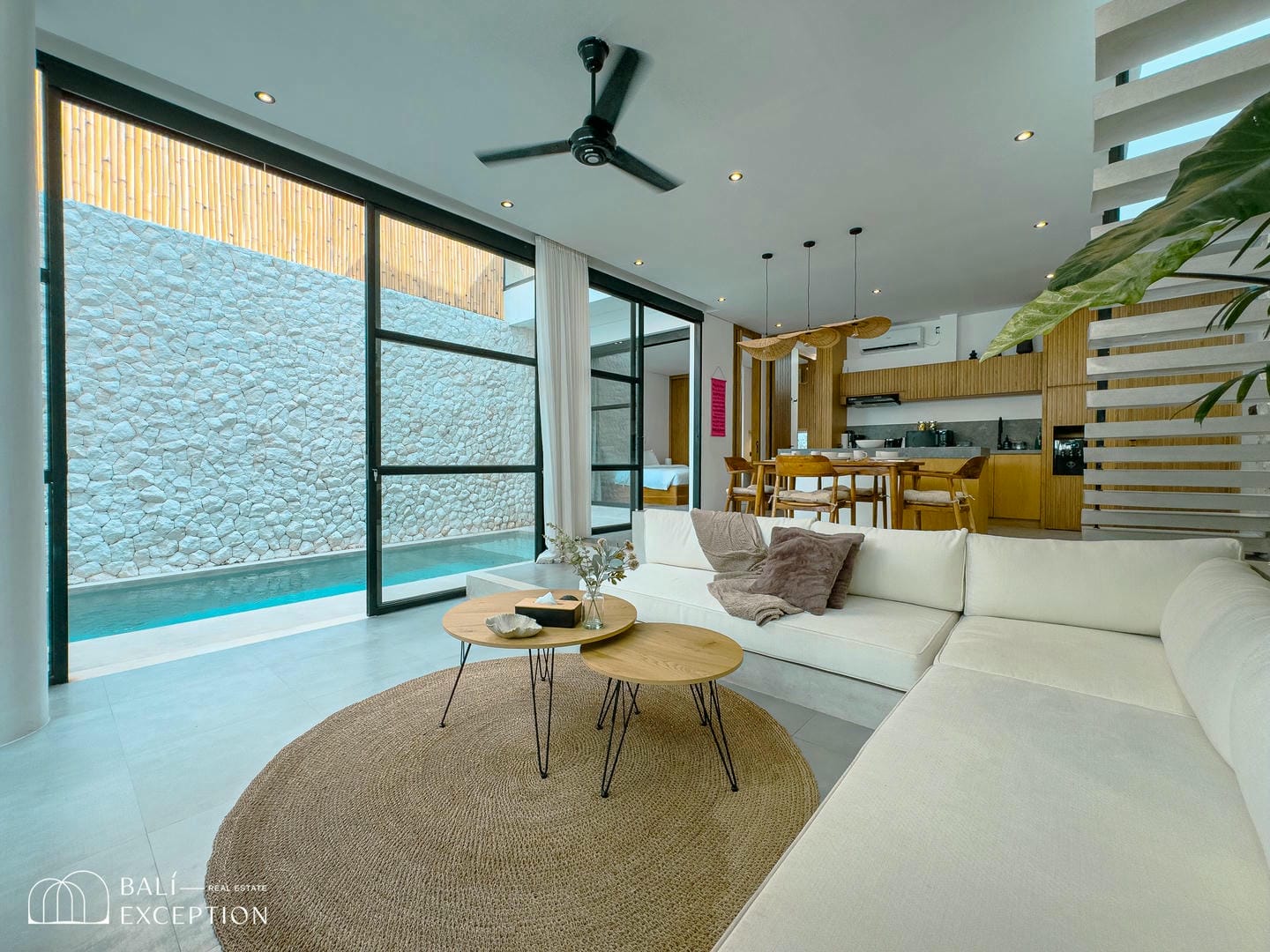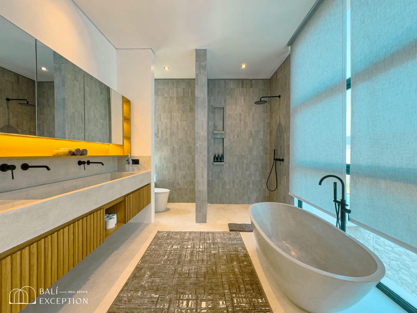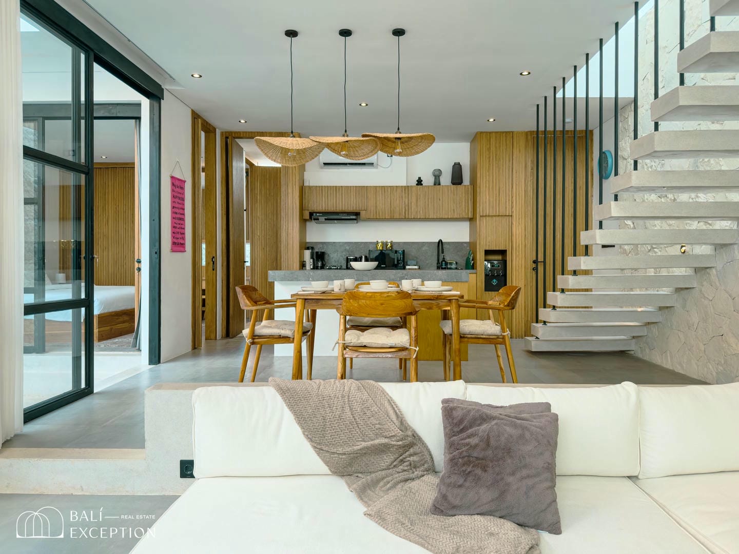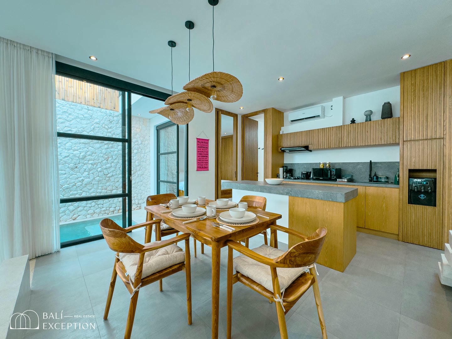 Cette villa entièrement meublée dispose d’un espace de vie ouvert, soigneusement conçu avec une architecture moderne, des finitions haut de gamme et des matériaux premium dans toute la propriété. Elle comprend une cuisine entièrement équipée et de grandes baies vitrées du sol au plafond qui s’ouvrent harmonieusement sur l’extérieur, créant une atmosphère lumineuse et aérée typiquement tropicale. La villa propose un agencement spacieux de 2 chambres et 2 salles de bains, chaque chambre disposant de sa propre salle de bains, tandis que la chambre principale bénéficie également d’un balcon privé et d’un espace lounge confortable pour plus de confort.