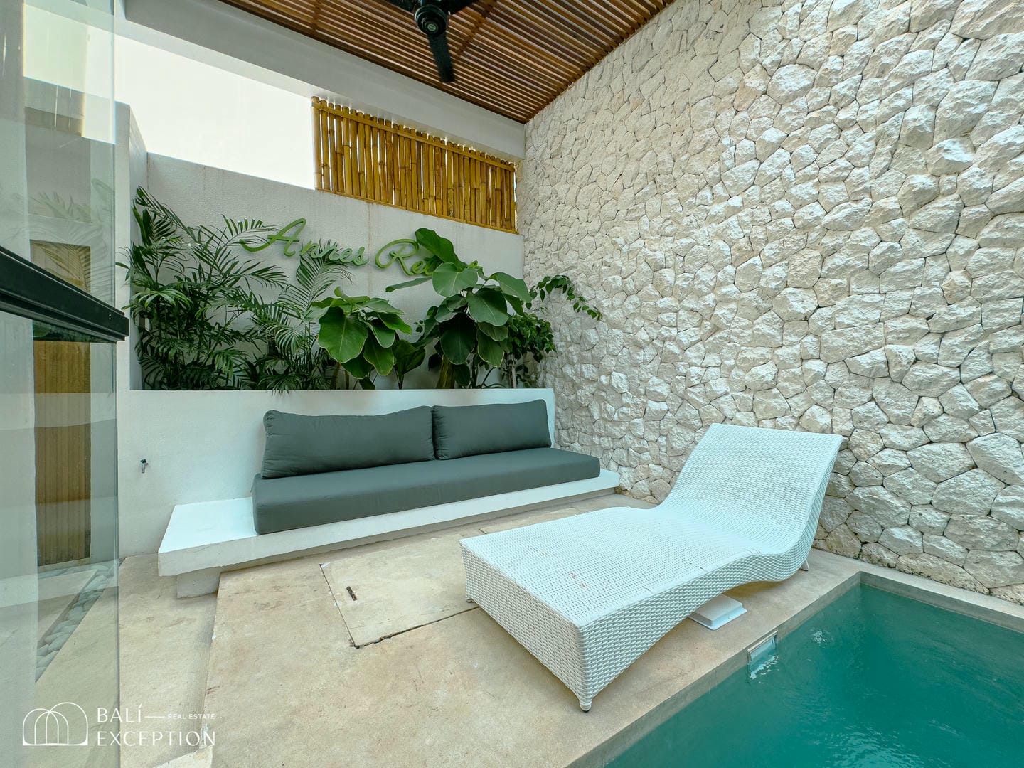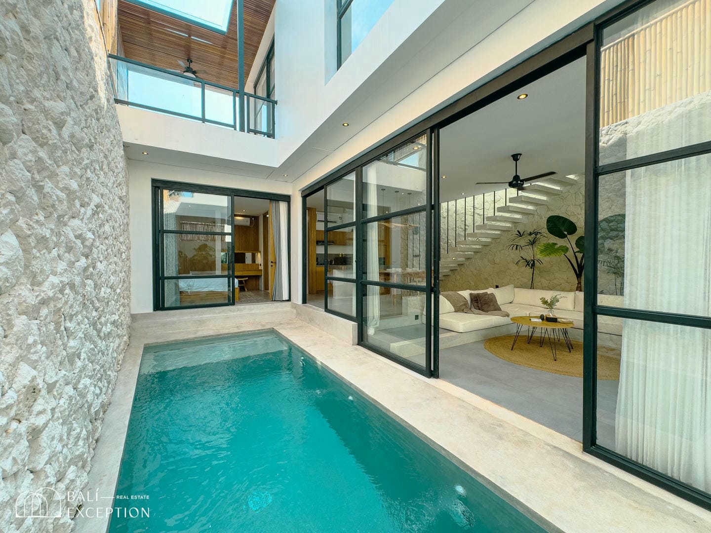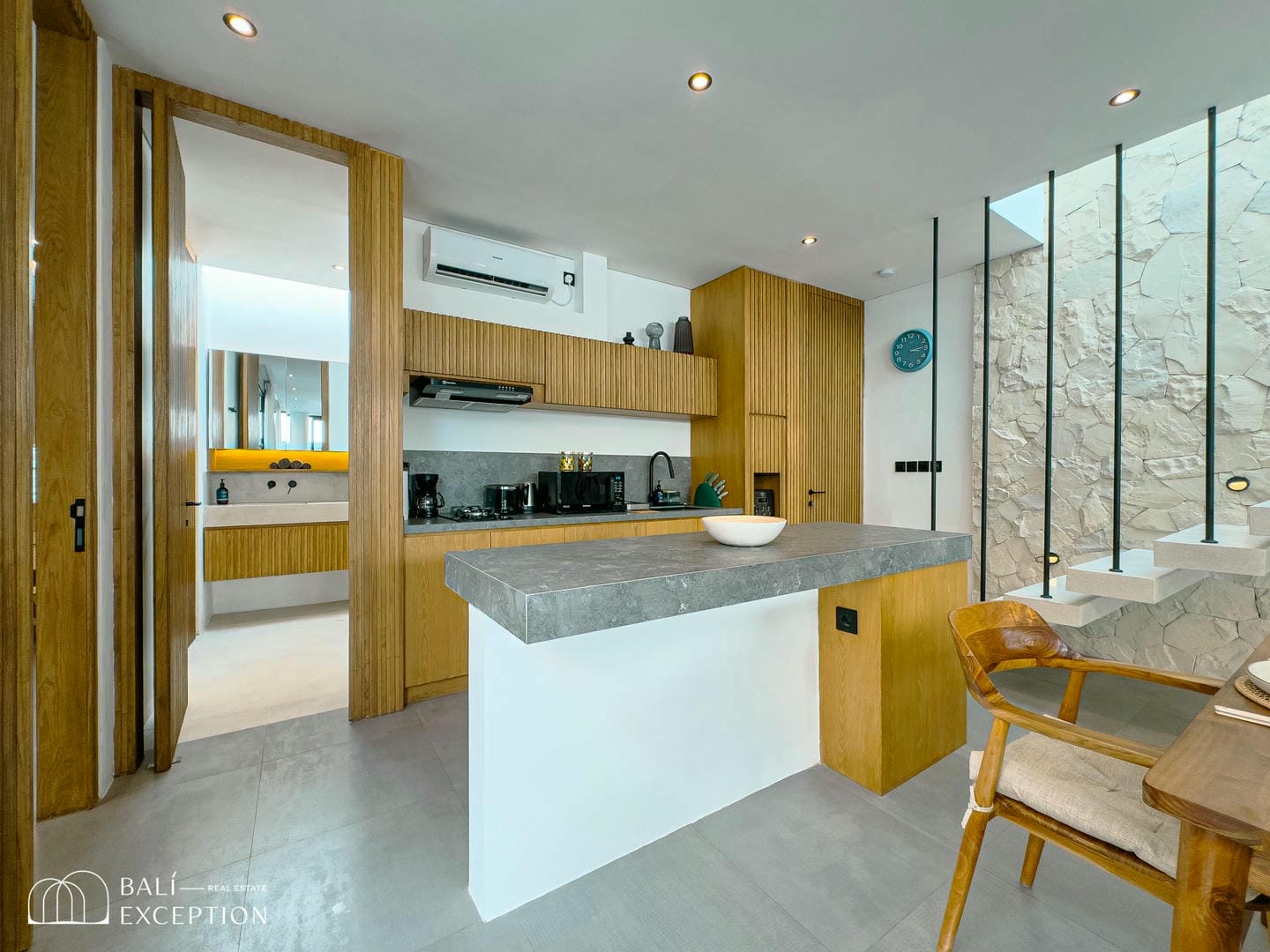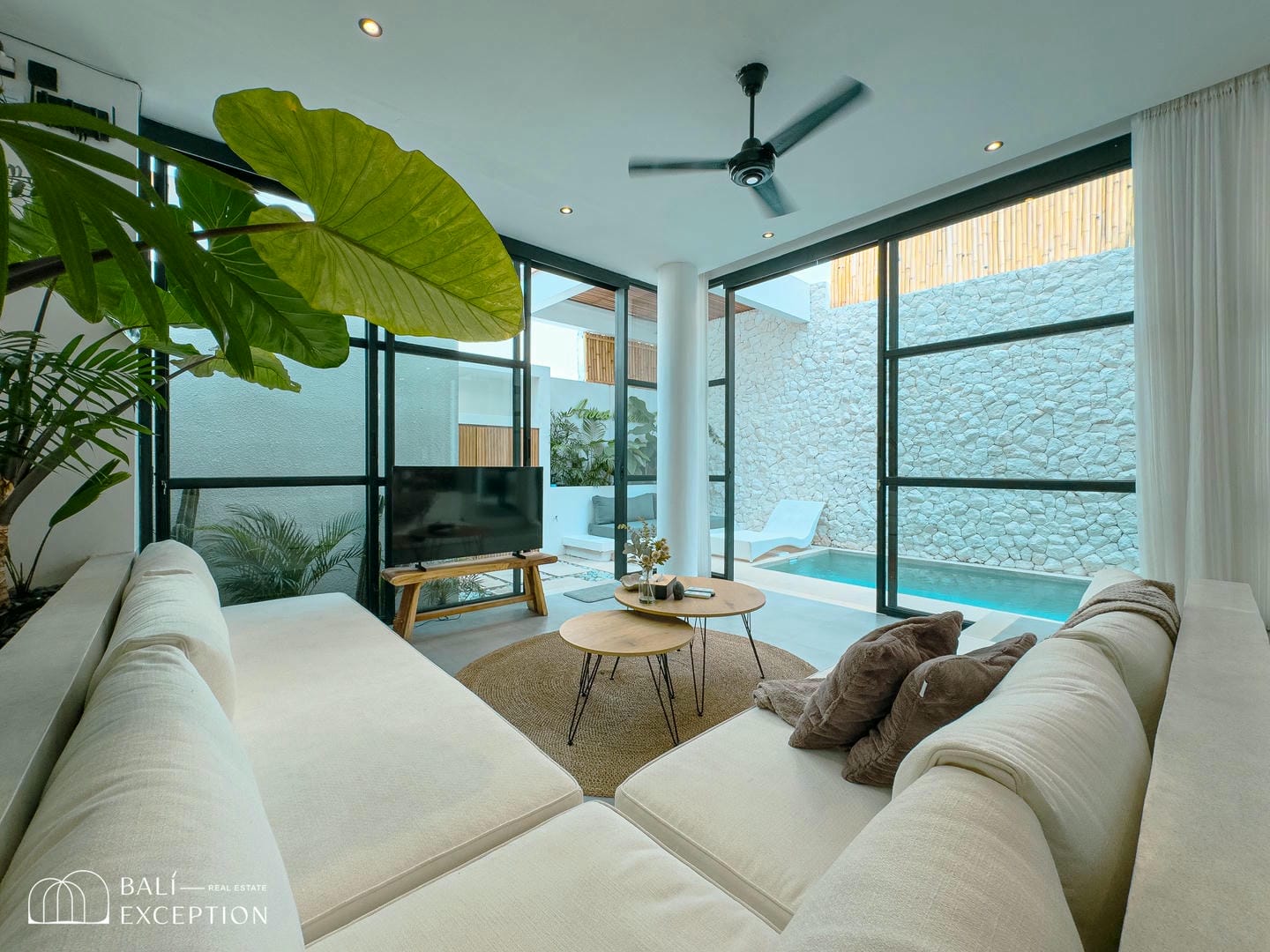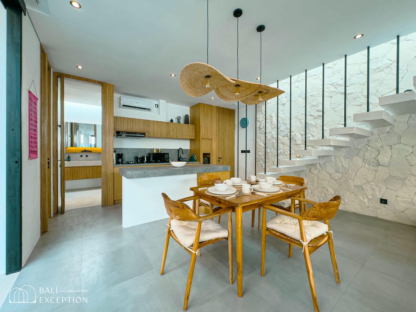 Cette villa entièrement meublée dispose d’un espace de vie ouvert, soigneusement conçu avec une architecture moderne, des finitions haut de gamme et des matériaux premium dans toute la propriété. Elle comprend une cuisine entièrement équipée et de grandes baies vitrées du sol au plafond qui s’ouvrent harmonieusement sur l’extérieur, créant une atmosphère lumineuse et aérée typiquement tropicale. La villa propose un agencement spacieux de 2 chambres et 2 salles de bains, chaque chambre disposant de sa propre salle de bains, tandis que la chambre principale bénéficie également d’un balcon privé et d’un espace lounge confortable pour plus de confort.