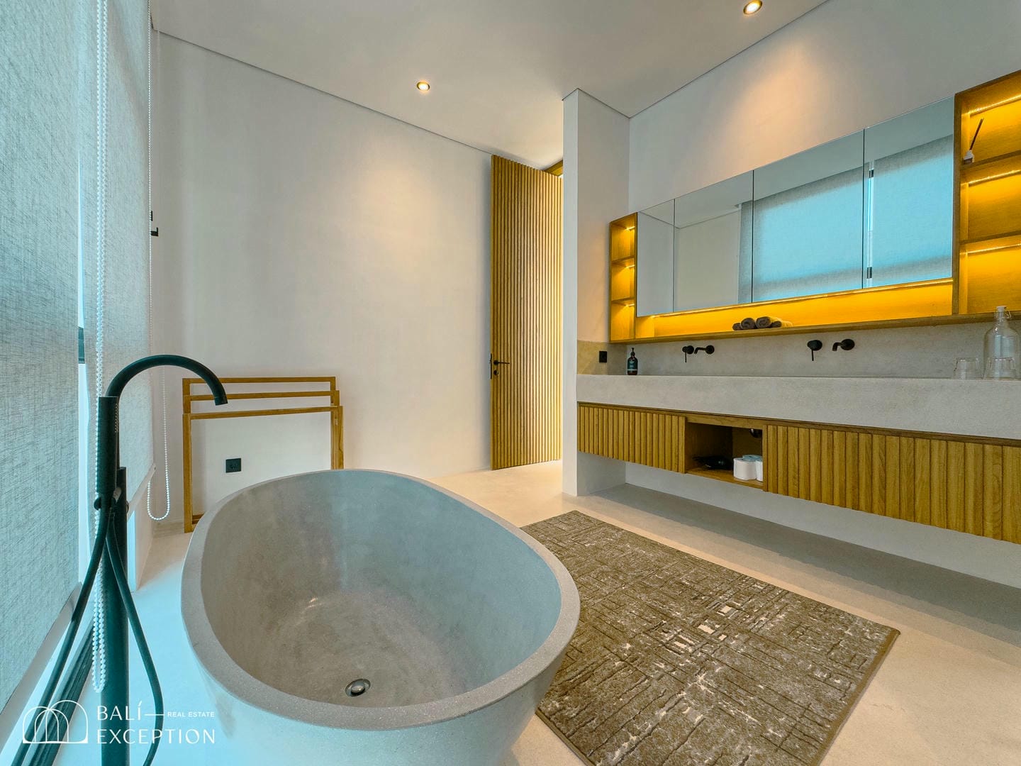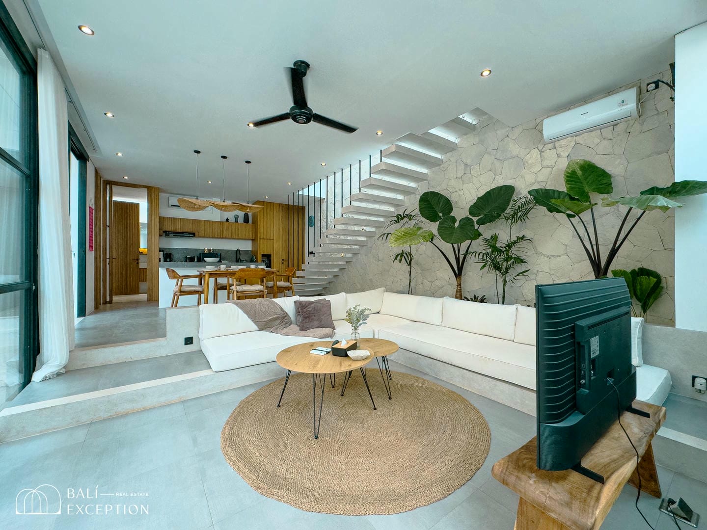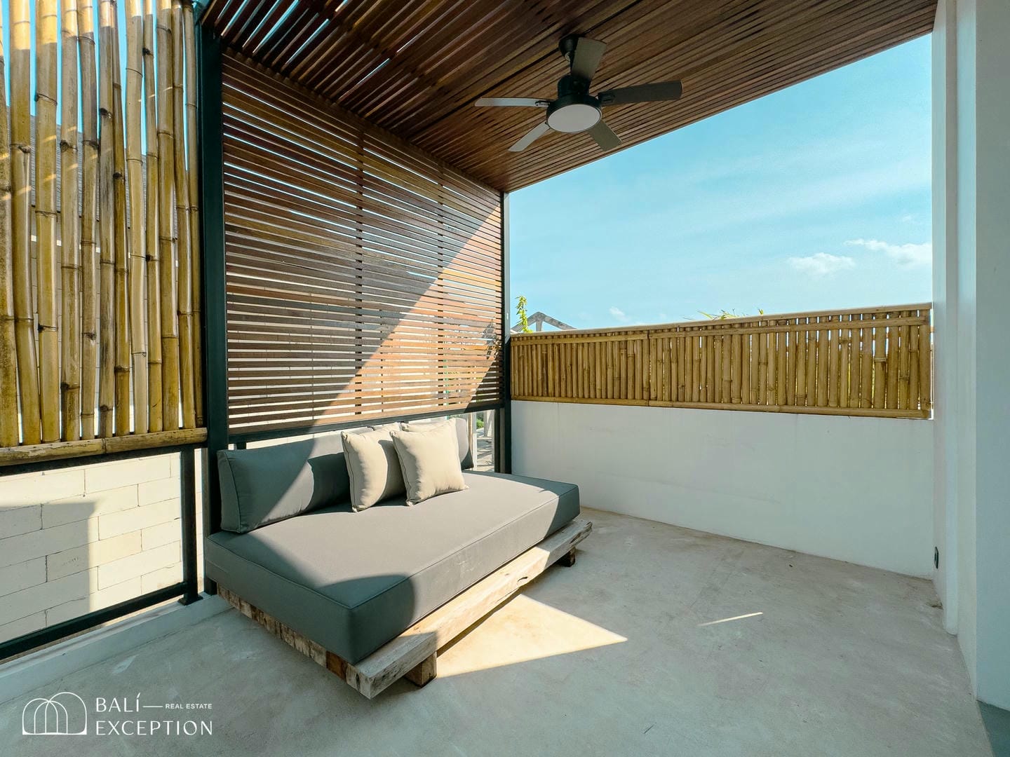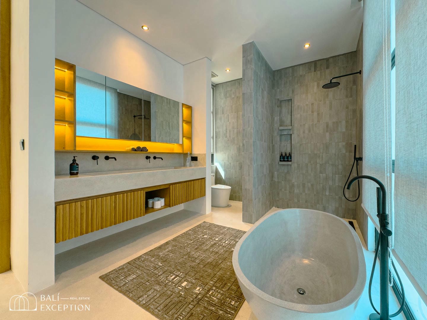 Cette villa entièrement meublée dispose d’un espace de vie ouvert, soigneusement conçu avec une architecture moderne, des finitions haut de gamme et des matériaux premium dans toute la propriété. Elle comprend une cuisine entièrement équipée et de grandes baies vitrées du sol au plafond qui s’ouvrent harmonieusement sur l’extérieur, créant une atmosphère lumineuse et aérée typiquement tropicale. La villa propose un agencement spacieux de 2 chambres et 2 salles de bains, chaque chambre disposant de sa propre salle de bains, tandis que la chambre principale bénéficie également d’un balcon privé et d’un espace lounge confortable pour plus de confort.