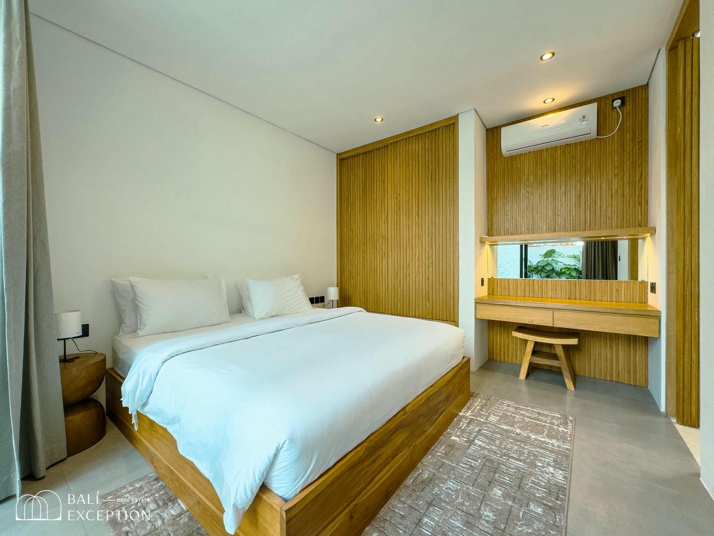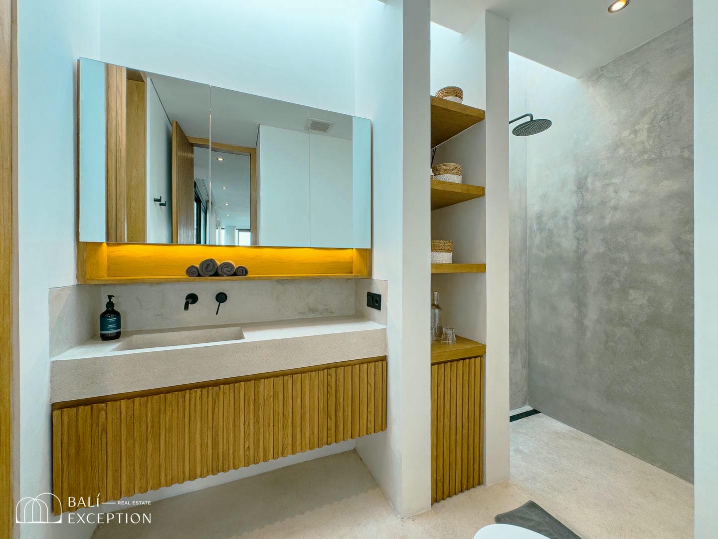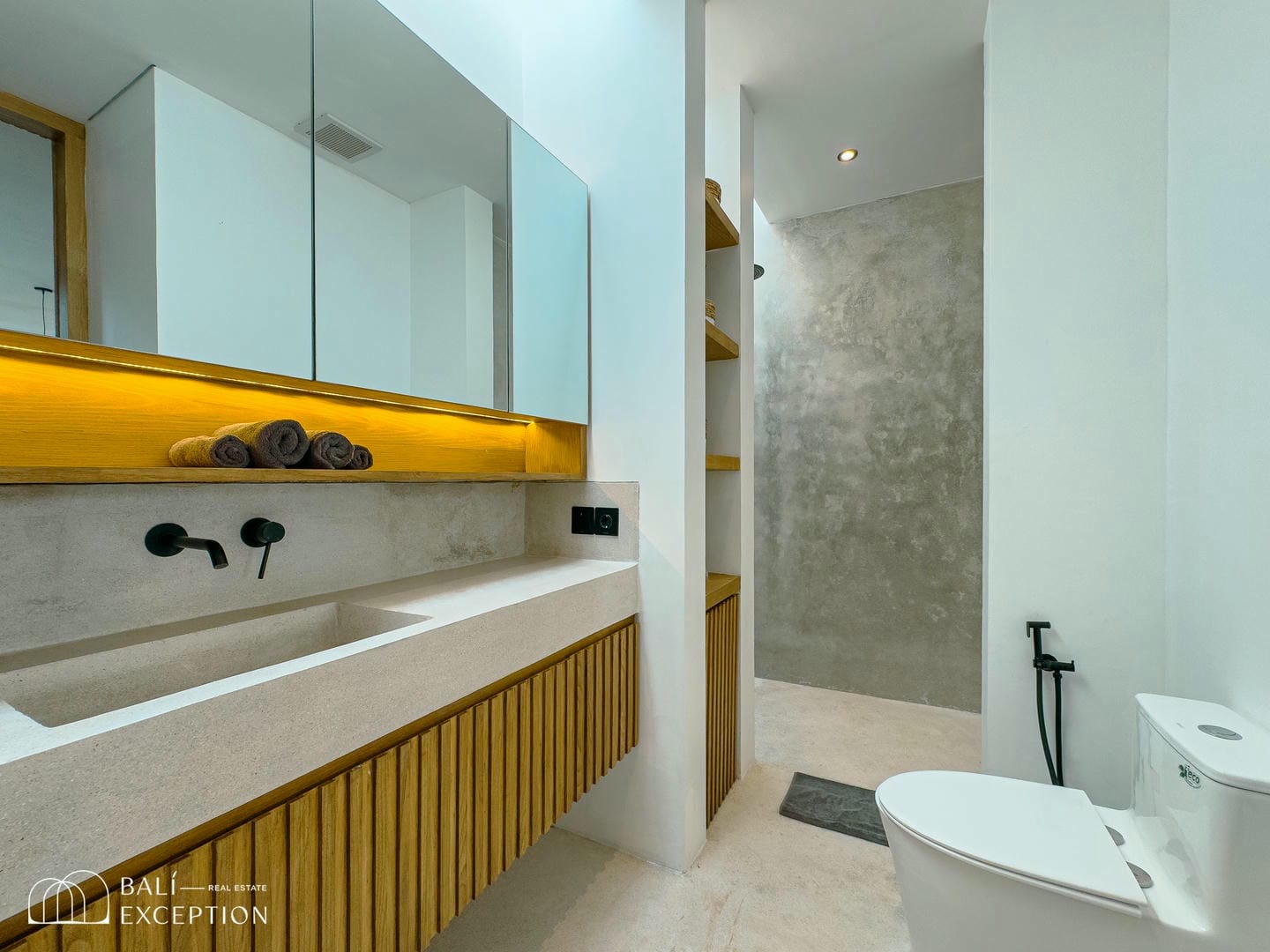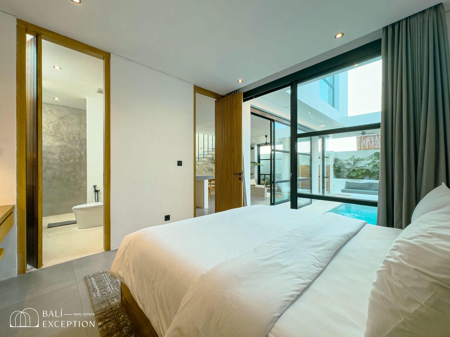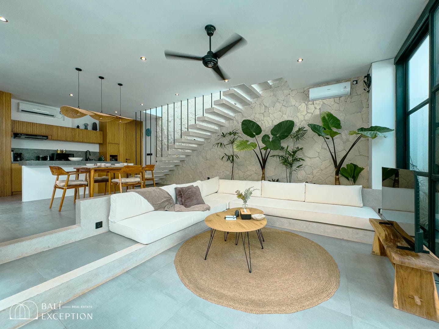 Cette villa entièrement meublée dispose d’un espace de vie ouvert, soigneusement conçu avec une architecture moderne, des finitions haut de gamme et des matériaux premium dans toute la propriété. Elle comprend une cuisine entièrement équipée et de grandes baies vitrées du sol au plafond qui s’ouvrent harmonieusement sur l’extérieur, créant une atmosphère lumineuse et aérée typiquement tropicale. La villa propose un agencement spacieux de 2 chambres et 2 salles de bains, chaque chambre disposant de sa propre salle de bains, tandis que la chambre principale bénéficie également d’un balcon privé et d’un espace lounge confortable pour plus de confort.