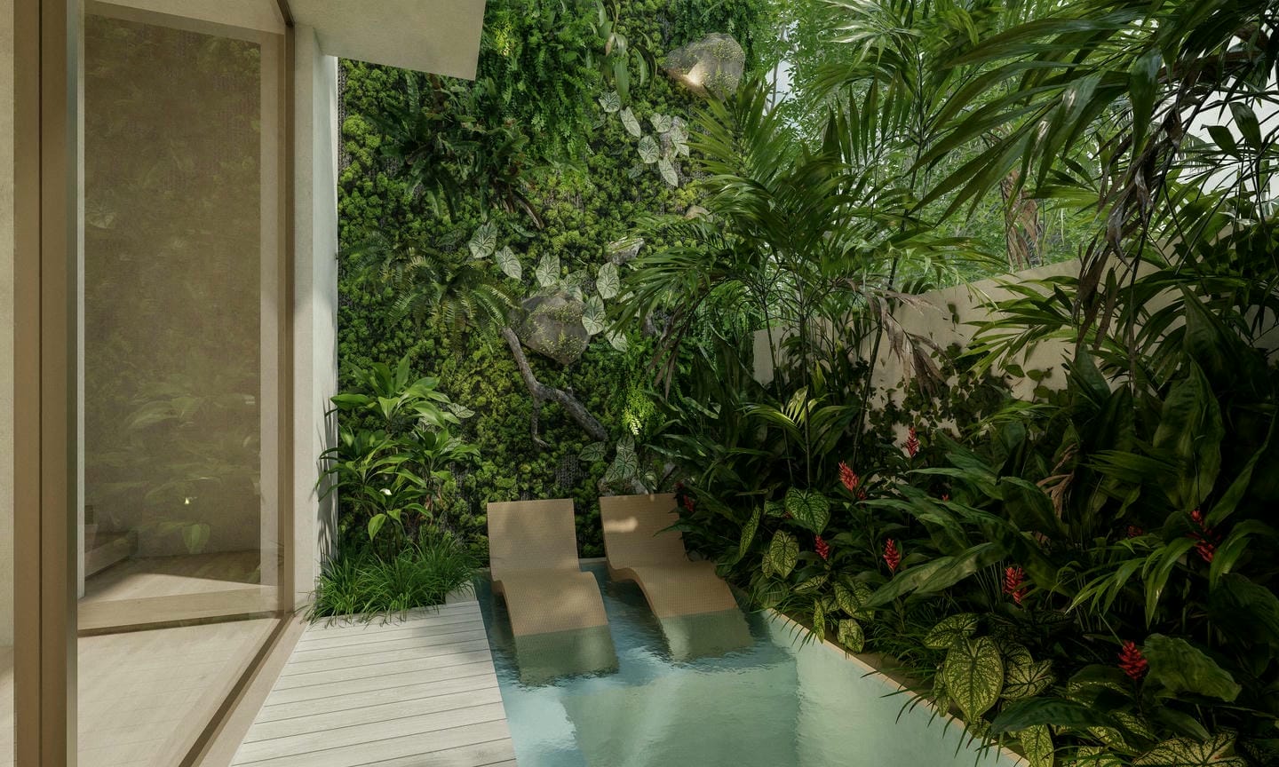 Conçue par l’architecte Felipe Gonzales, reconnu pour son expérience dans l’immobilier de luxe, cette villa entièrement meublée présente un style tropical moderne et raffiné. Elle dispose d’une cuisine ouverte qui se prolonge harmonieusement dans un vaste espace de vie offrant une vue imprenable sur la piscine extérieure. Les deux chambres sont dotées de grandes fenêtres laissant entrer une abondante lumière naturelle, chacune avec sa propre salle de bains privée, créant une expérience de vie lumineuse, confortable et luxueuse.