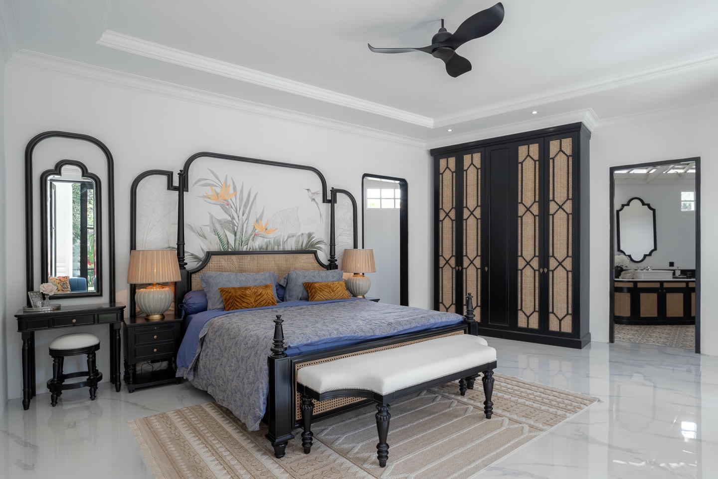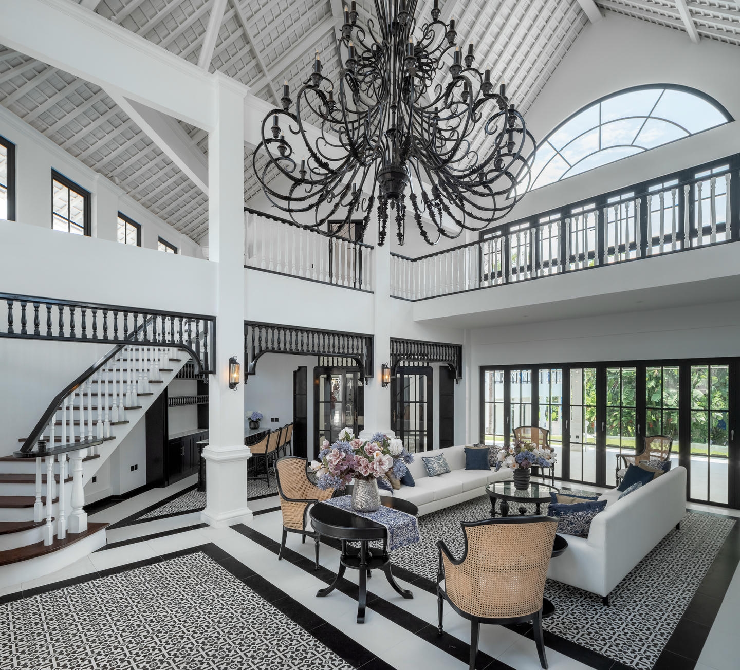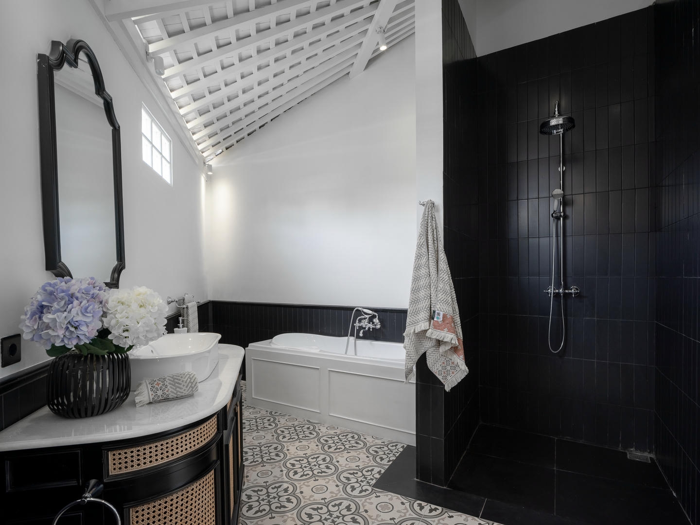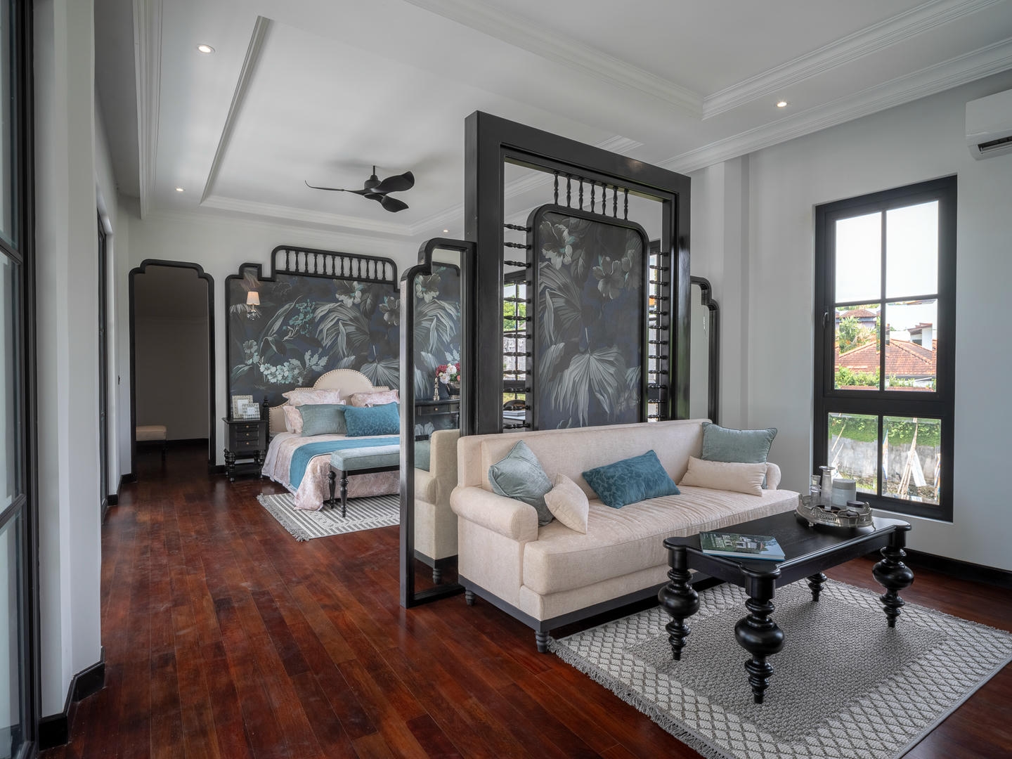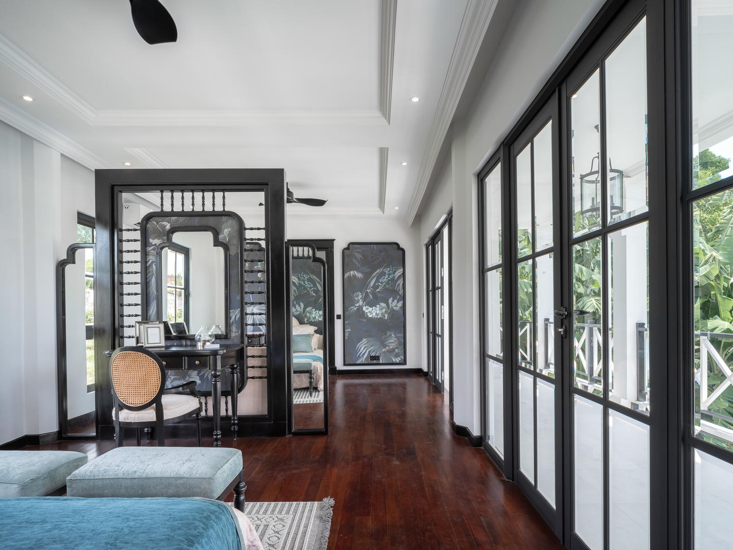 Dès l’entrée, un hall majestueux de 10 mètres de hauteur vous accueille dans une atmosphère d’élégance saisissante. Son design colonial allie avec harmonie charme classique et ambiance tropicale. La villa dispose de 7 chambres somptueuses, chacune avec sa salle de bain privative luxueuse. La suite parentale se distingue par une baignoire somptueuse. Deux salles de bains supplémentaires ainsi que des quartiers dédiés au personnel garantissent un confort absolu et une fonctionnalité optimale.