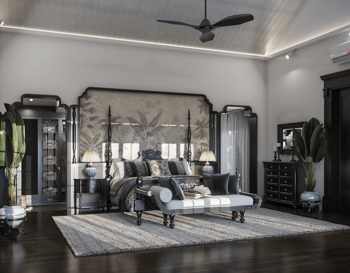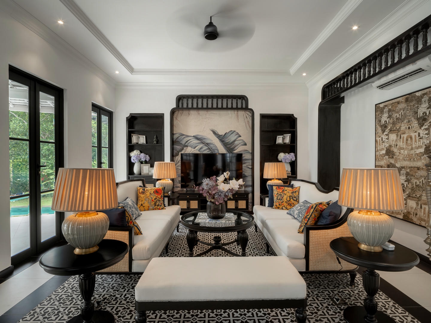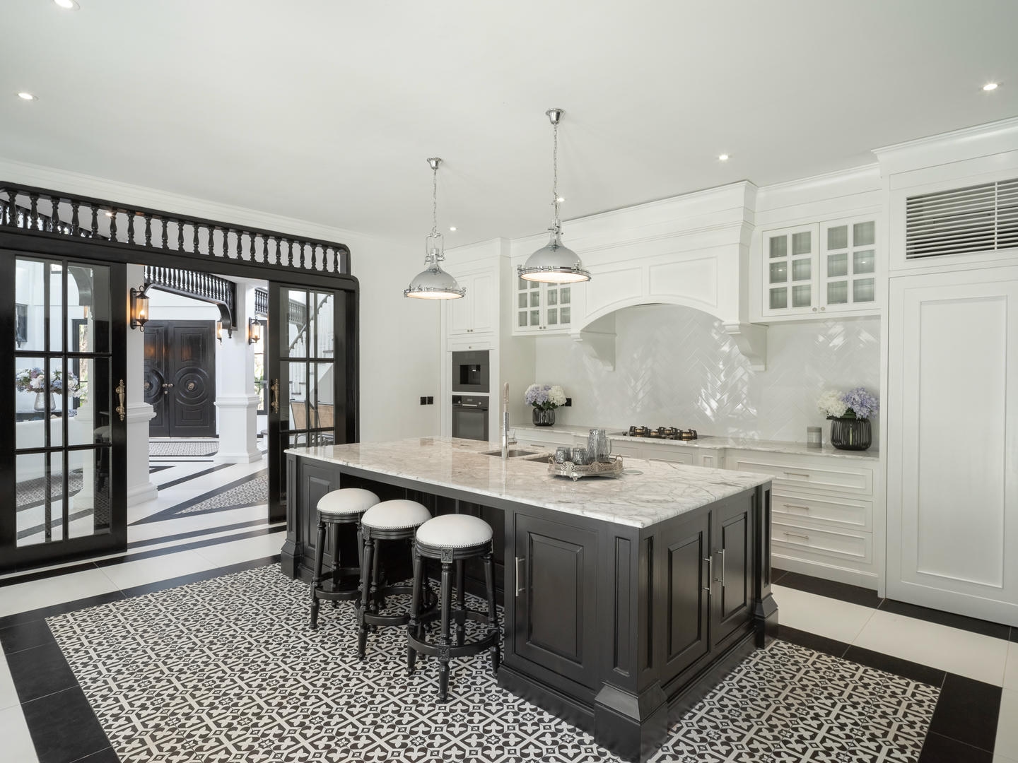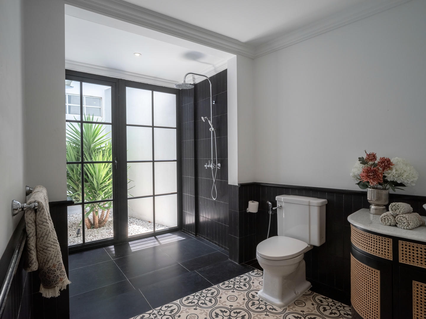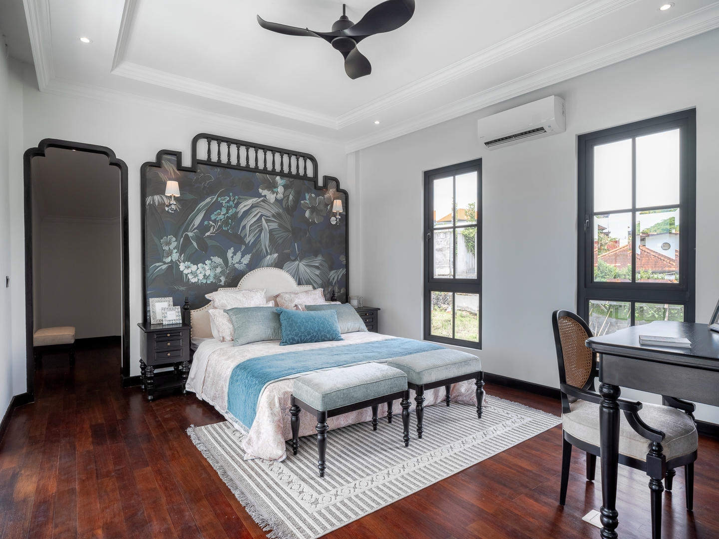 Dès l’entrée, un hall majestueux de 10 mètres de hauteur vous accueille dans une atmosphère d’élégance saisissante. Son design colonial allie avec harmonie charme classique et ambiance tropicale. La villa dispose de 7 chambres somptueuses, chacune avec sa salle de bain privative luxueuse. La suite parentale se distingue par une baignoire somptueuse. Deux salles de bains supplémentaires ainsi que des quartiers dédiés au personnel garantissent un confort absolu et une fonctionnalité optimale.