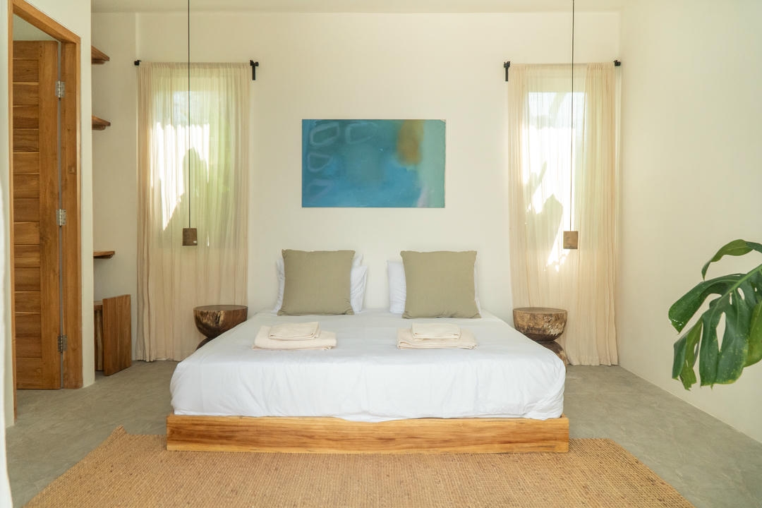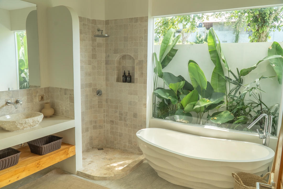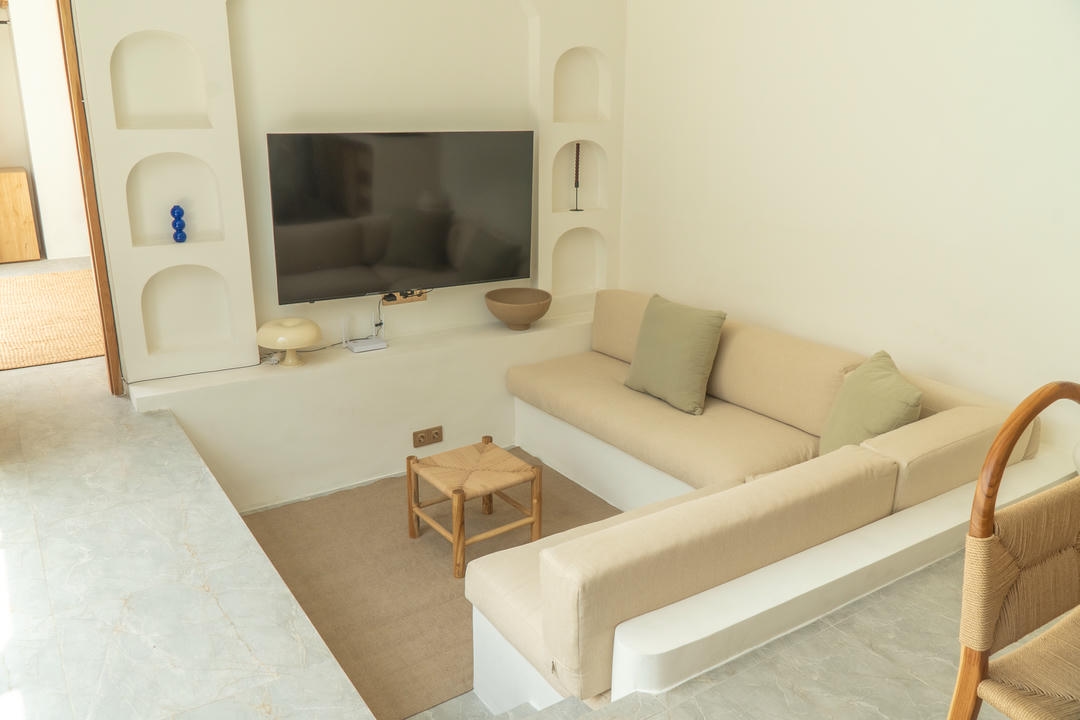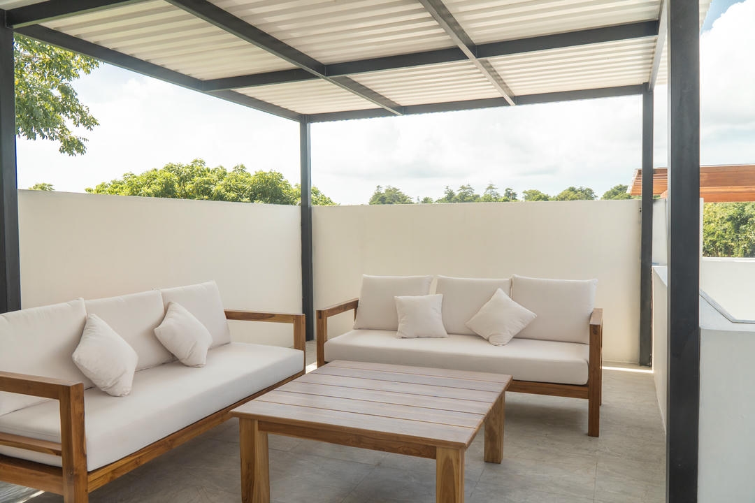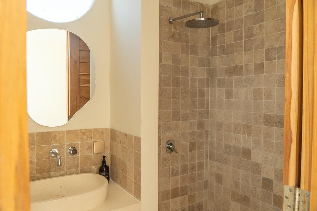 À l’extérieur, une piscine privée avec transats invite à la détente après une journée à la plage, tandis que le rooftop aménagé propose un espace idéal pour se relaxer, recevoir des invités ou admirer les magnifiques couchers de soleil de Bali en toute intimité.